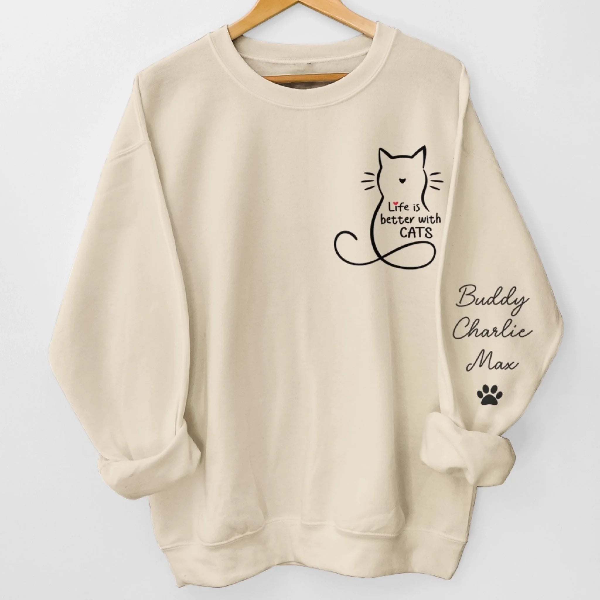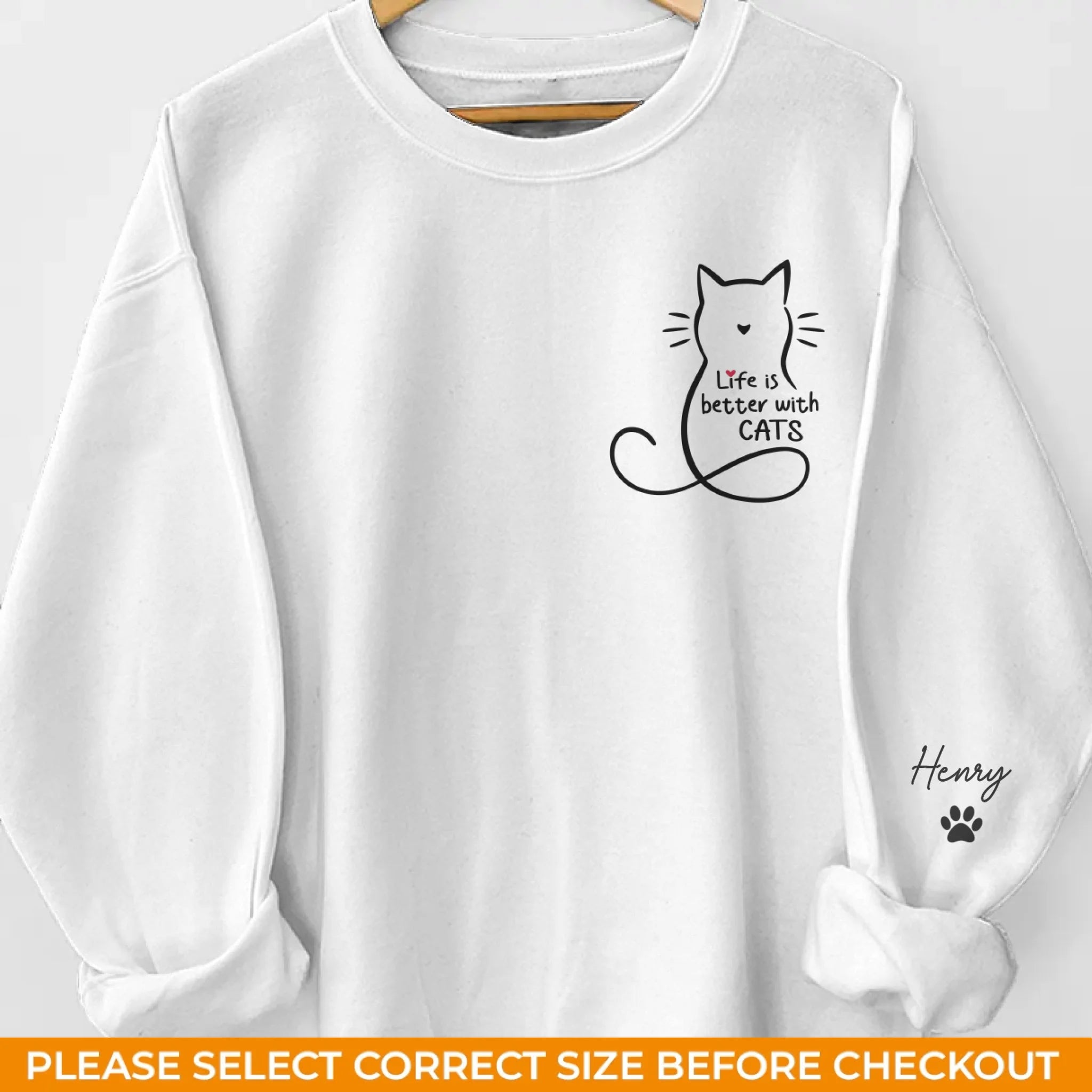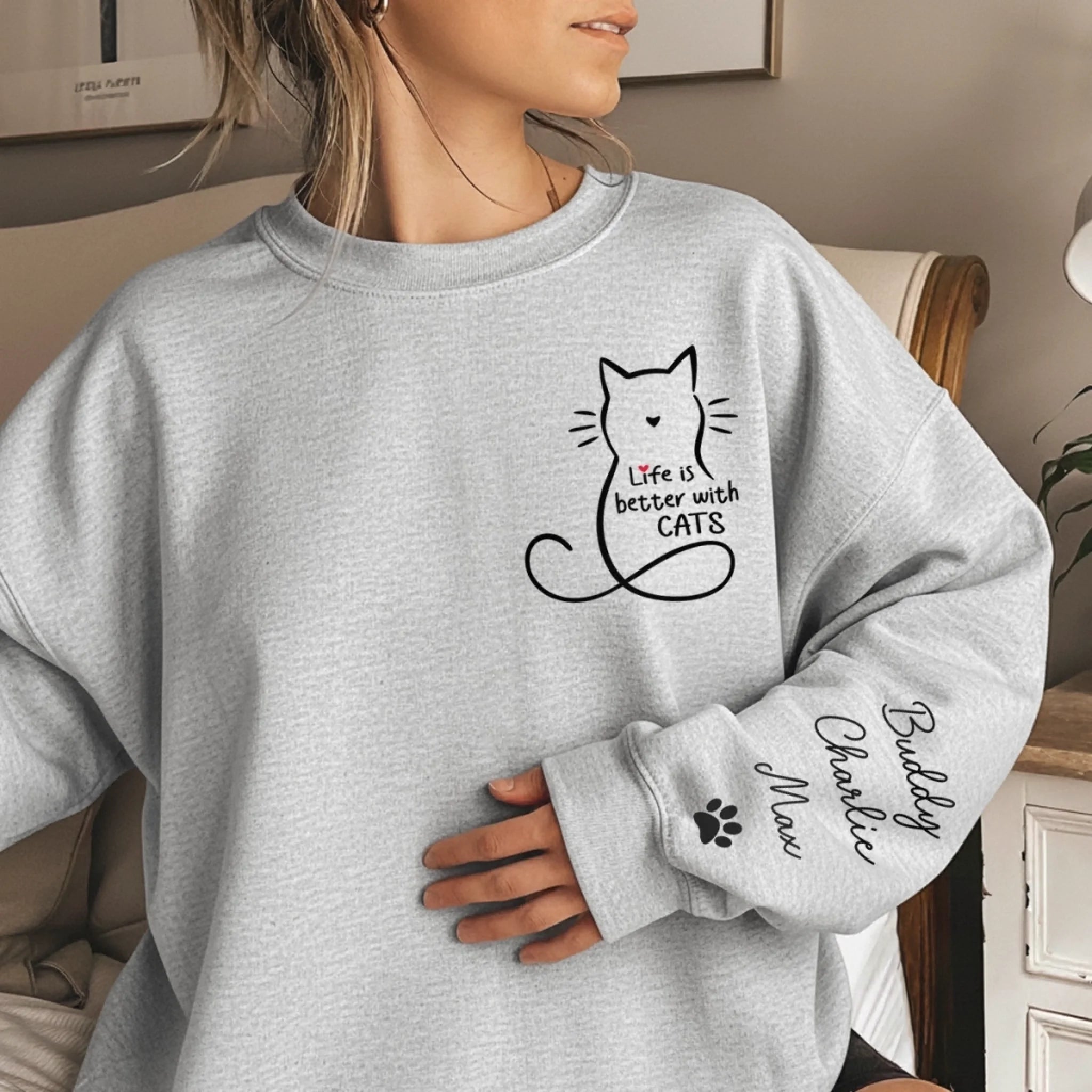Custom Unisex Sweatshirt, Hoodie With Design On Sleeve - Personalized Christmas Birthday Gifts For Cat Lovers, Cat Mom And Dad - Home Smells Like Cat Fur