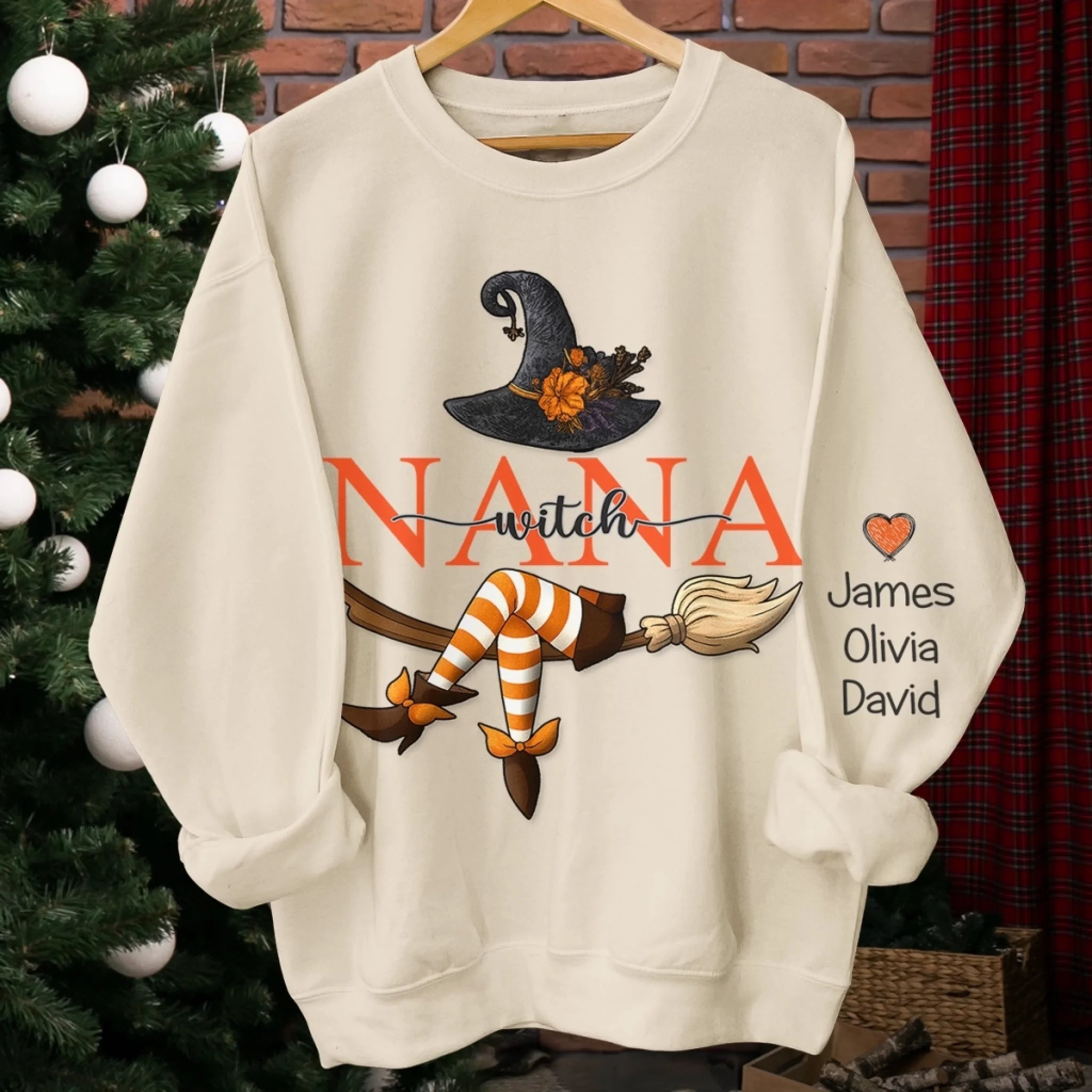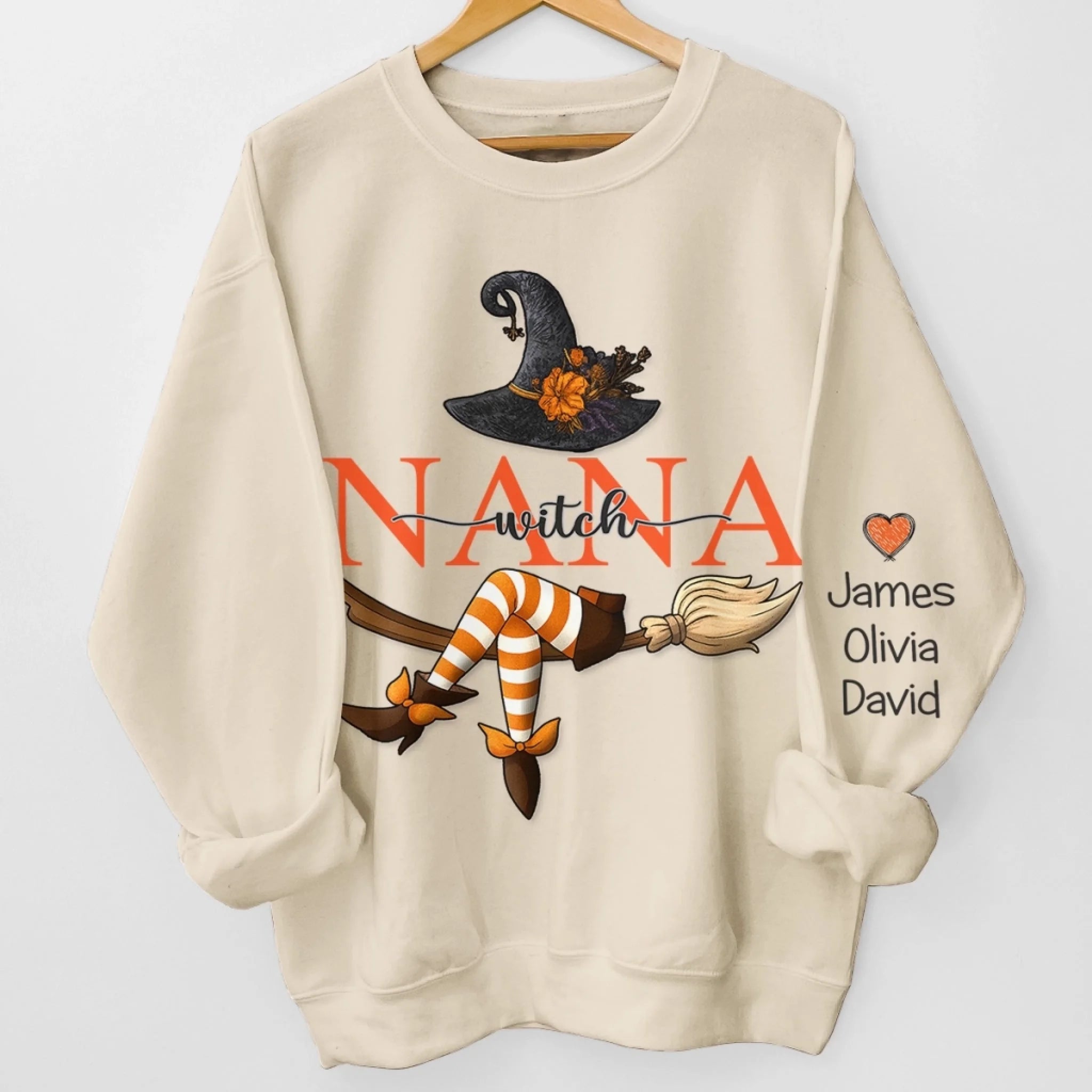Custom Unisex Sweatshirt, Hoodie With Design On Sleeve - Personalized Halloween Birthday Gifts For Mom, Grandma - Bewitching Fun With Witchy Nana