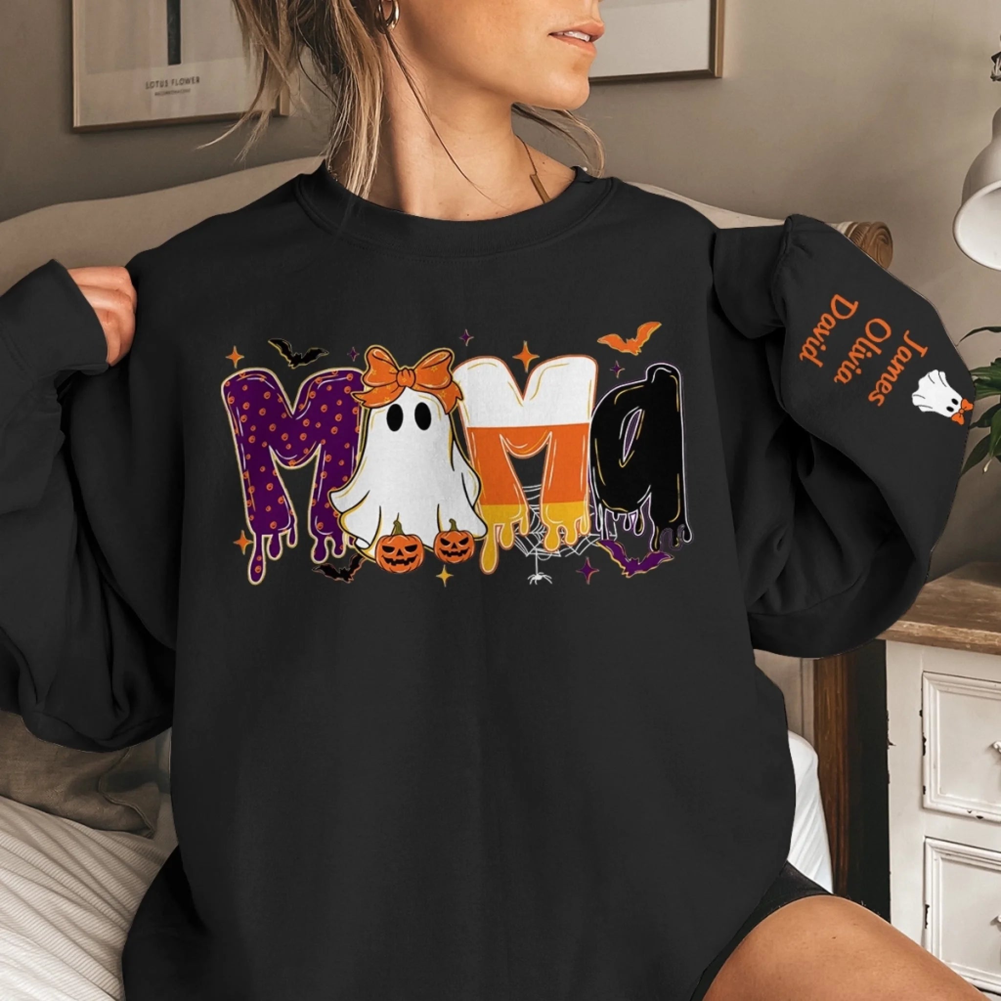 Custom Unisex Sweatshirt, Hoodie With Design On Sleeve - Personalized Halloween Birthday Gifts For Mom, Grandma - Spooky Nights With Family Bonds
