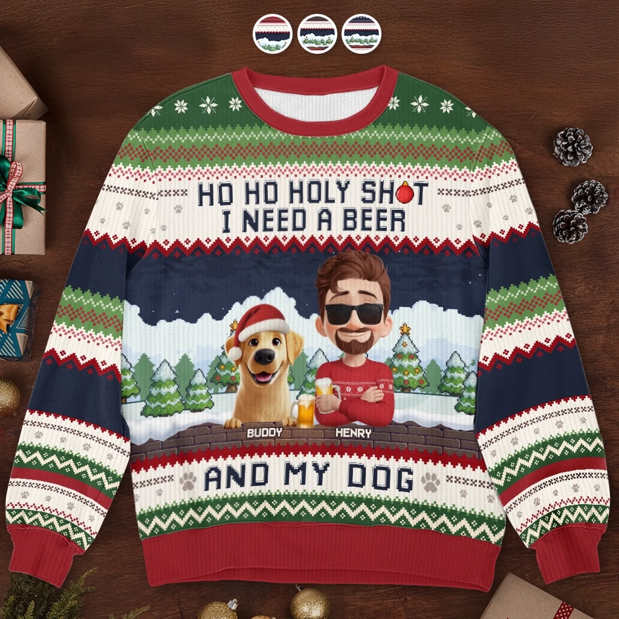 Custom Unisex Ugly Sweatshirt - Personalized Christmas Birthday Gifts For Dog Lovers, Dog Dad And Mom - Ho Ho Hold My Beer
