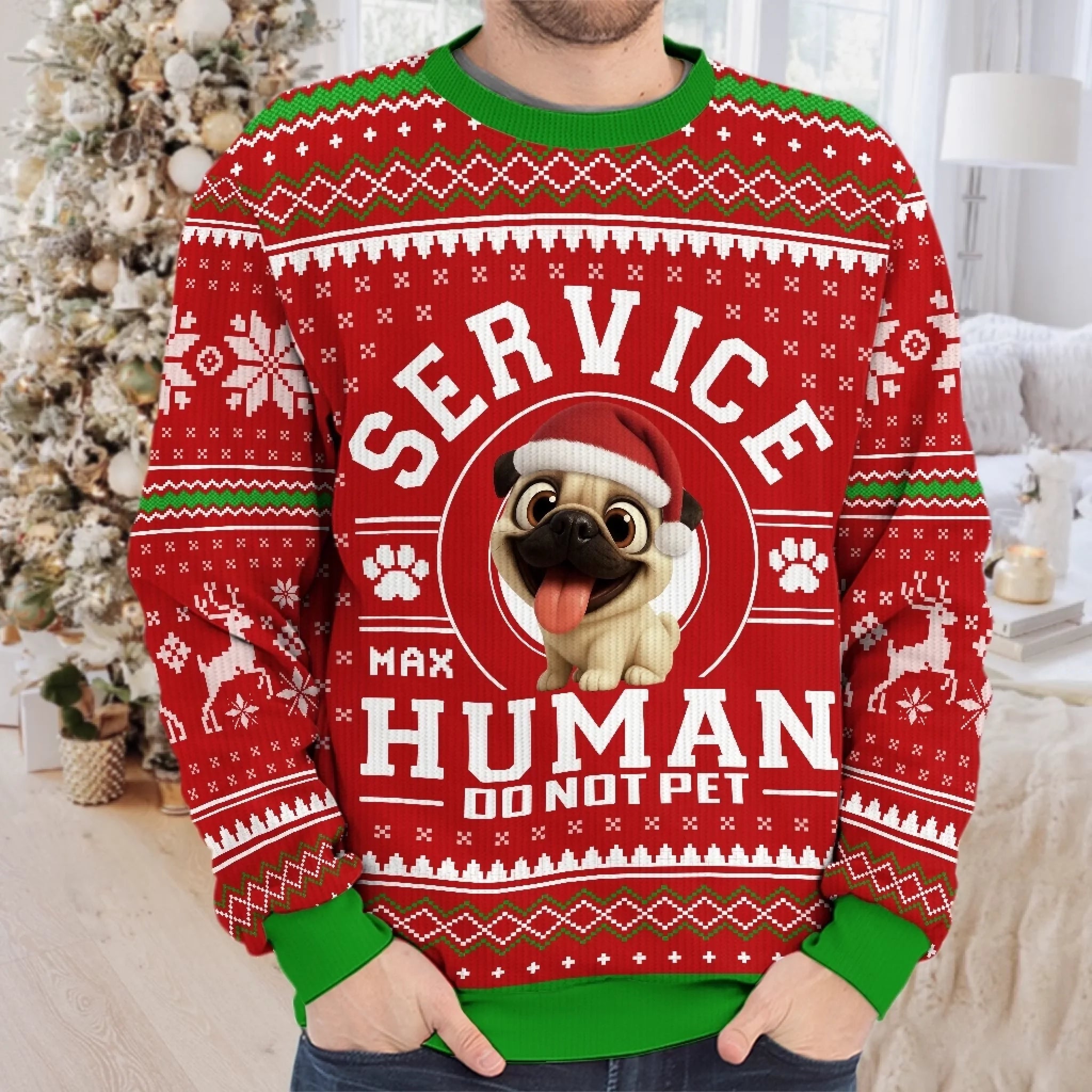 Custom Unisex Ugly Sweatshirt - Personalized Christmas Birthday Gifts For Dog Lovers, Dog Dad And Mom - Service Human On Duty