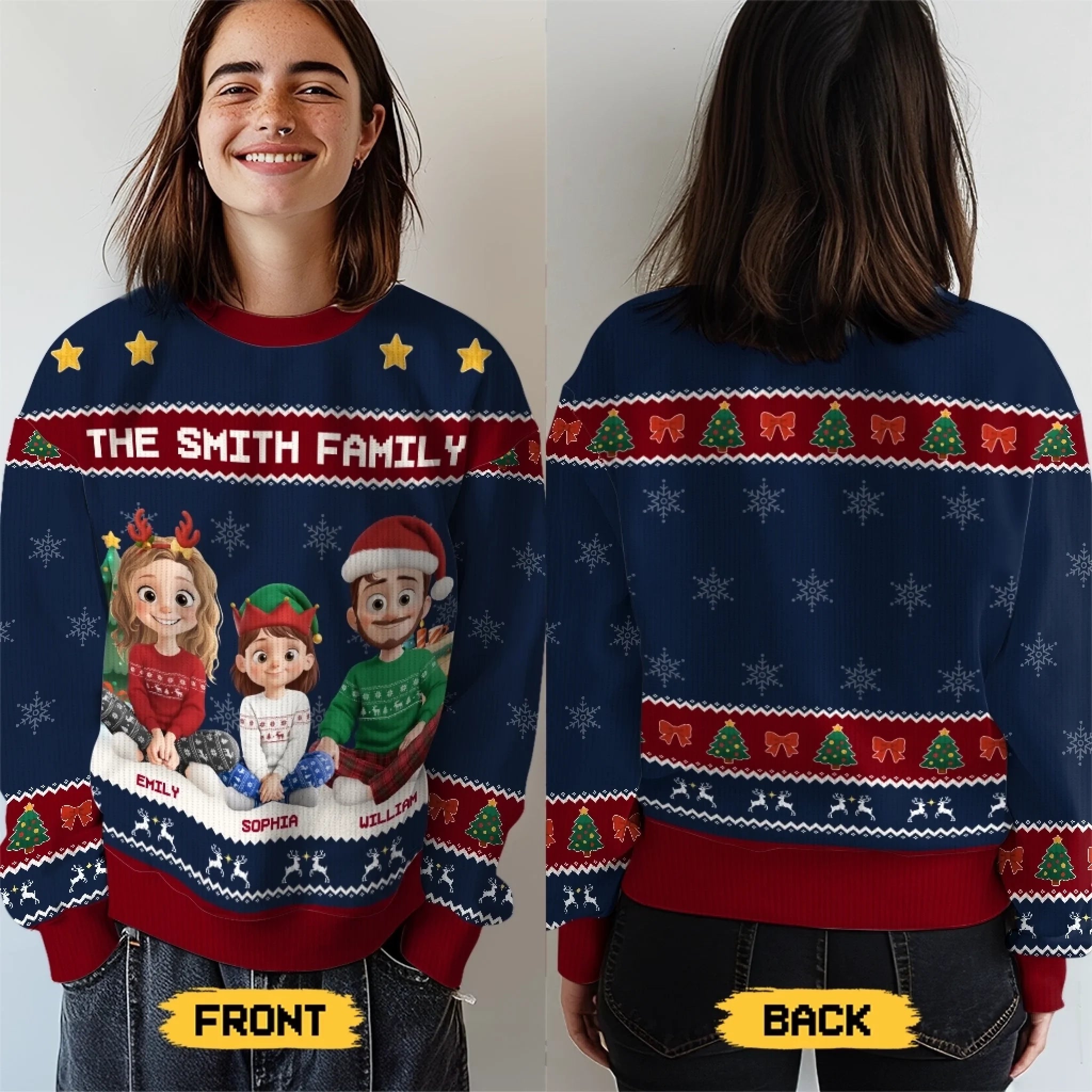 This lovely all-over-print sweatshirt is a perfect choice whether you are seeking for a special gift for your loved ones or just want to dress up your Holiday season with a trendy outfit.