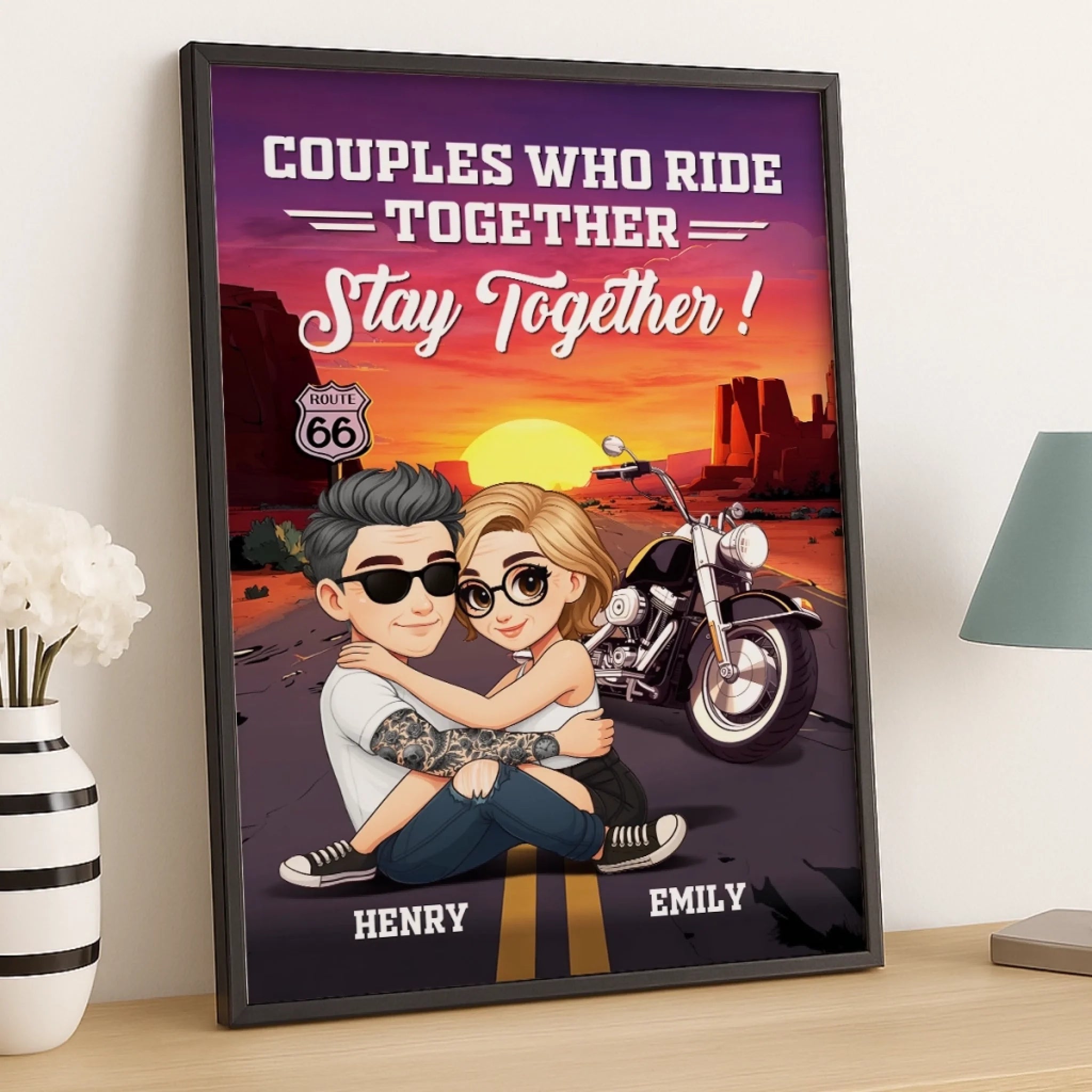 Custom Vertical Poster - Personalized Anniversary Wedding Gifts For Husband And Wife, Him And Her, Biker Lovers - Ride Together, Love Forever
