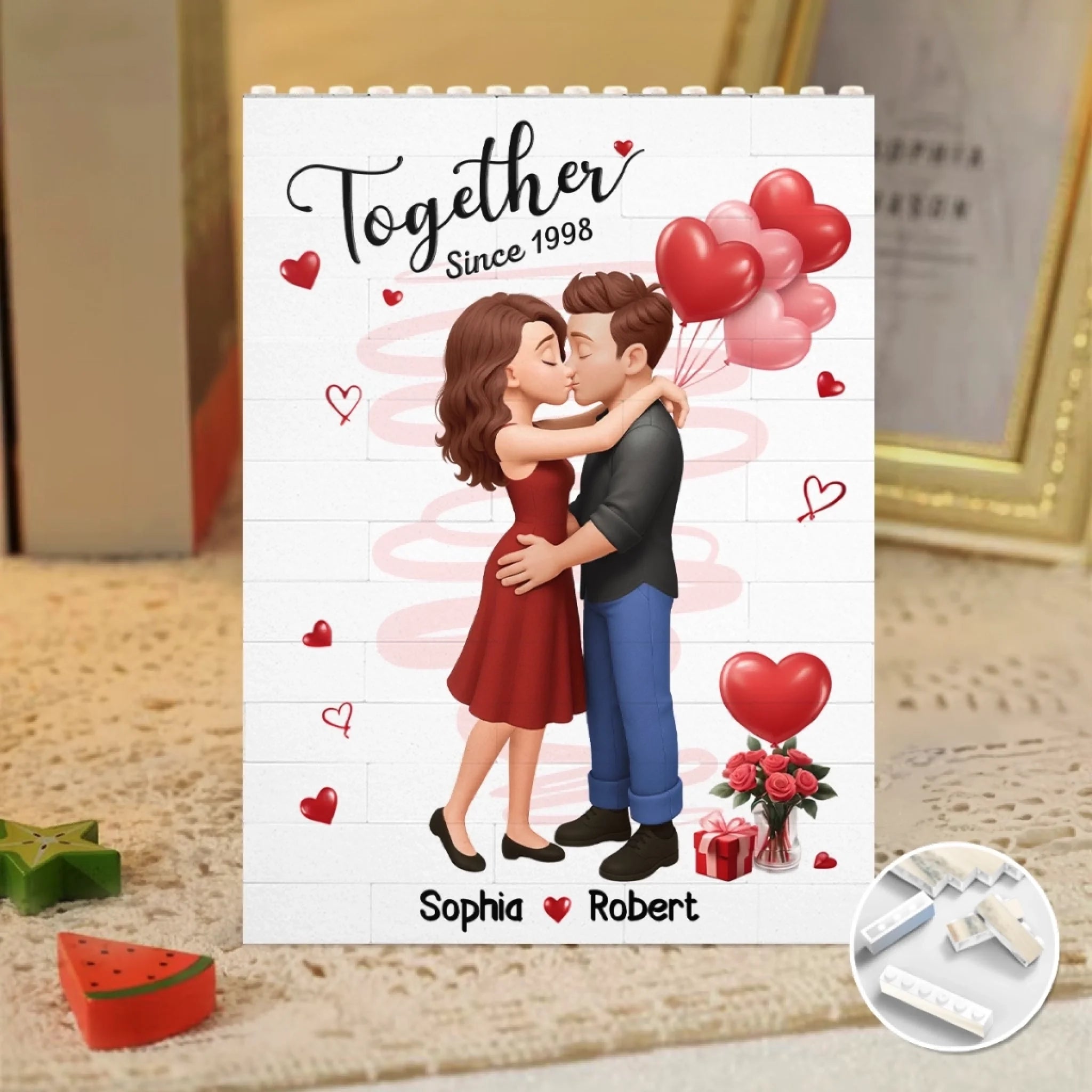 Custom Vertical Rectangle Shaped Building Brick Blocks - Personalized Anniversary Wedding Gifts For Husband And Wife, Him And Her - Together We Build Forever