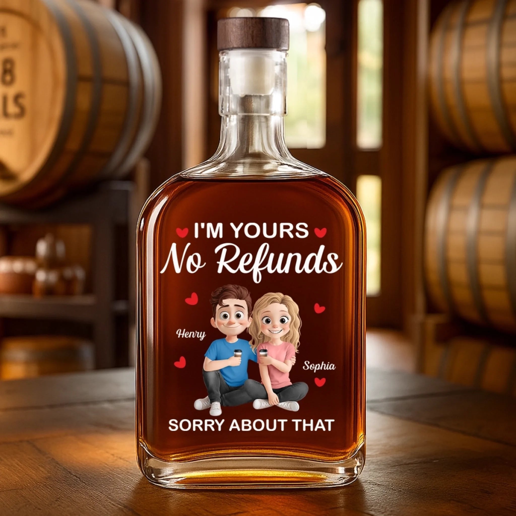 Custom Whiskey Bottle - Personalized Anniversary Wedding Gifts For Husband And Wife, Him And Her, Wine, Bourbon, Whiskey Lovers - Lifetime Contract, No Escape