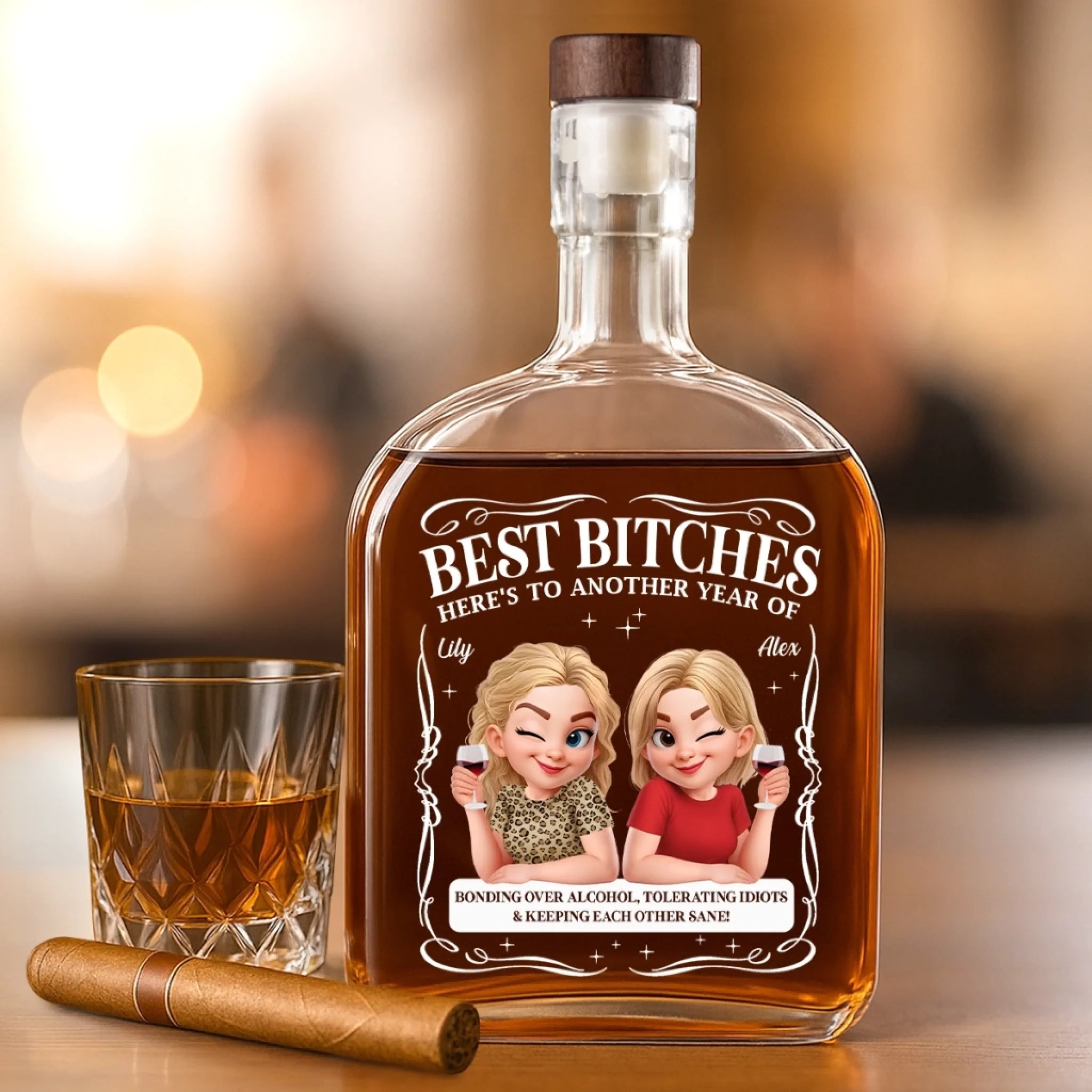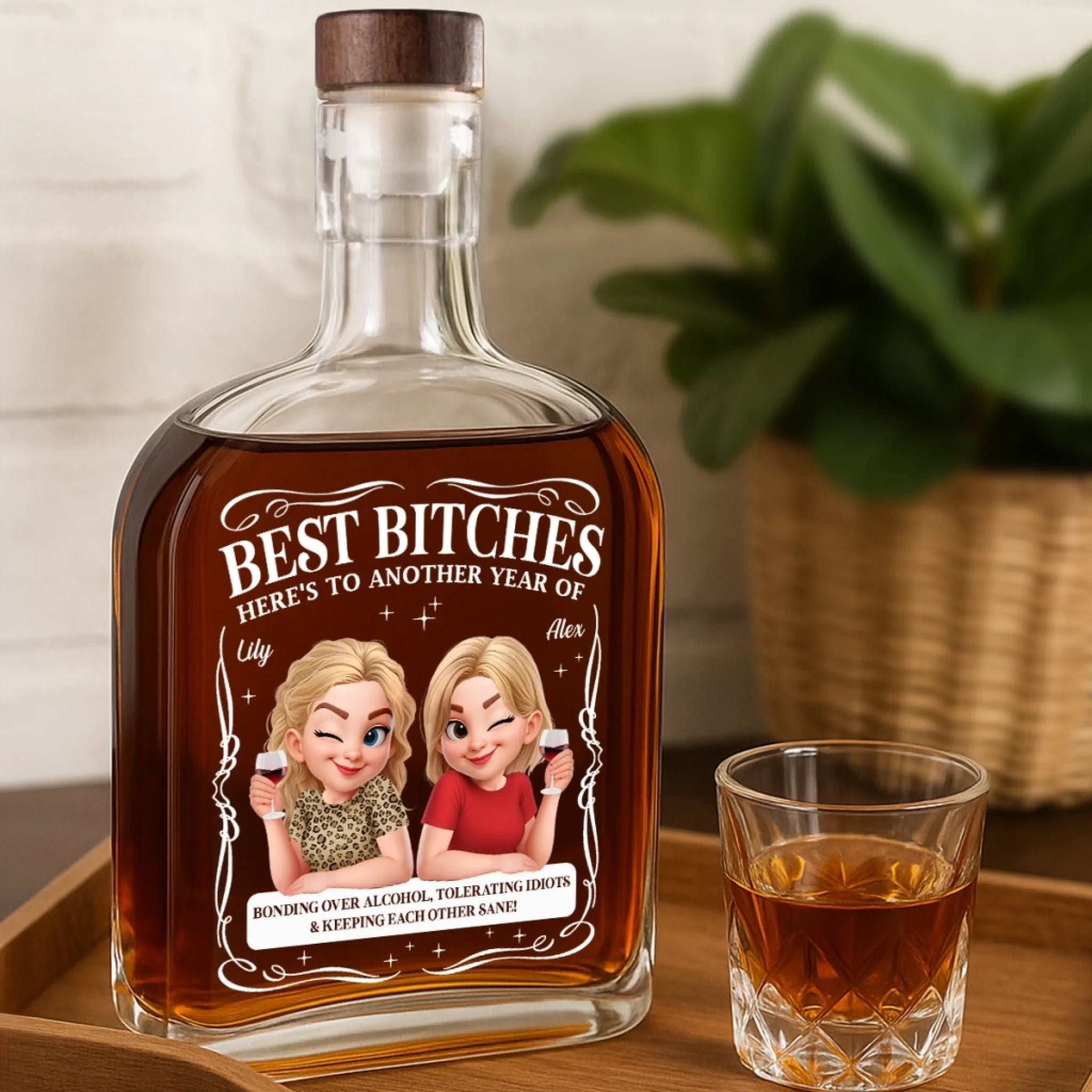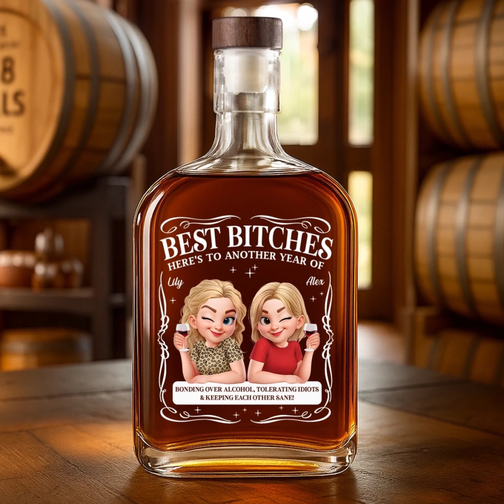 Custom Whiskey Bottle - Personalized Best Friend Birthday Gifts For Women, Besties, Sisters, BFF - Thriving On Chaos Together