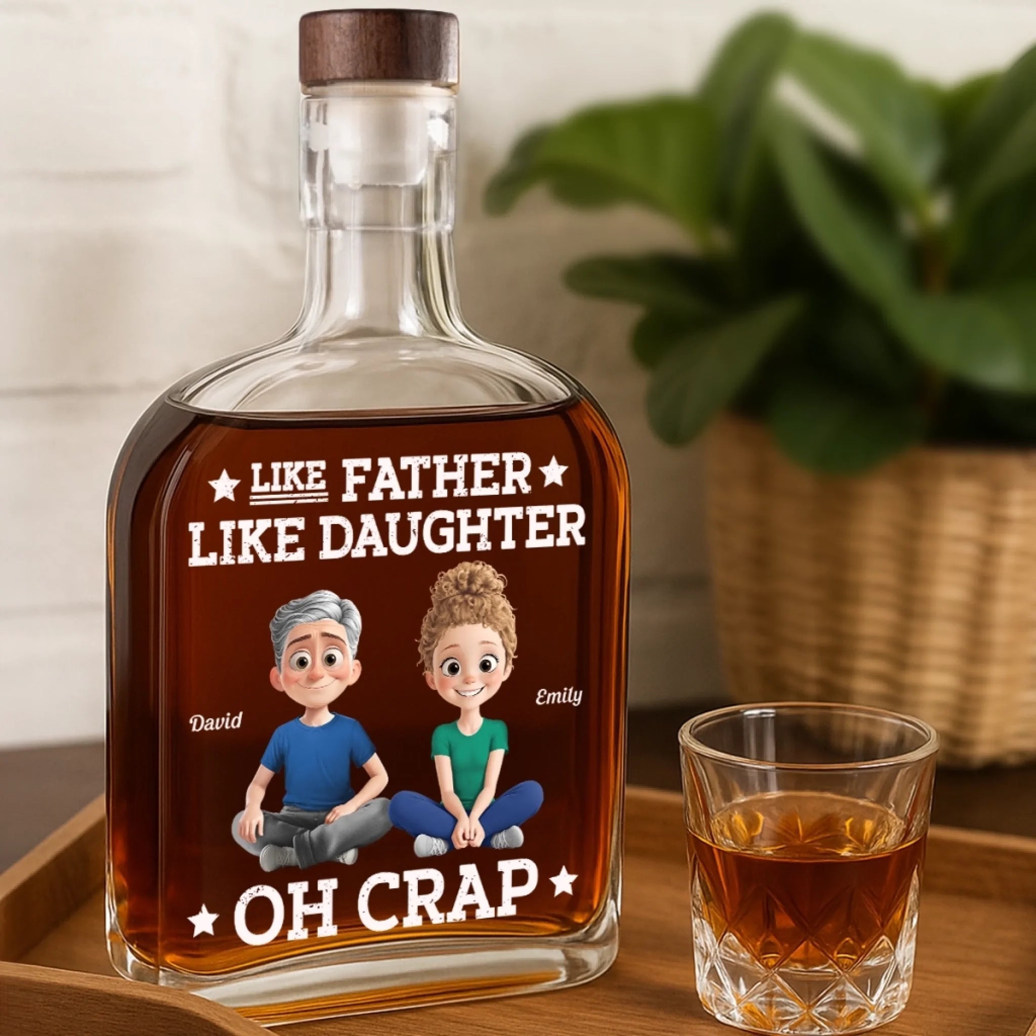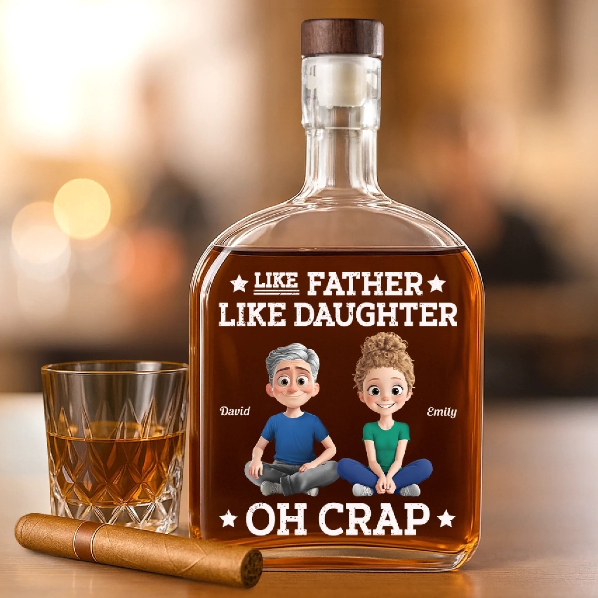 Custom Whiskey Bottle - Personalized Christmas Birthday Gifts For Dad, Daughter, Wine, Bourbon, Whiskey Lovers - Like Father, Like Daughter