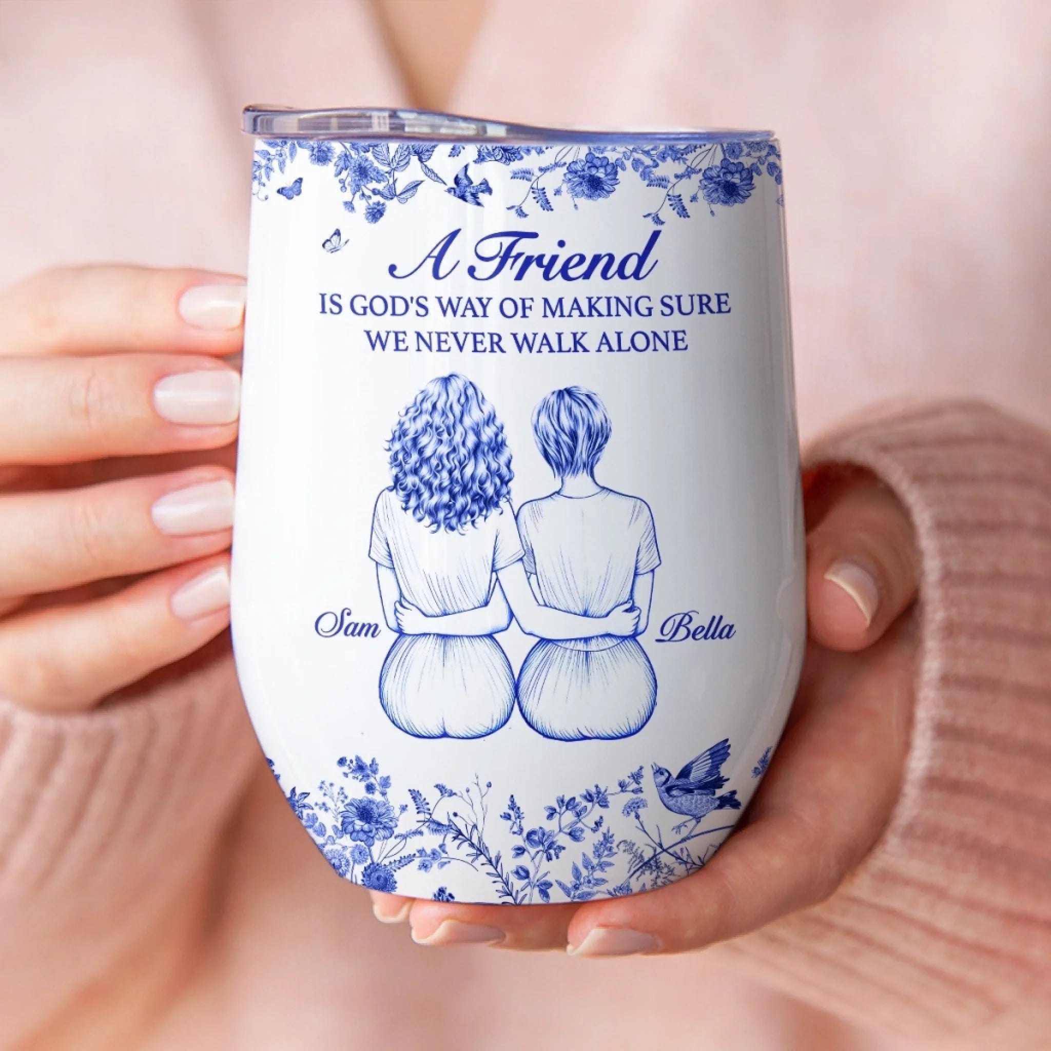 Custom Wine Tumbler - Personalized Best Friend Birthday Gifts For Women - Never Walk Alone