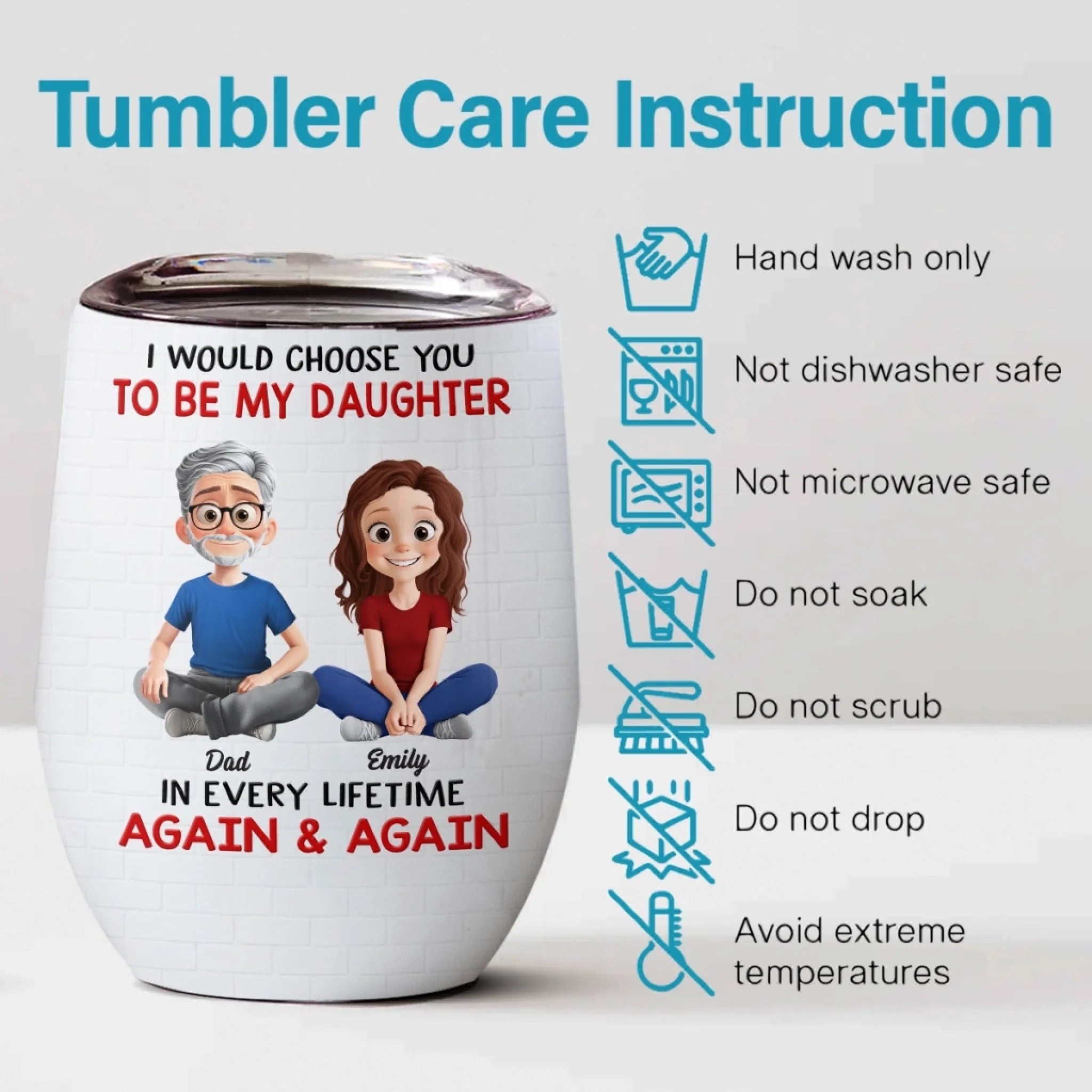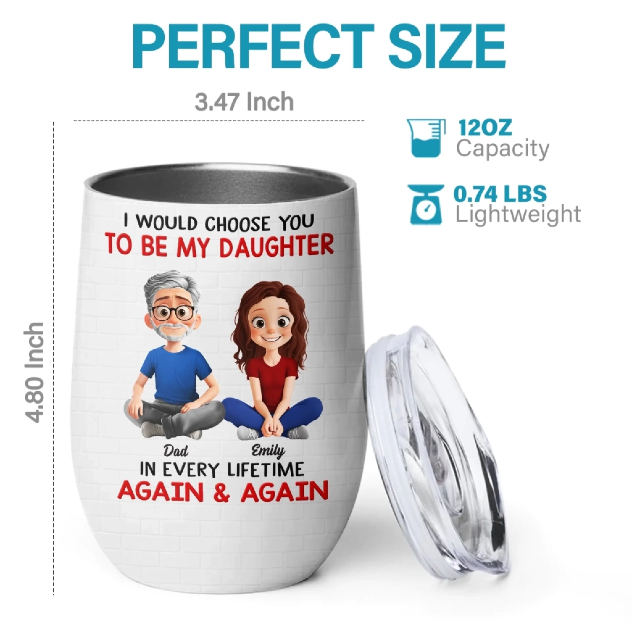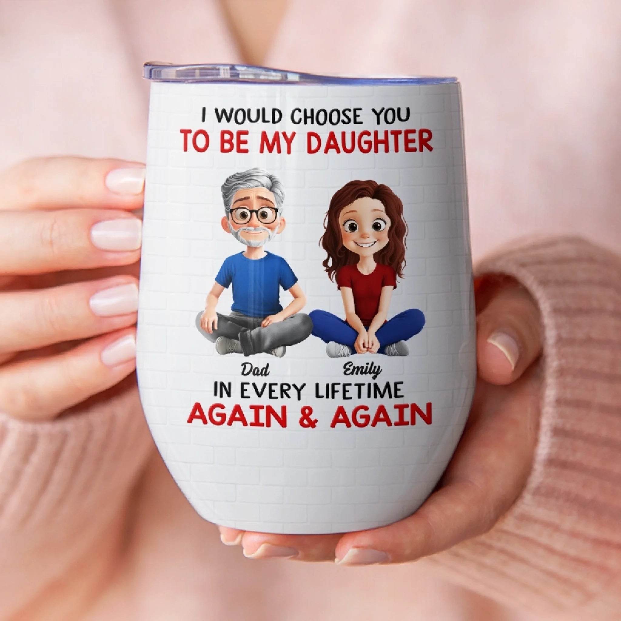 Custom Wine Tumbler - Personalized Birthday Gifts For Dad, Daughter - I’d Choose You Every Lifetime