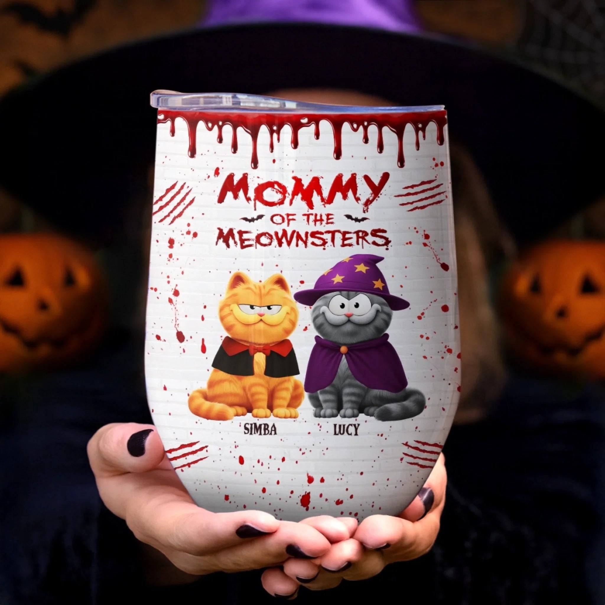 Custom Wine Tumbler - Personalized Halloween Birthday Gifts For Cat Lovers, Cat Mom And Dad - Cats Bring Mystery To Halloween Nights
