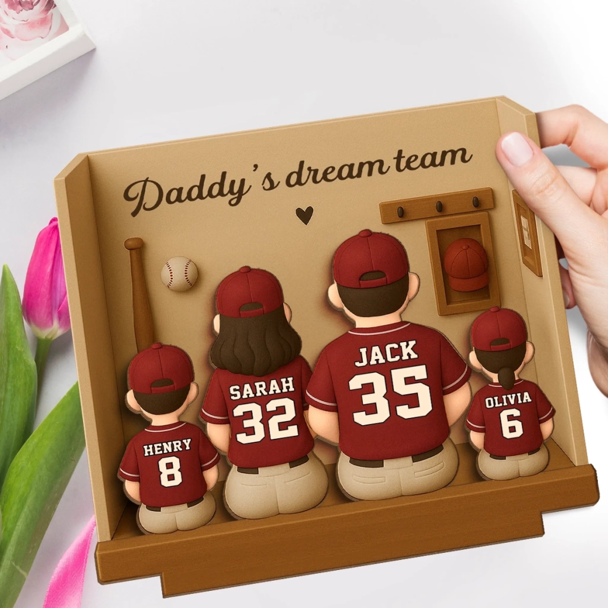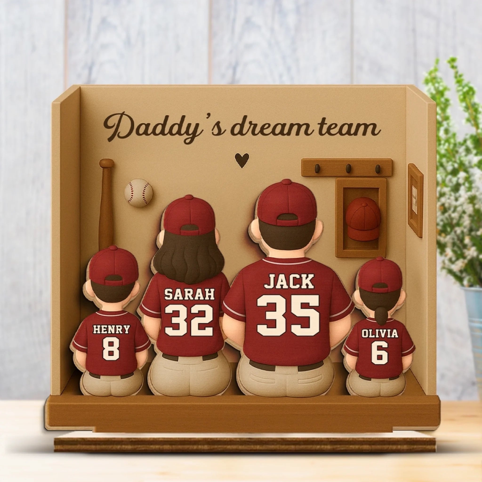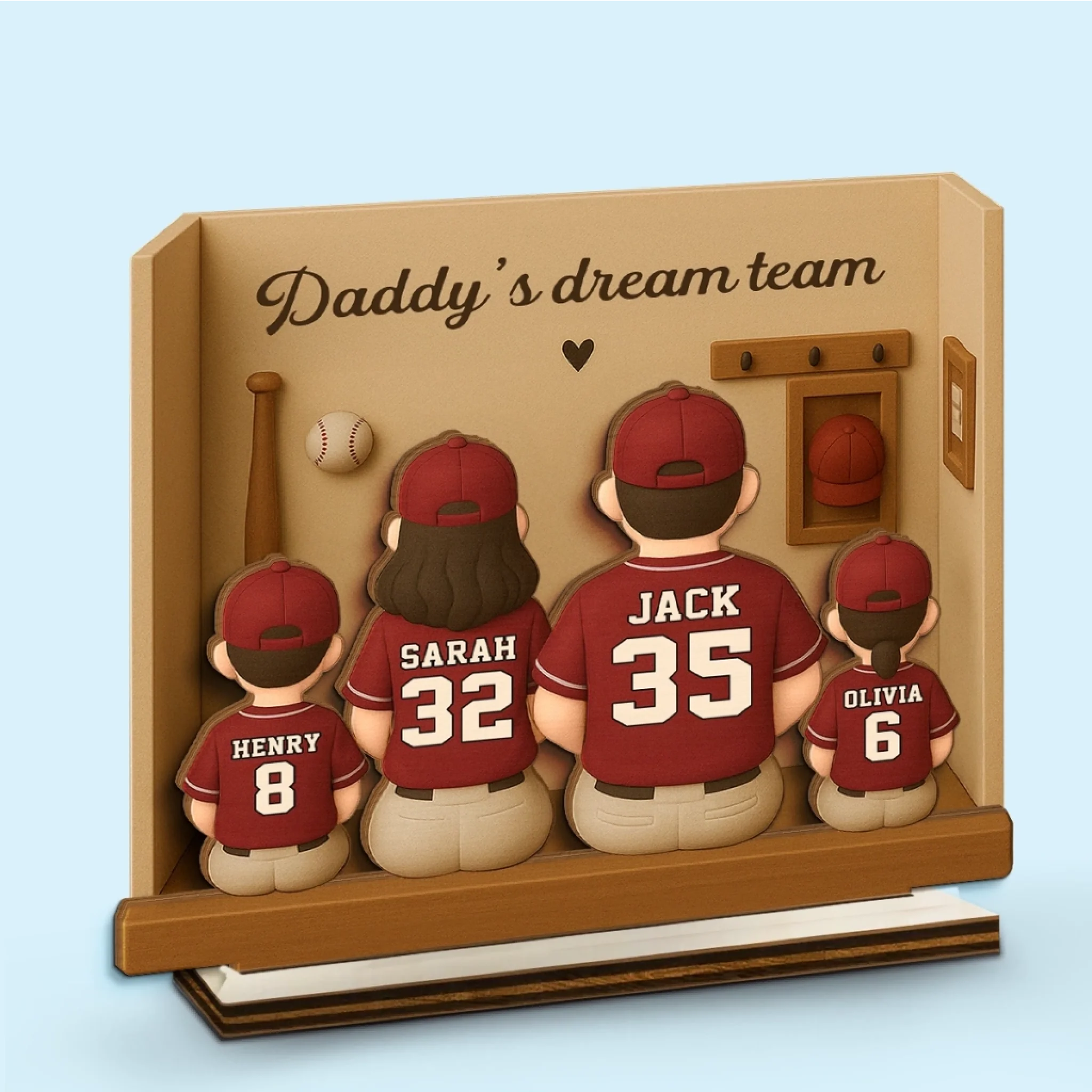 Dad’s All-Star Squad - Family Personalized Custom Shaped 2-Layered Wooden Plaque With Flat Stand - Father's Day, Gift For Dad, Sport Lovers, Sport Players