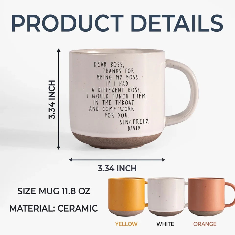 Dear Boss, Thanks For Being My Boss - Coworker Personalized Custom Printed Pottery Mug - Gift For Coworkers, Work Friends, Colleagues