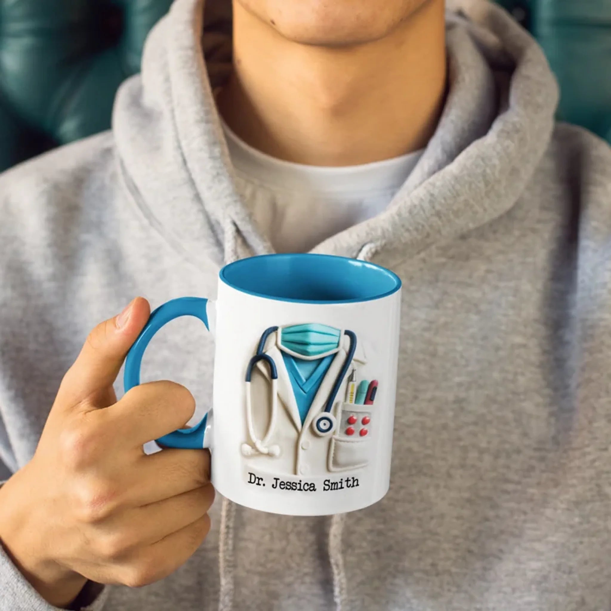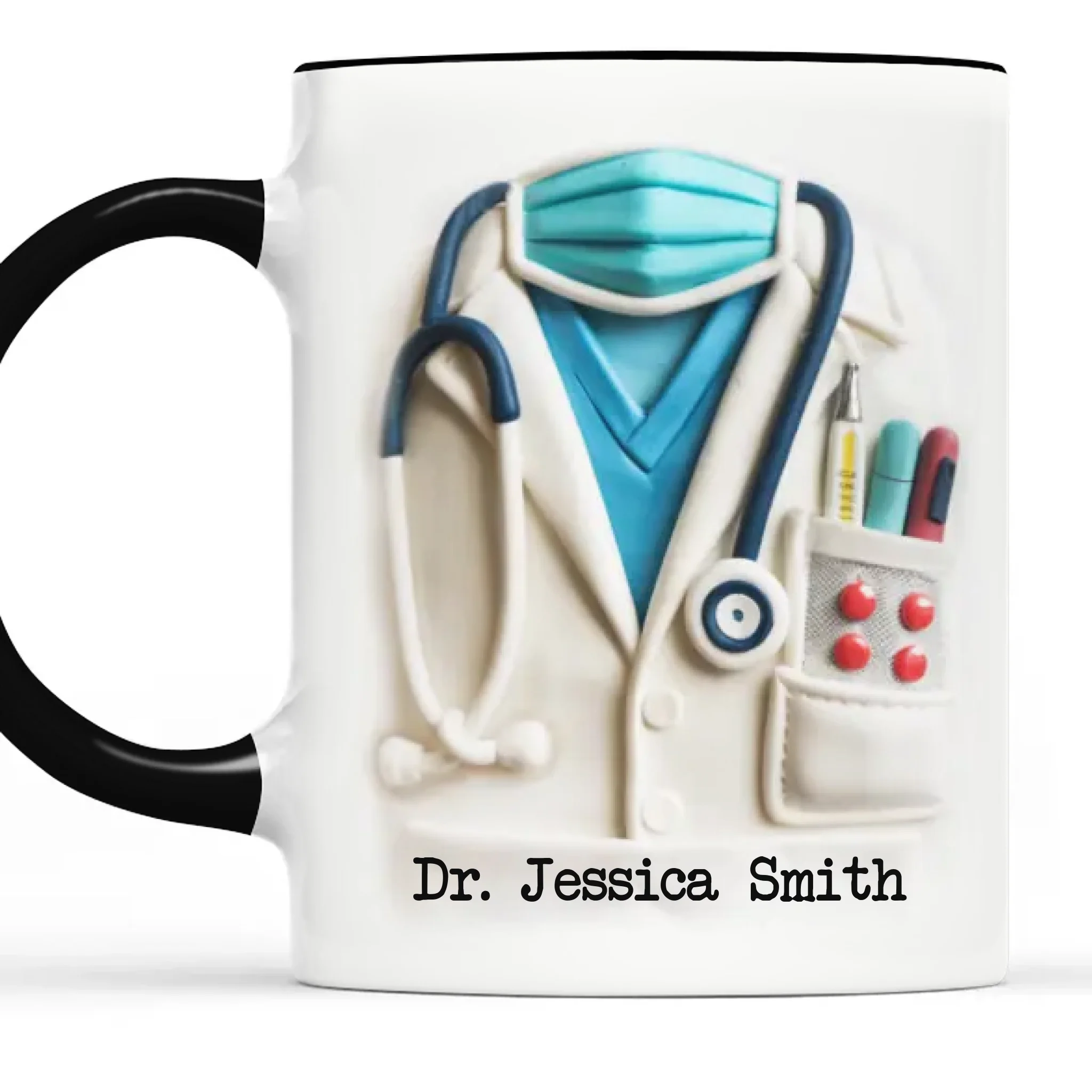 Doctor By Title, Hero By Heart - Family Personalized Custom 3D Inflated Effect Printed Accent Mug - Appreciation, Thank You Gift, Nurse Life, Doctor Life