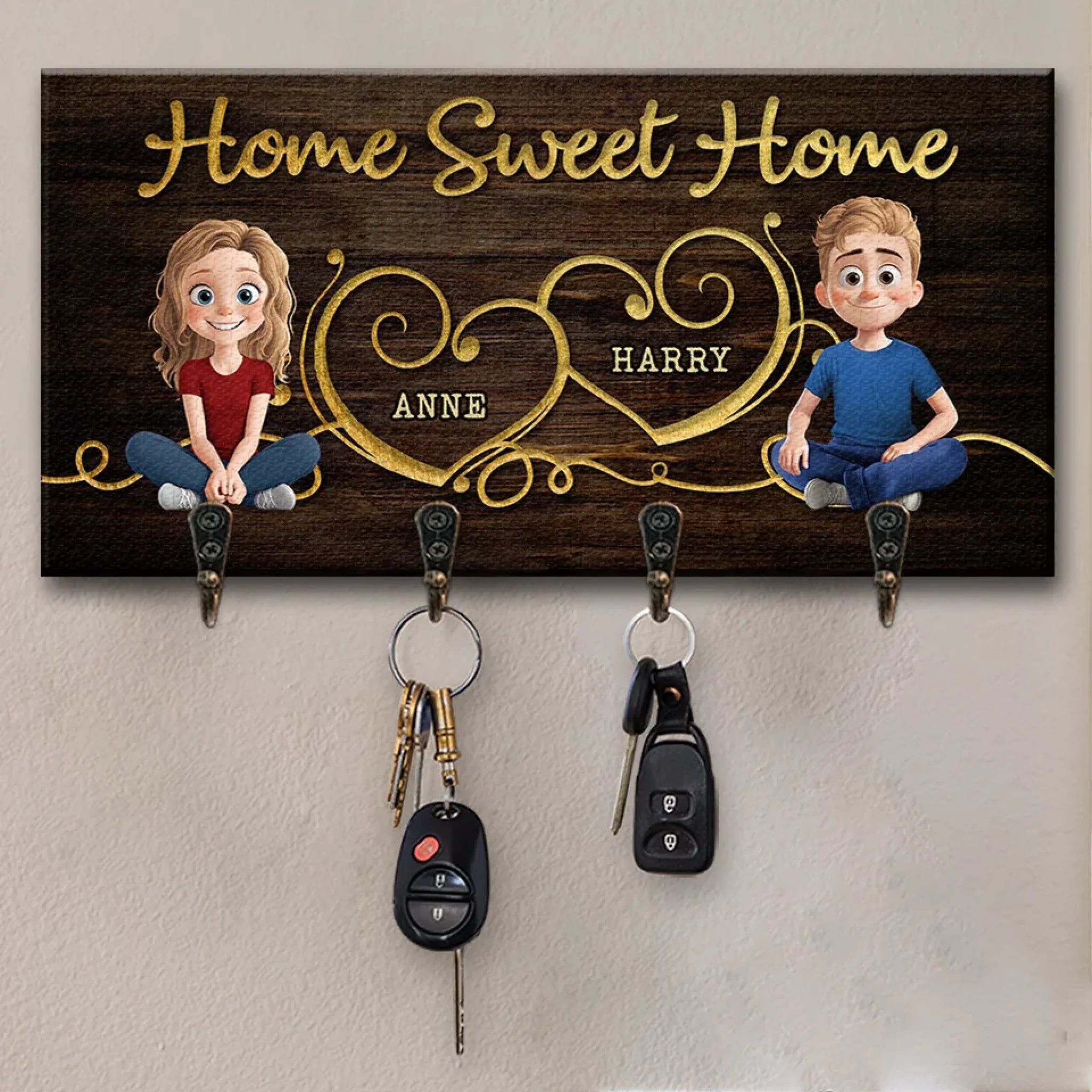 Every Moment With You Feels Like Home - Couple Personalized Custom Home Decor Key Hanger, Key Holder - House Warming Gift For Husband Wife, Anniversary