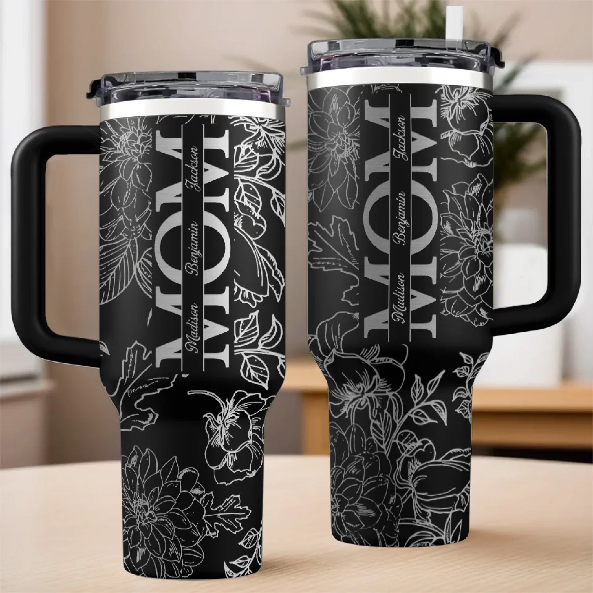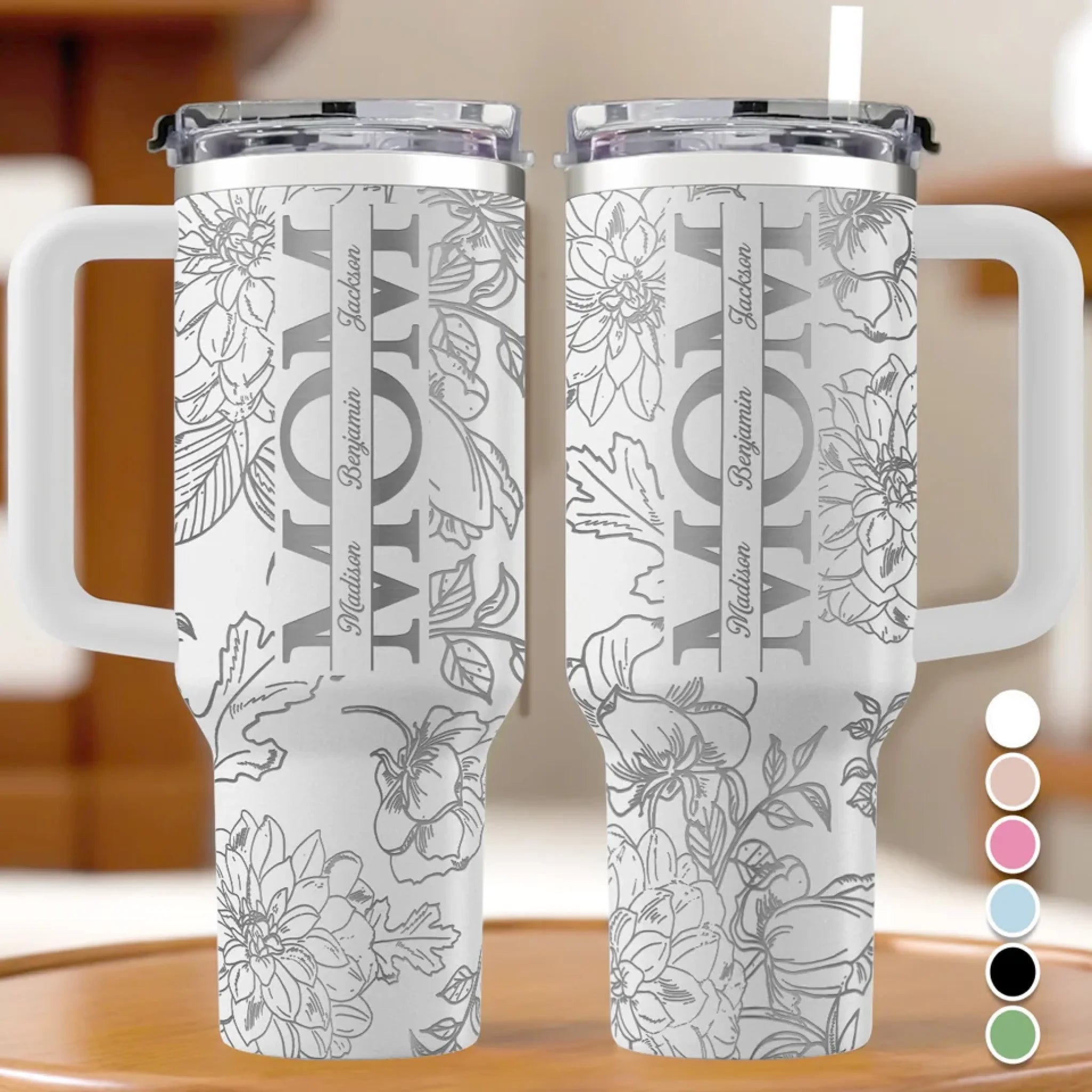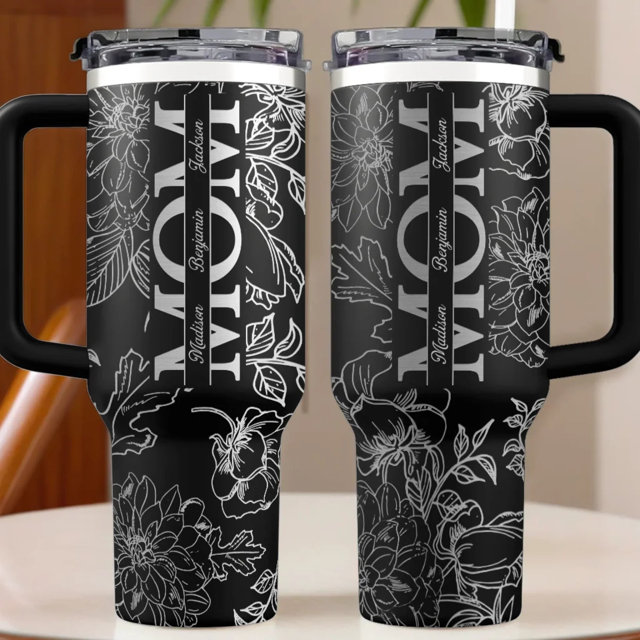 Every Sip, A Reminder Of Her Love - Family Personalized Custom Engraved 40oz Tumbler With Handle - Mother's Day, Gift For Mom, Grandma