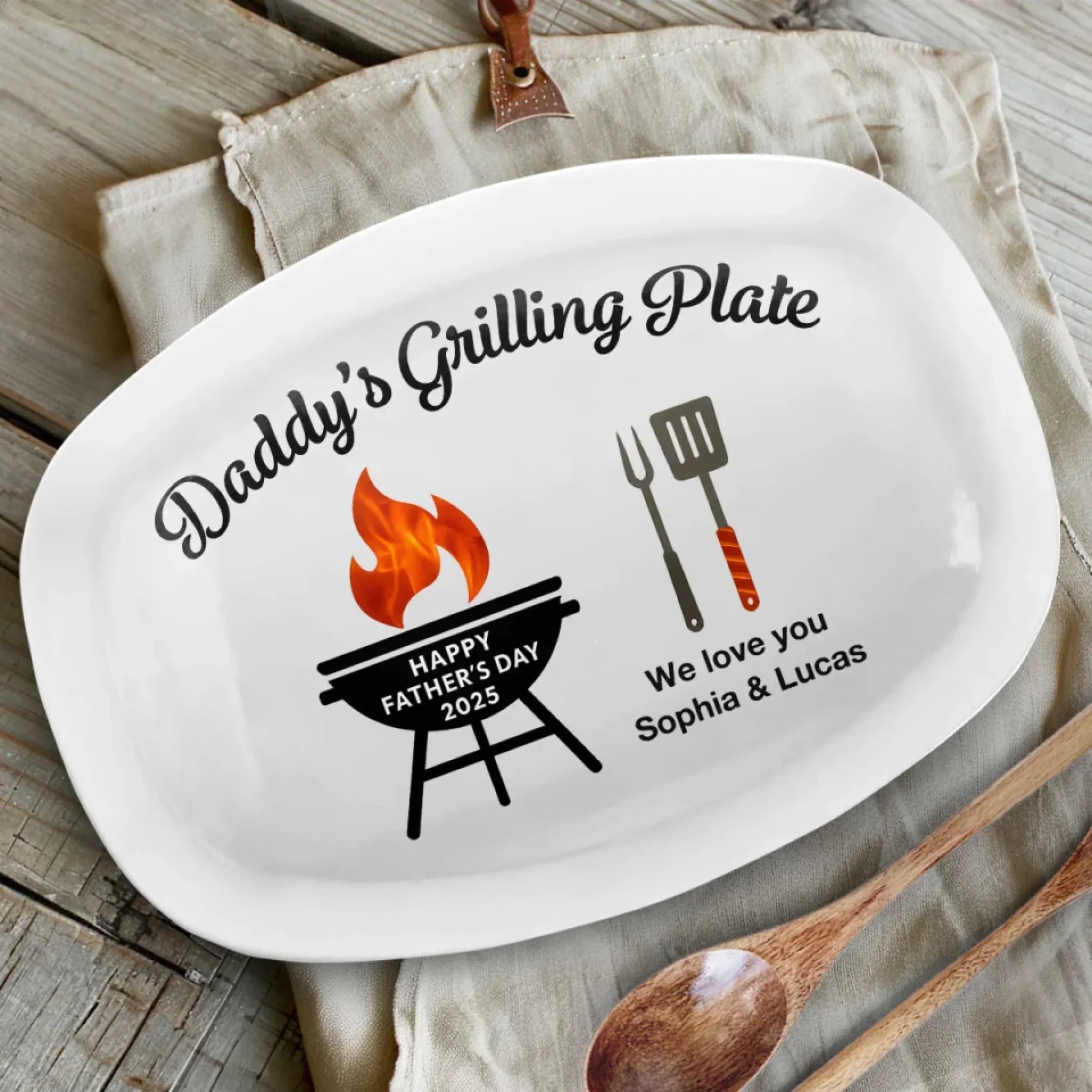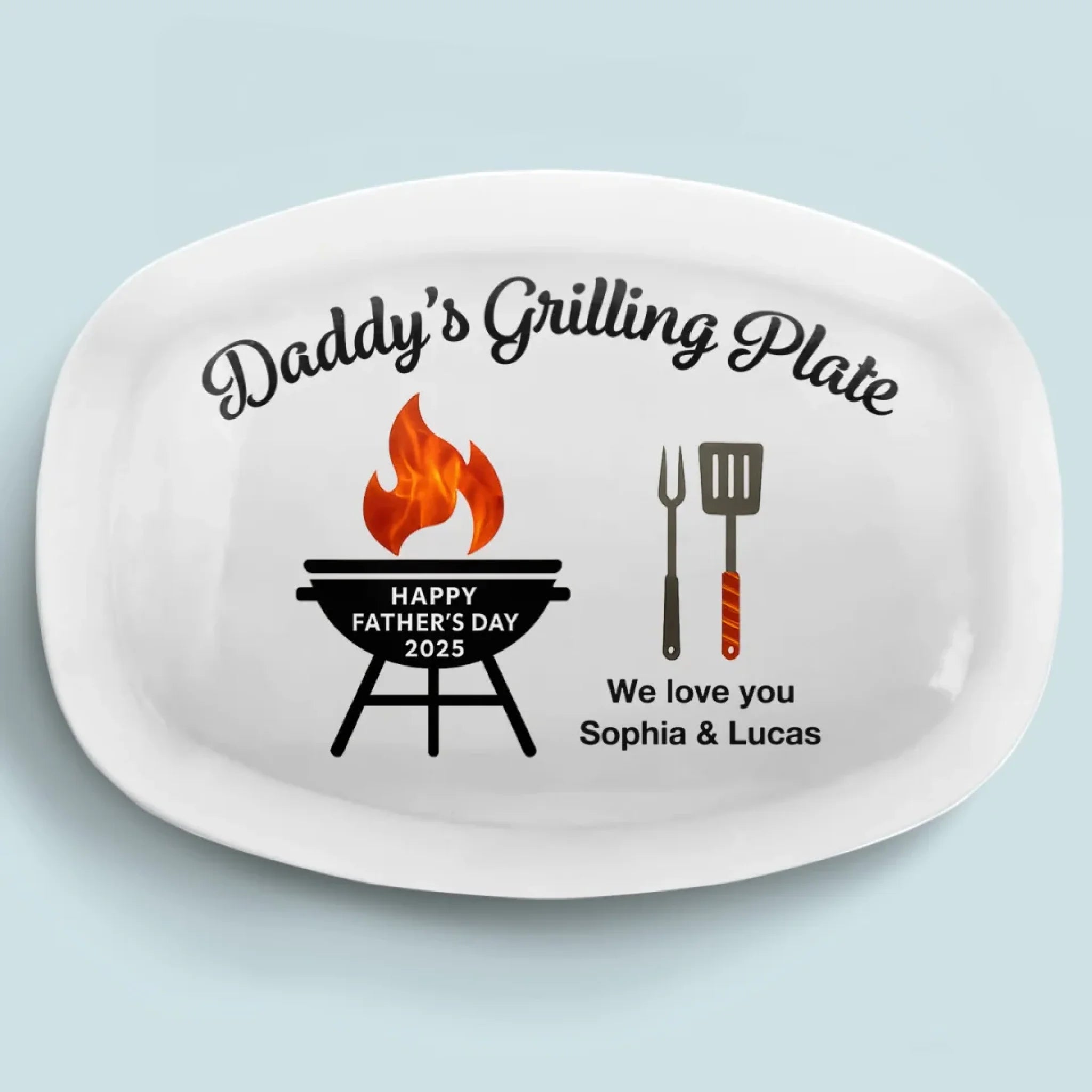 Fired Up For Father’s Day - Family Personalized Custom Platter - Father's Day, Gift For Dad, Grandpa
