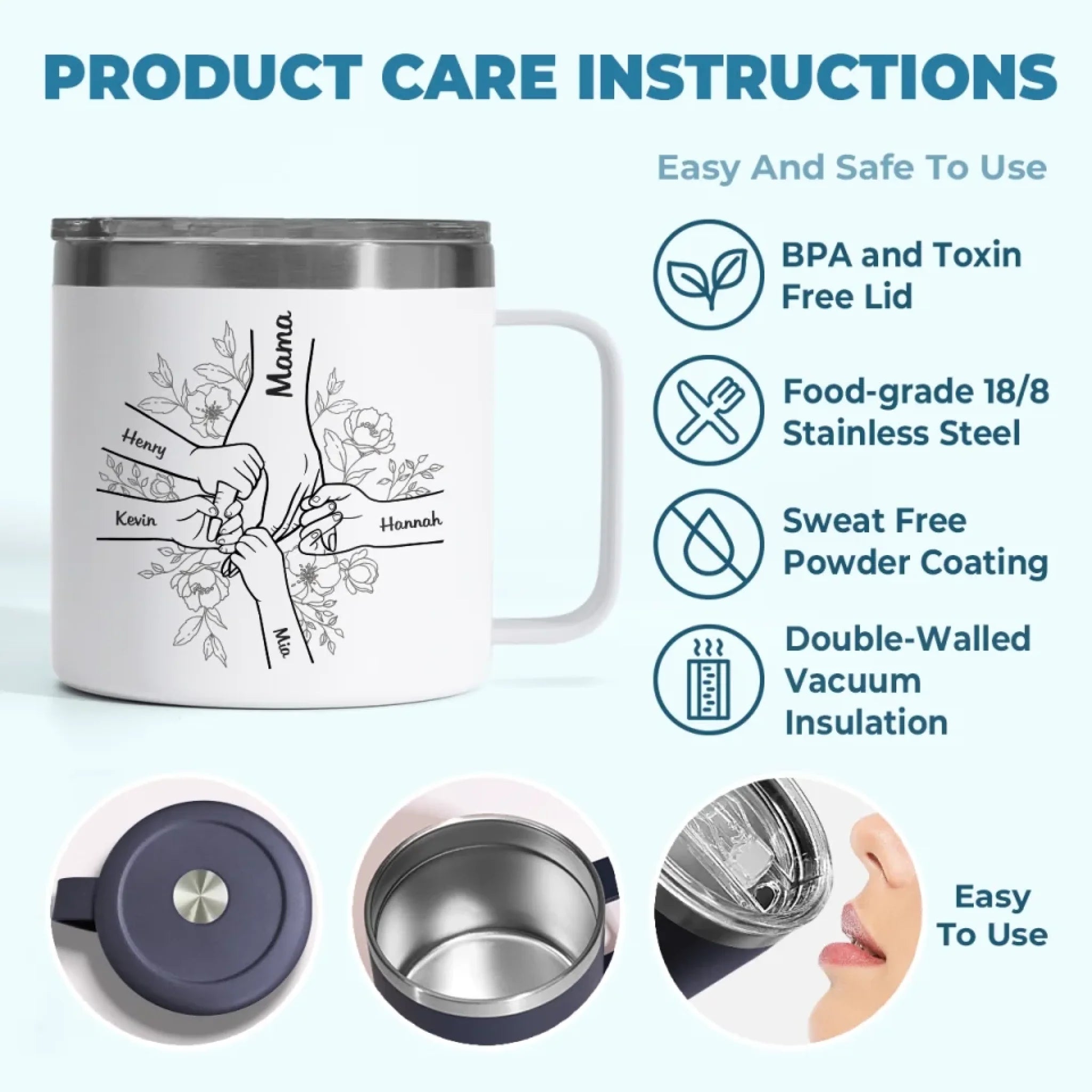 • The insulated coffee mug is never rust, lead free, easy wash and unbreakable.