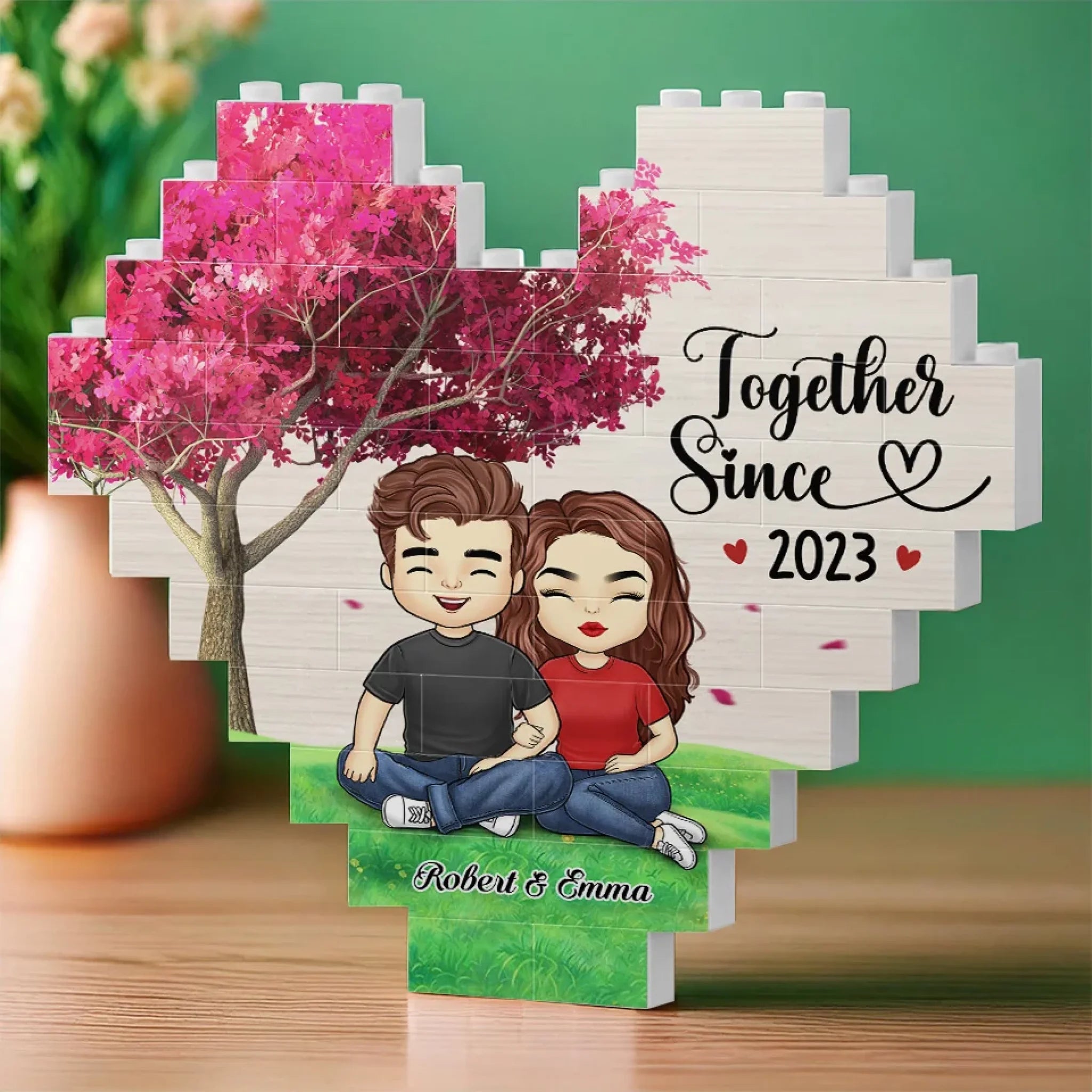 Forever Together - Couple Personalized Custom Heart Shaped Building Brick Blocks - Gift For Husband Wife, Anniversary
