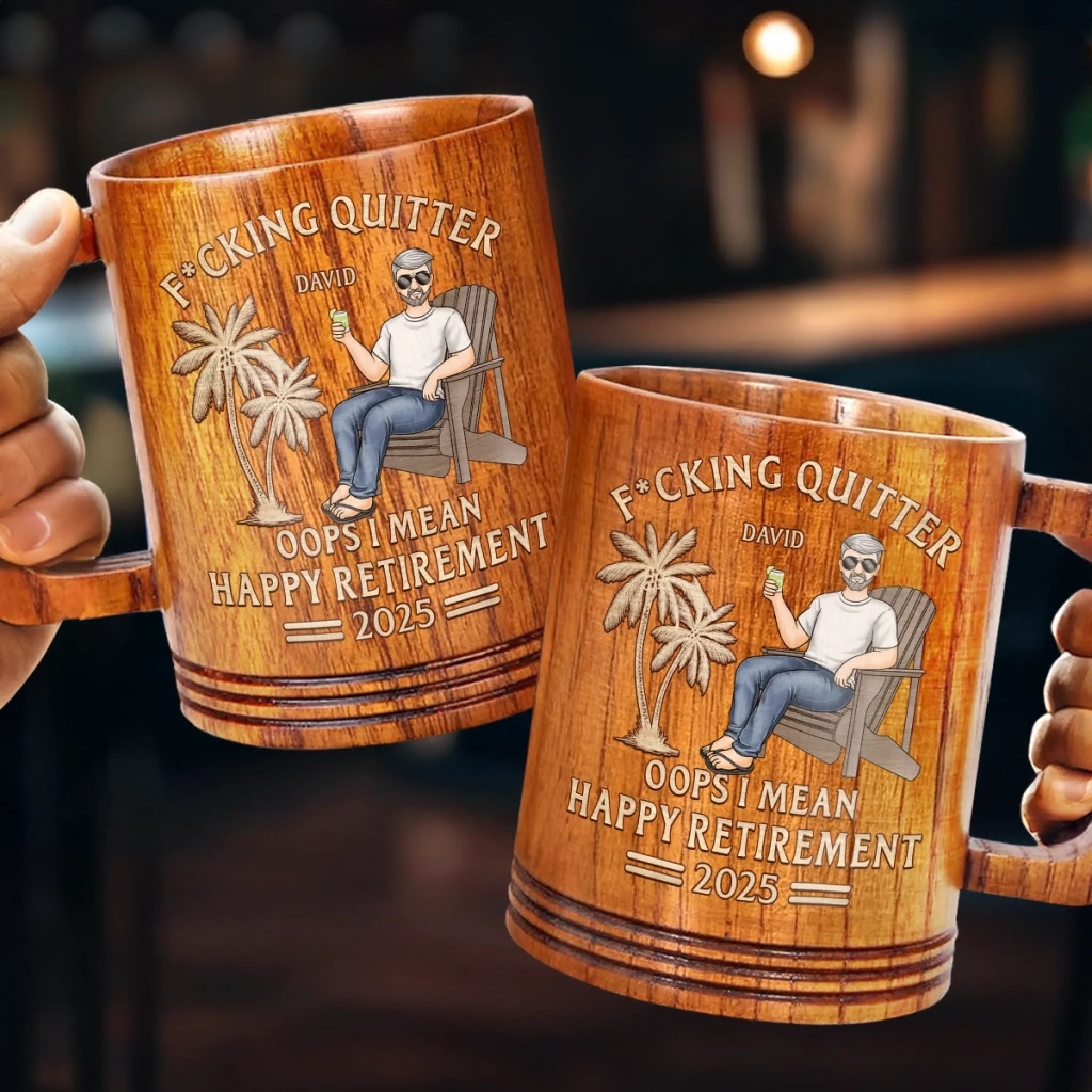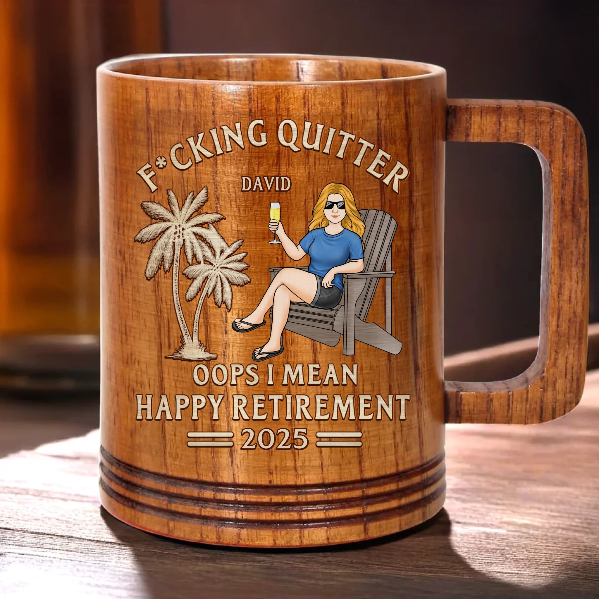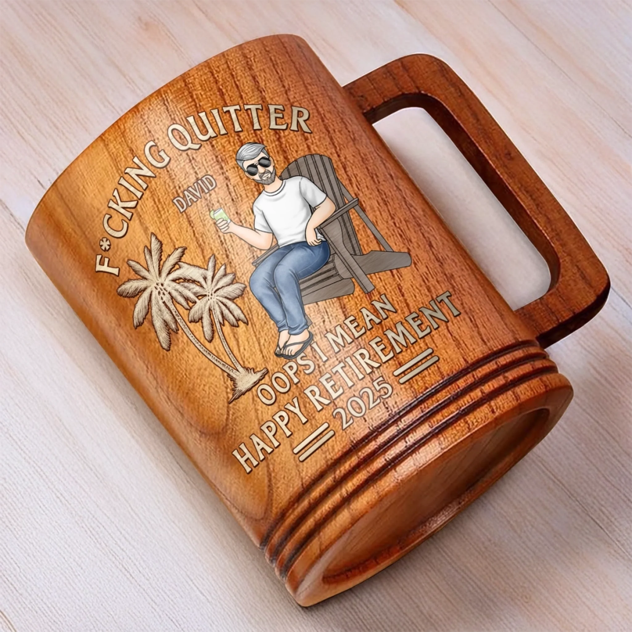 From Deadlines To Lifelines, Cheers - Coworker Personalized Custom Wooden Mug - Appreciation, Retirement Gift For Coworkers, Work Friends, Colleagues