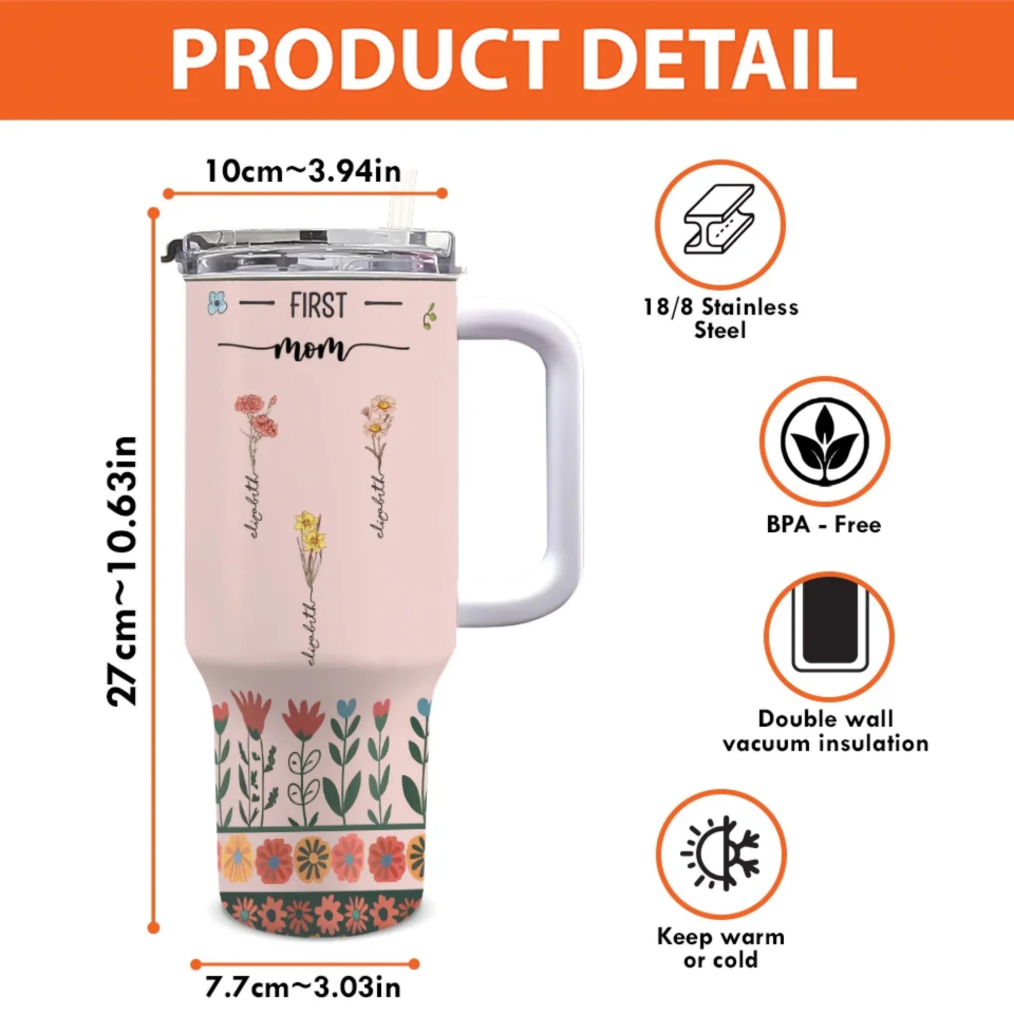From Her Roots, We Blossom - Family Personalized Custom 40 Oz Stainless Steel Tumbler With Handle - Gift For Mom, Grandma