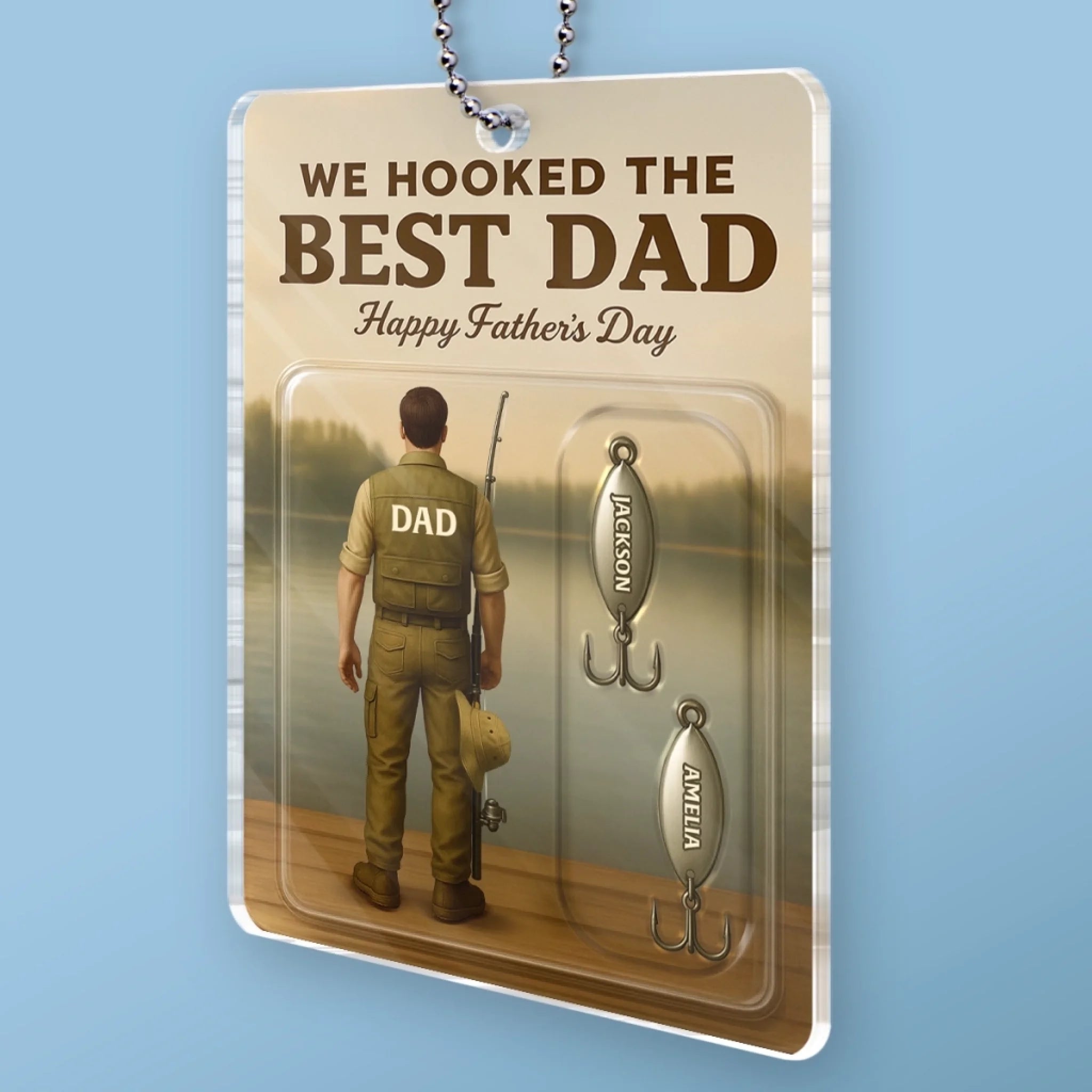 From Our Hooks To Your Heart - Family Personalized Custom Car Ornament - Acrylic Custom Shaped - Father's Day, Gift For Dad, Grandpa, Fishing Lovers, Fishermen