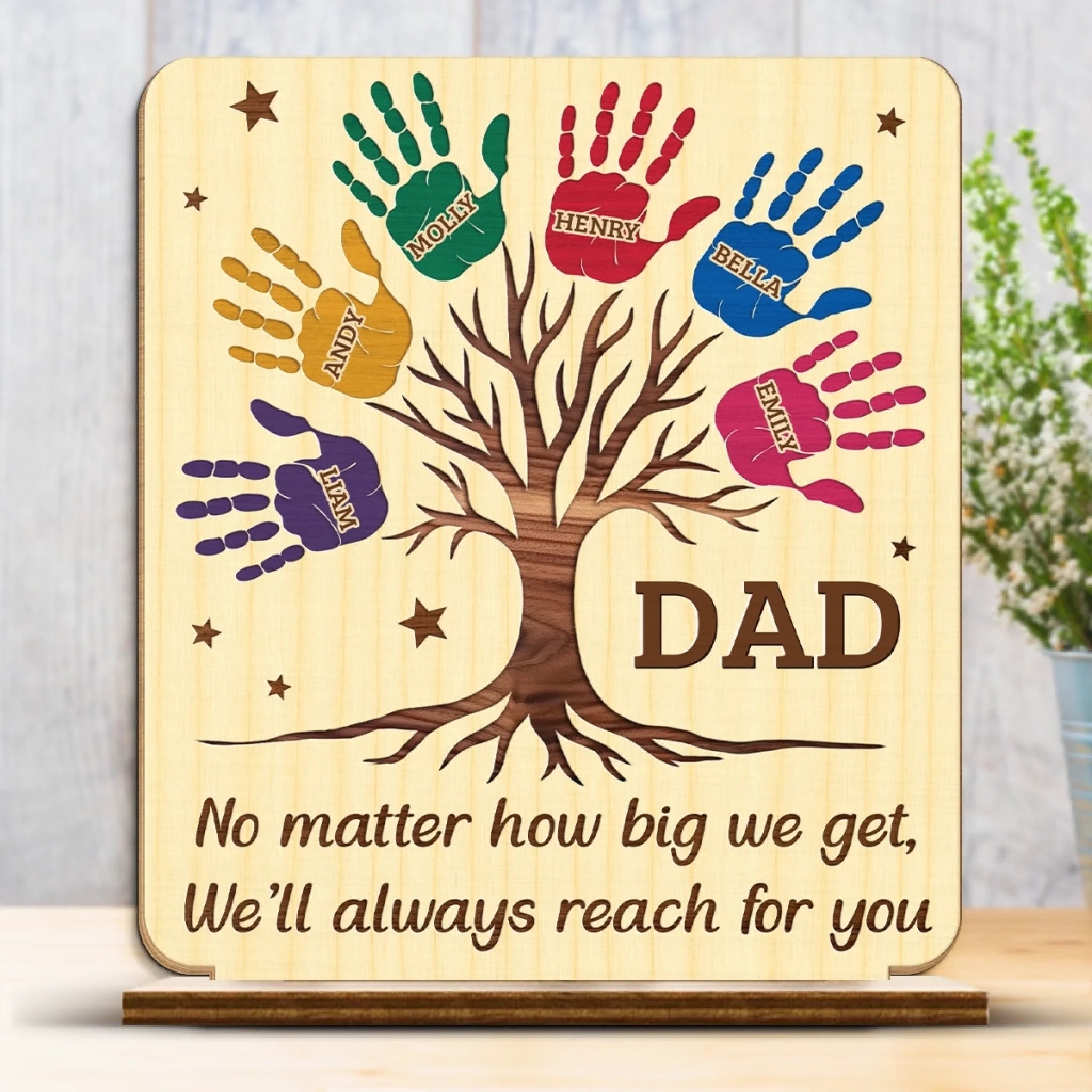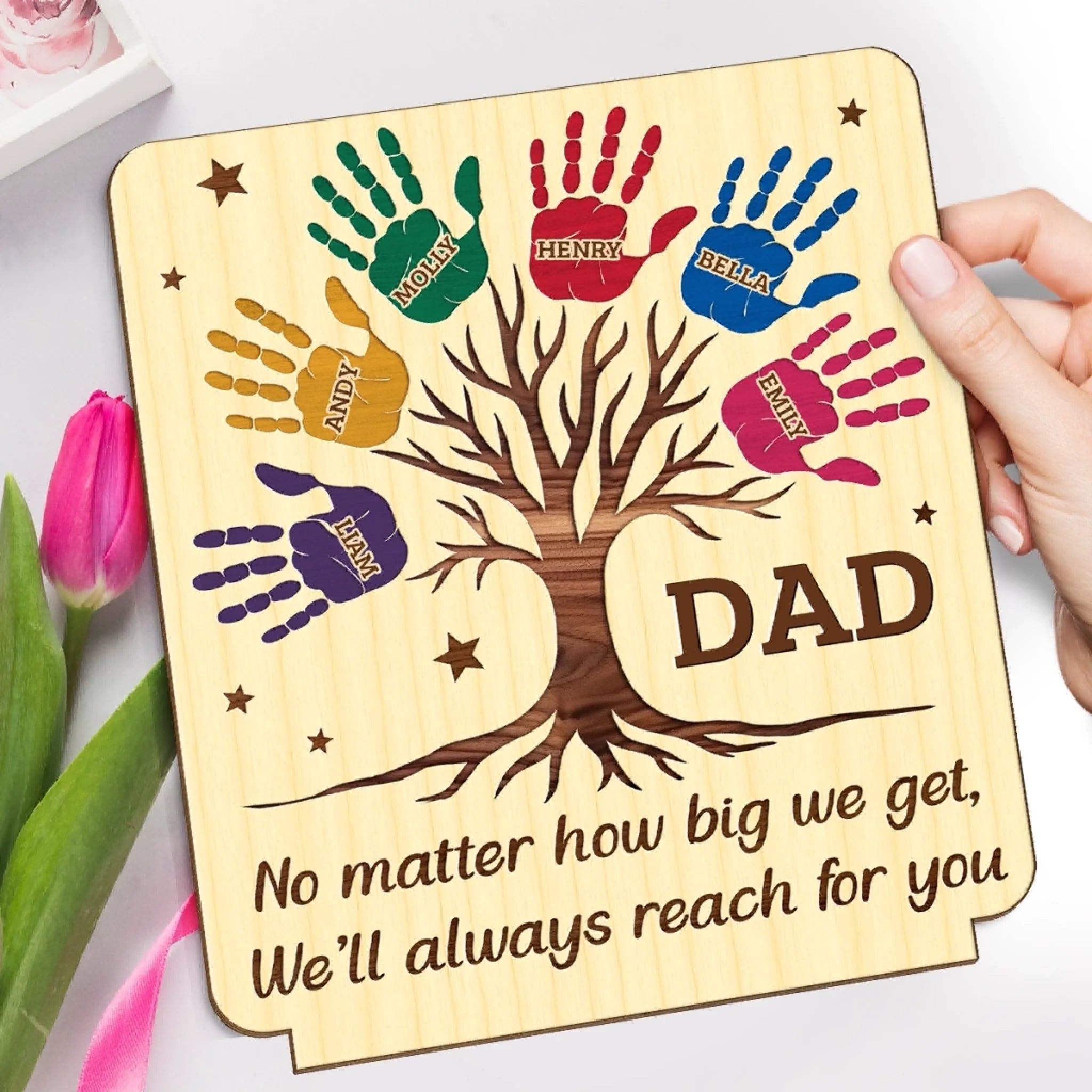 From Your Hands We Grew, To Your Heart We Return - Family Personalized Custom 2-Layered Wooden Plaque With Stand - Father's Day, Gift For Dad, Grandpa