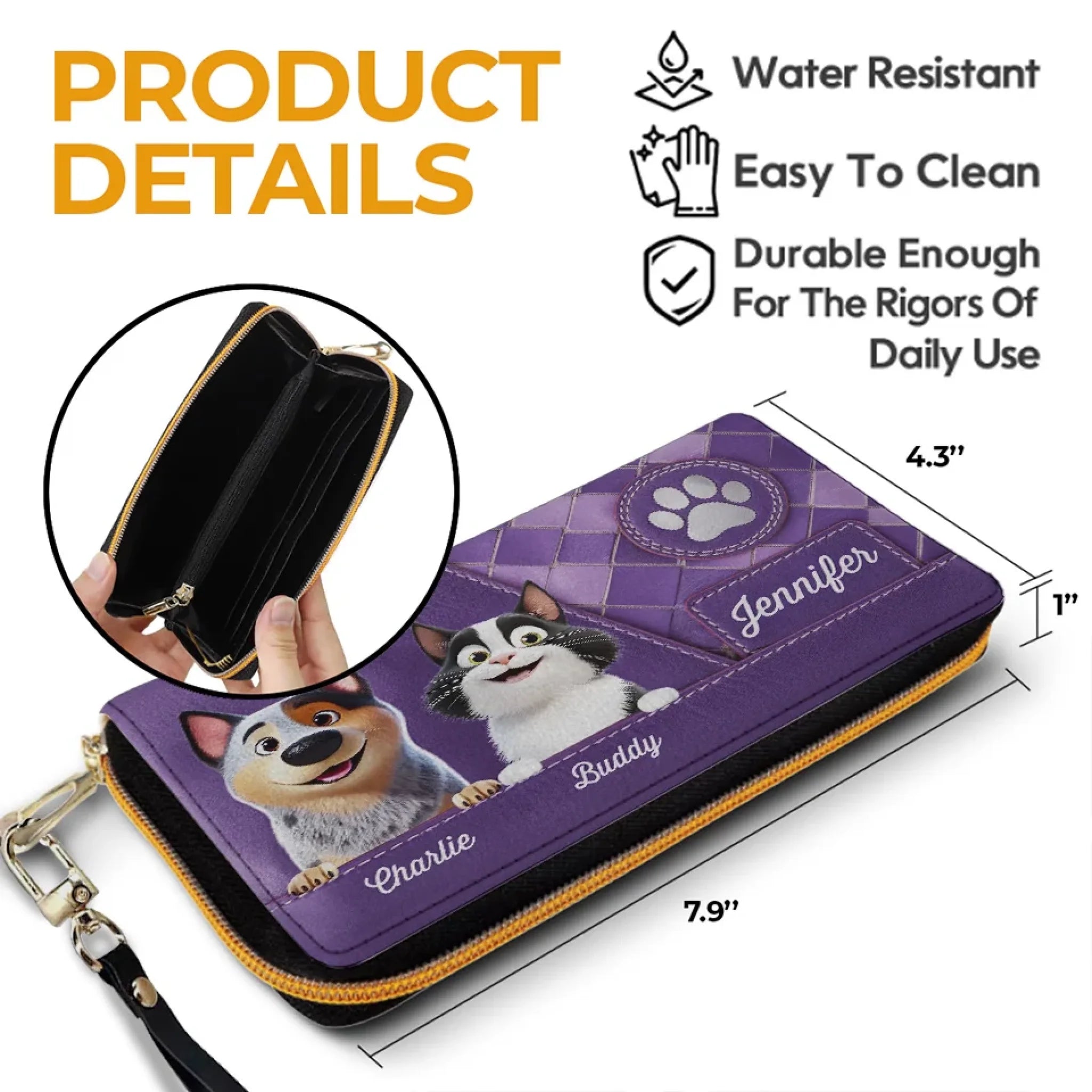 • The zipper-around design guarantees that your belongings stay secure while providing easy access to your cards or money.