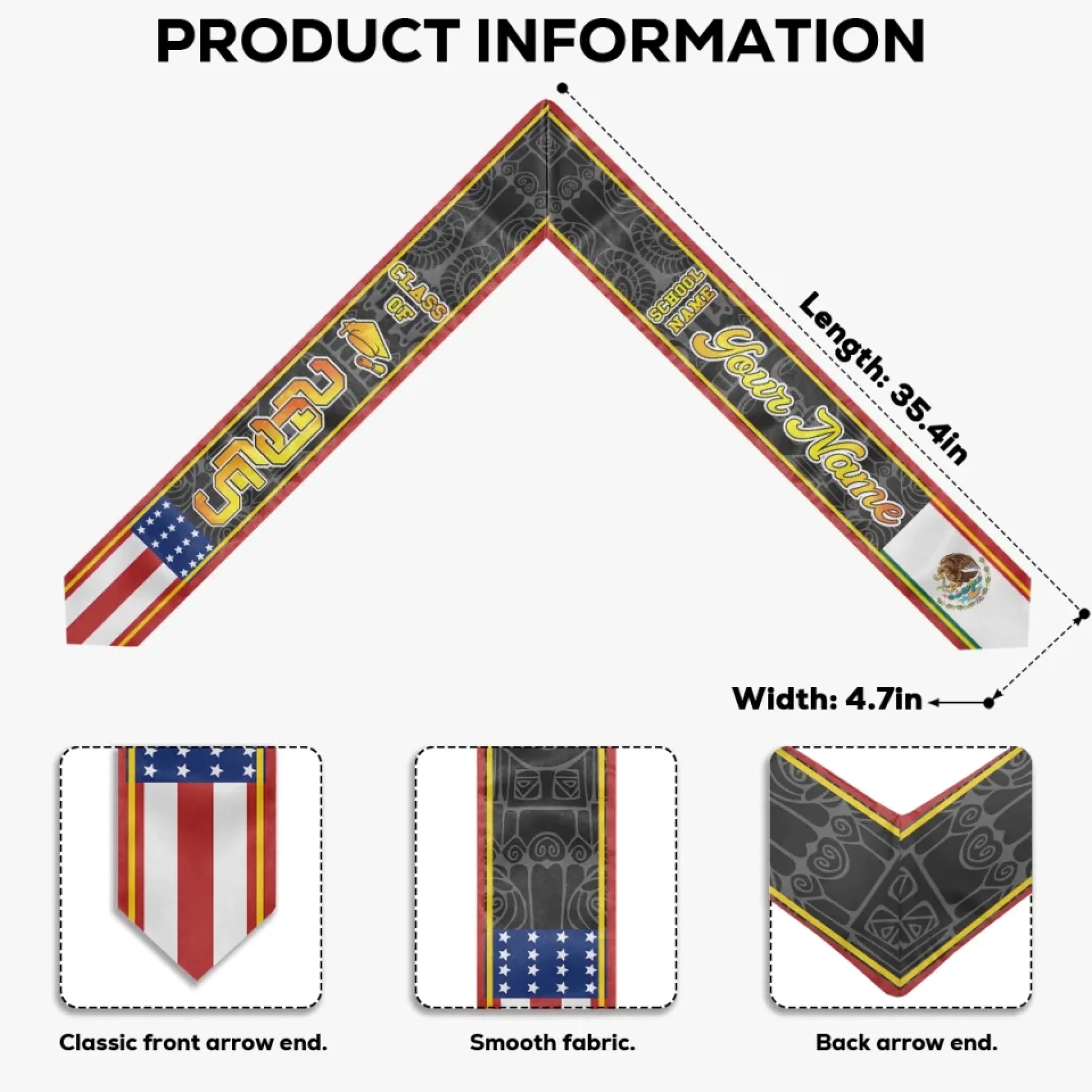 • Feature: Shape made to fit for all body types. Right in front of your eyes is an attractive, beautiful graduation flag stole to represent your culture while crossing the stage.