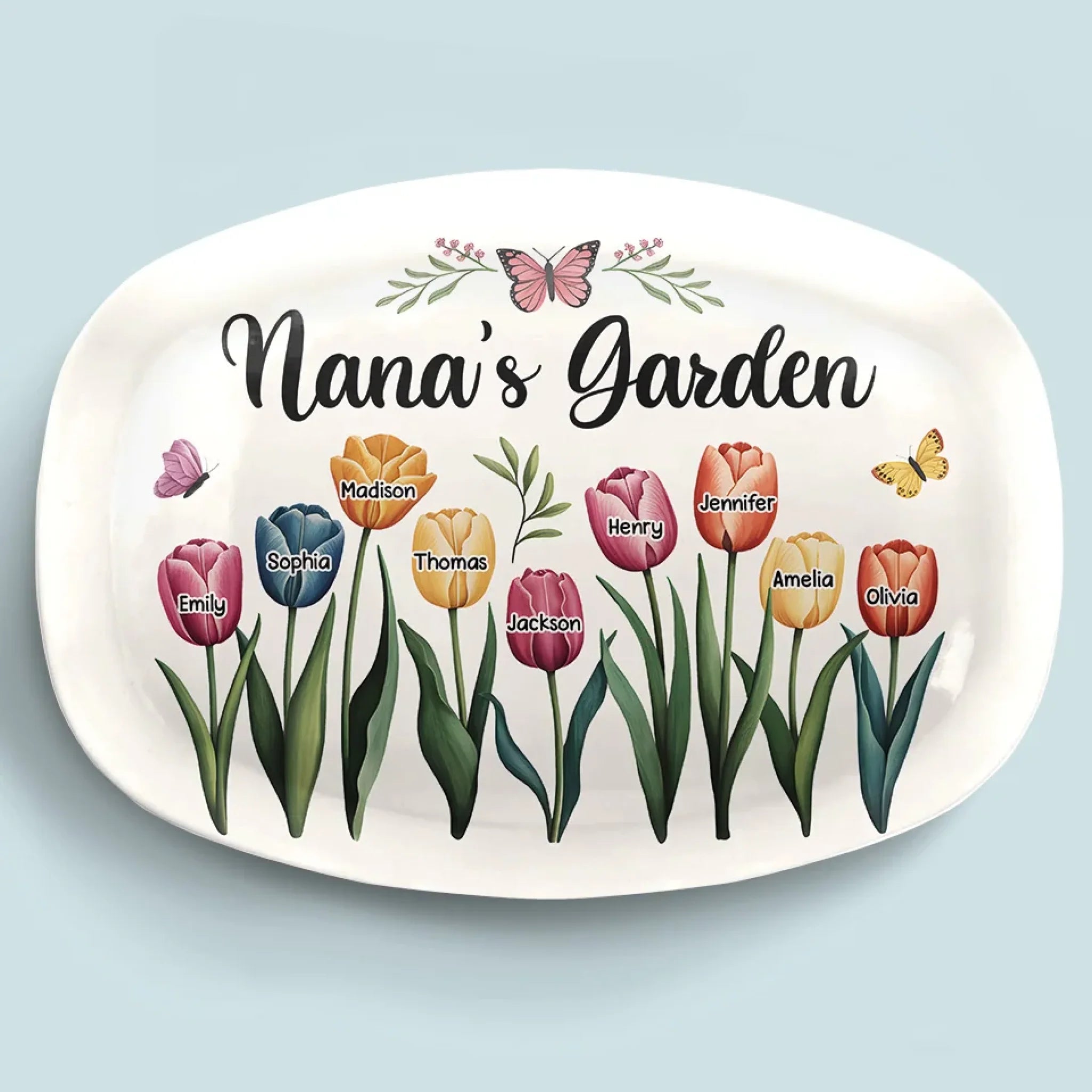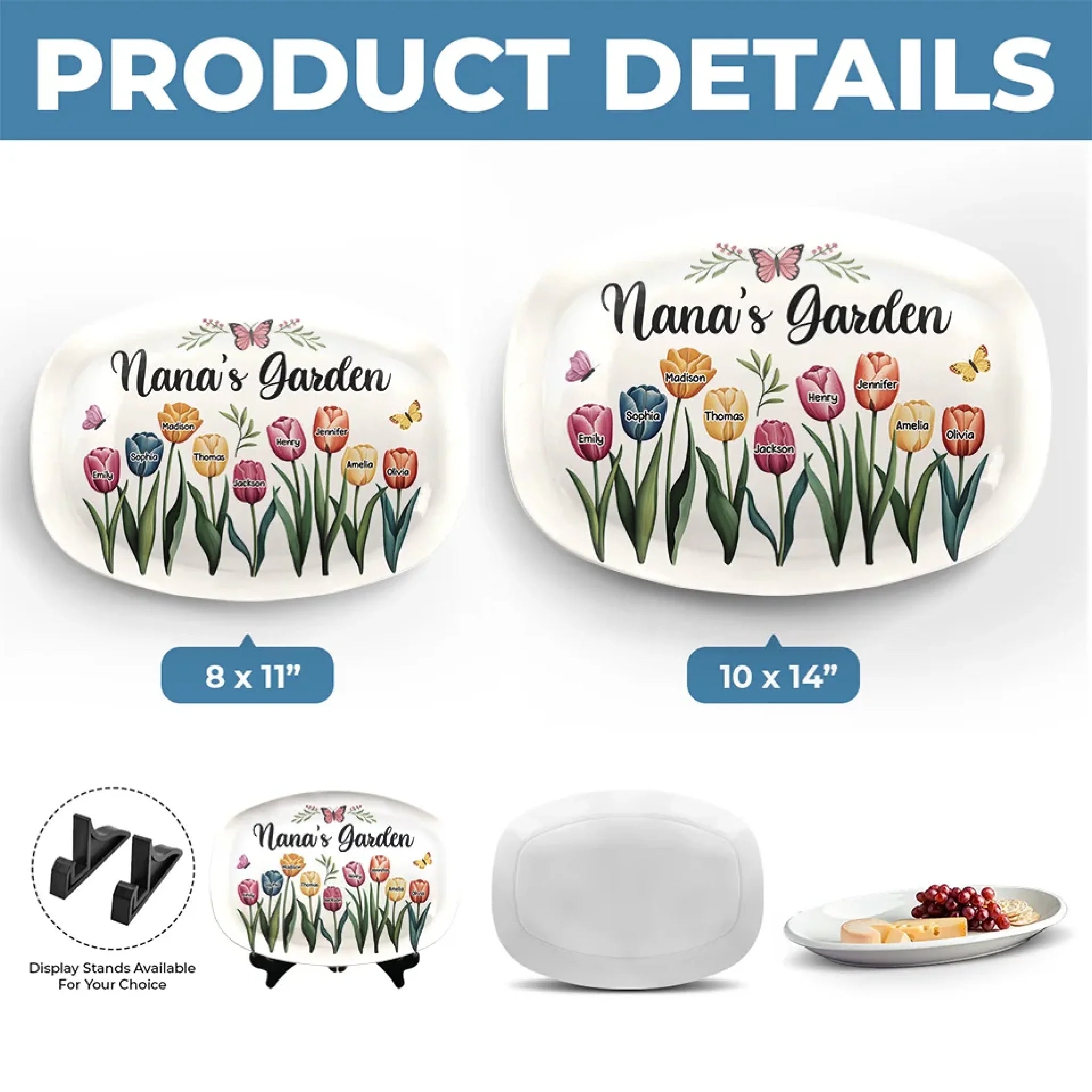 Grandma Makes Life Bloom With Love - Family Personalized Custom Platter - Gift For Mom, Grandma