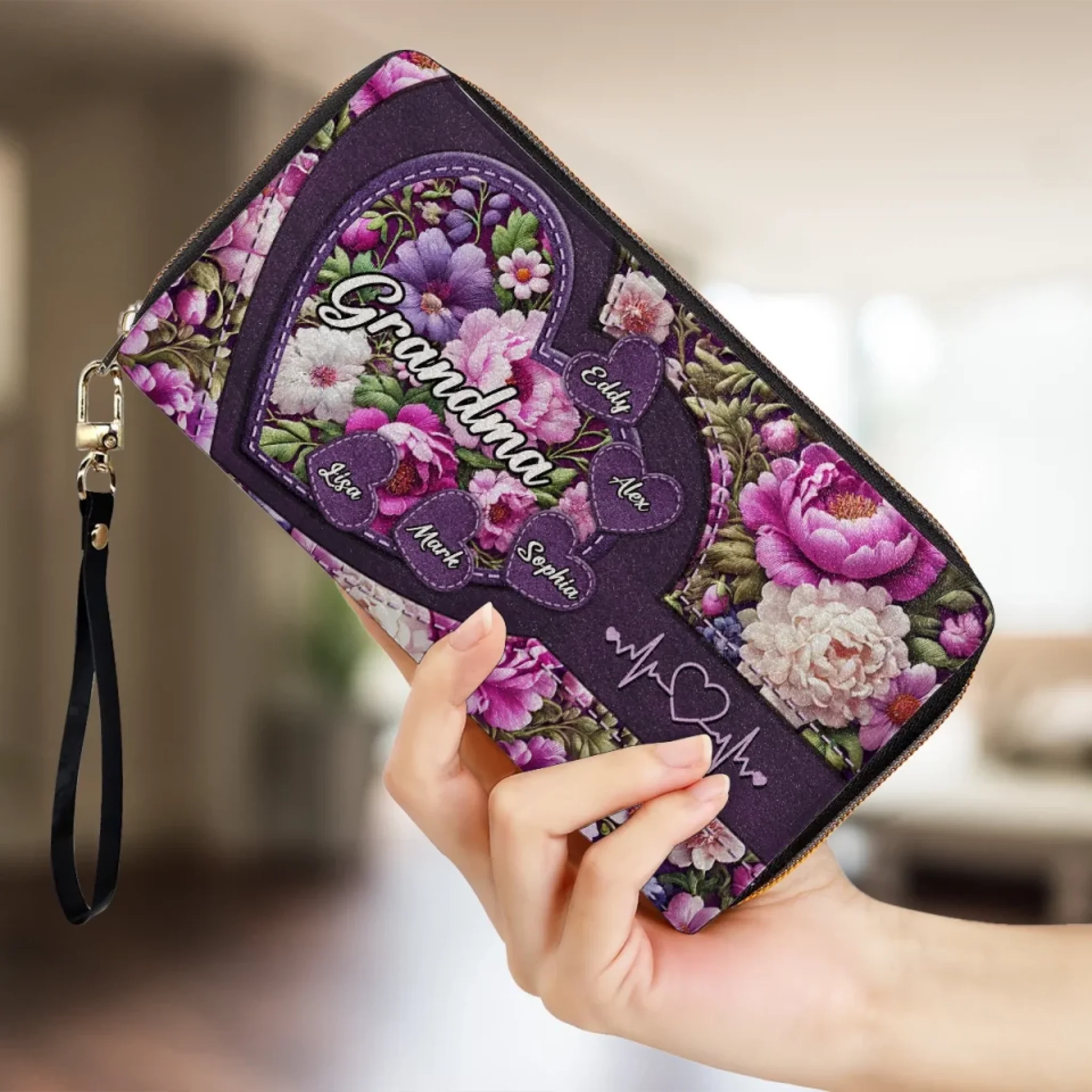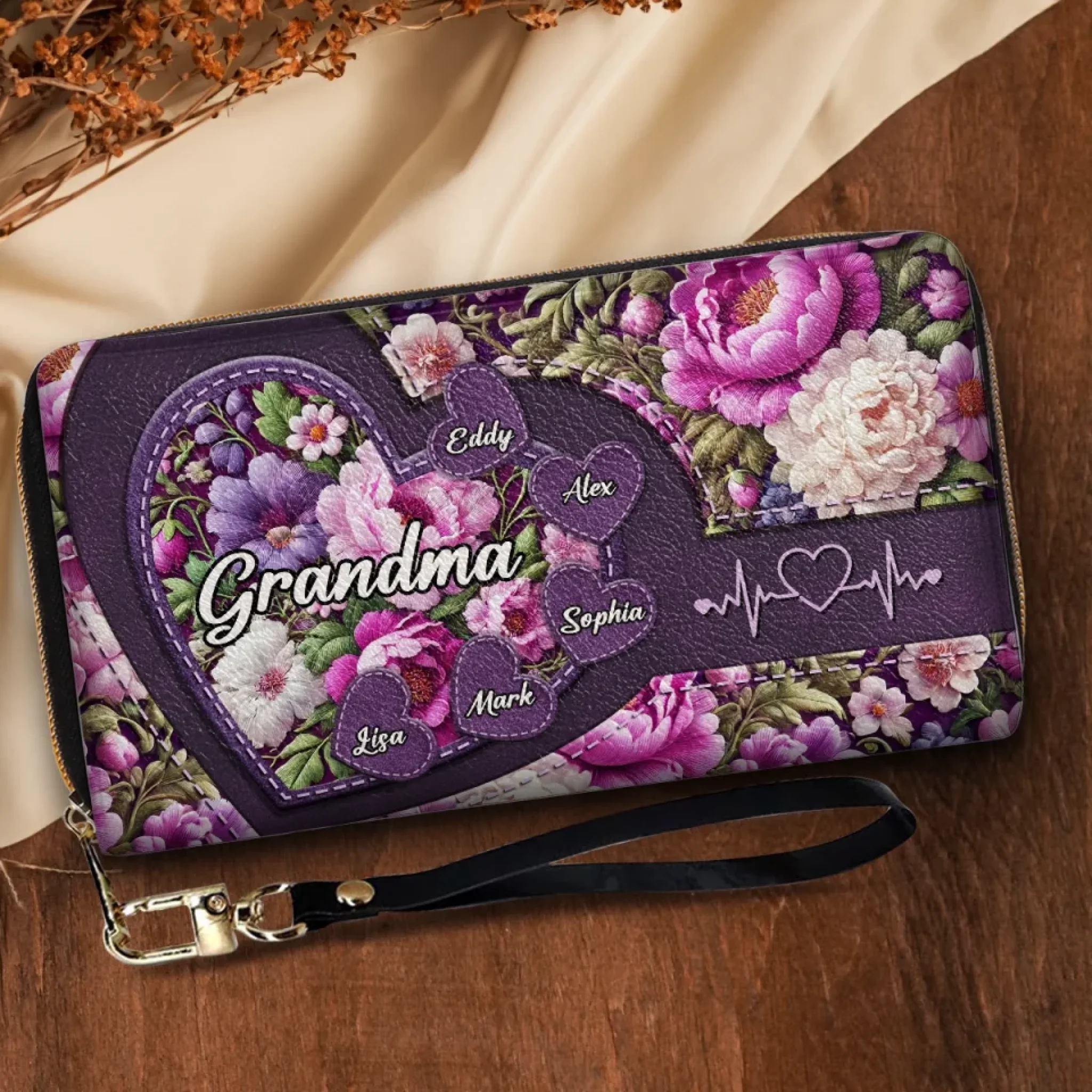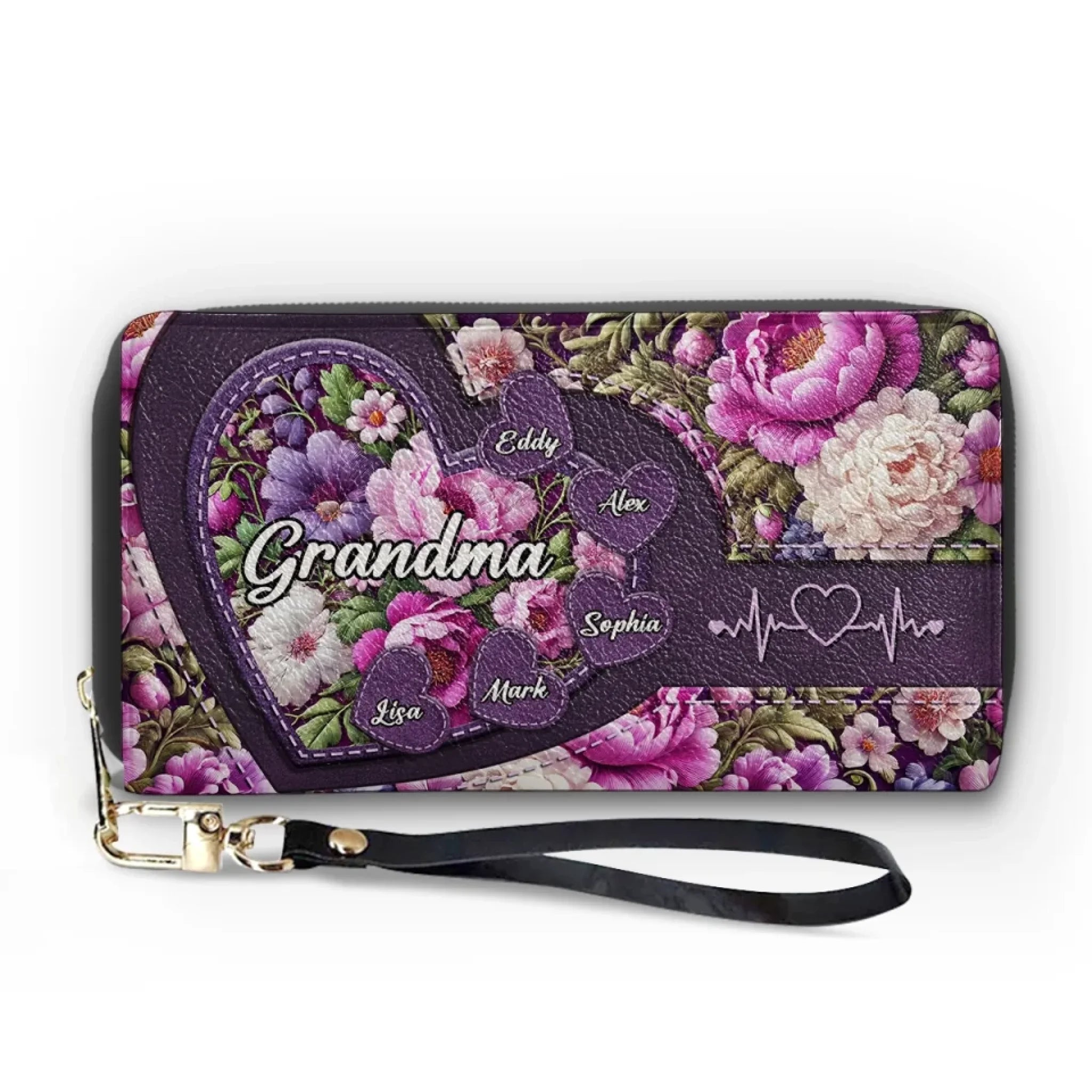 Grandma’s Heart, Where Love Always Blooms - Family Personalized Custom Leather Long Wallet - Mother's Day, Gift For Mom, Grandma