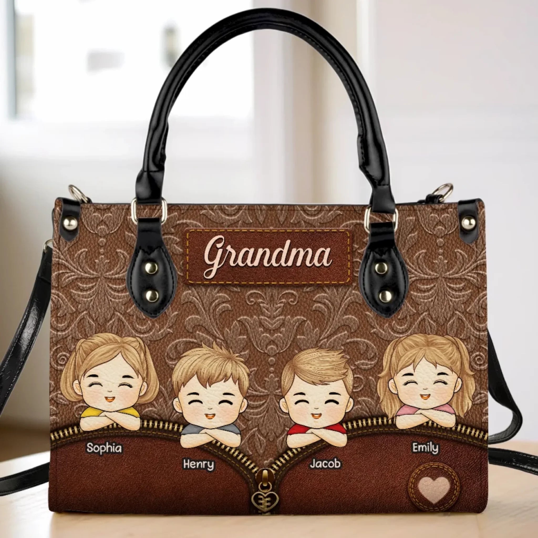 Grandma’s World In One Bag - Family Personalized Custom Leather Handbag - Mother's Day, Gift For Mom, Grandma
