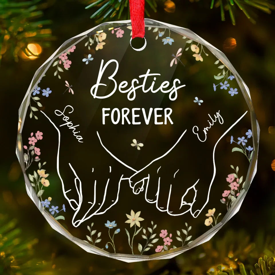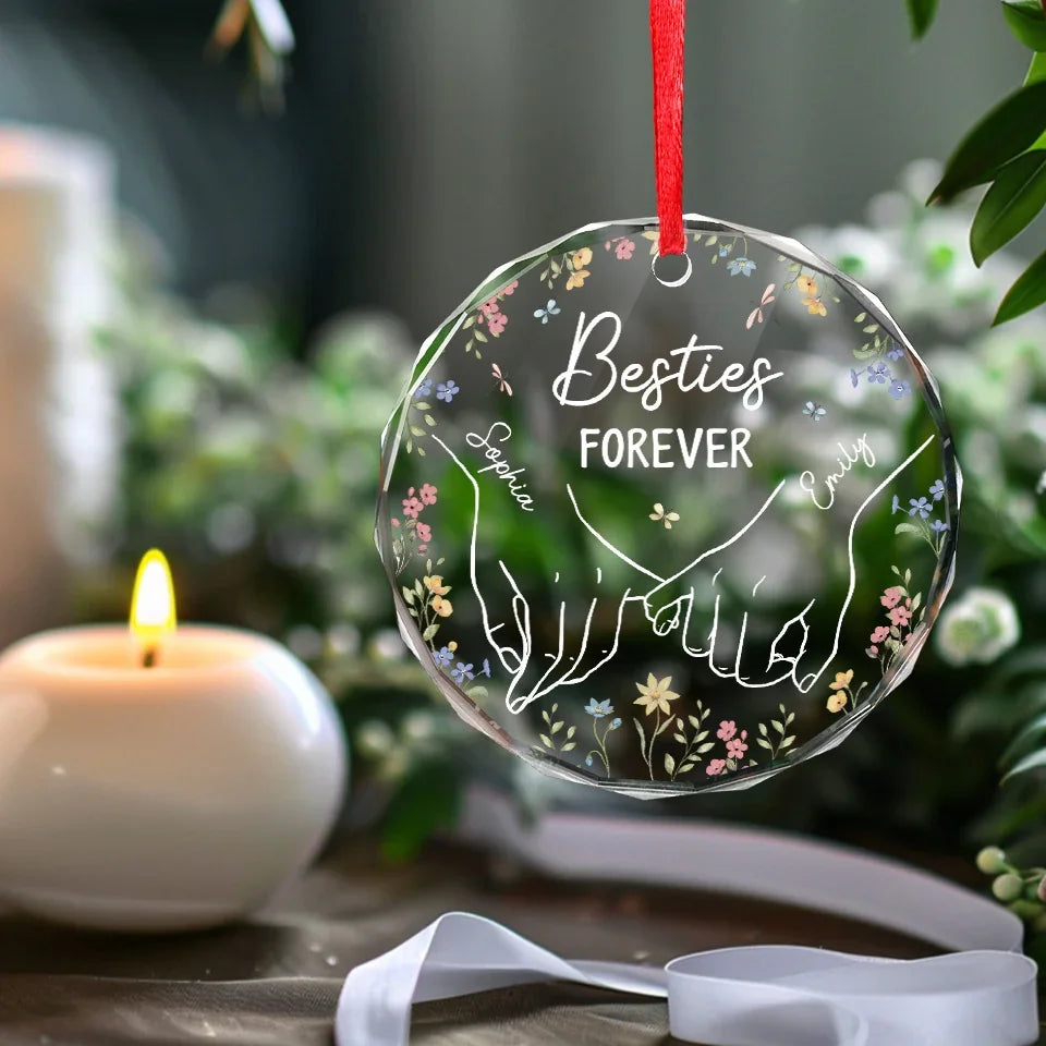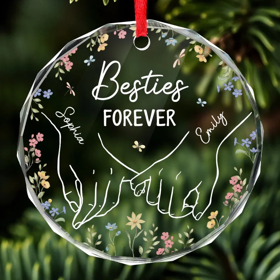Hand In Hand And Heart To Heart - Bestie Personalized Custom Circle Glass Ornament - Christmas Gift For Best Friends, BFF, Sisters
