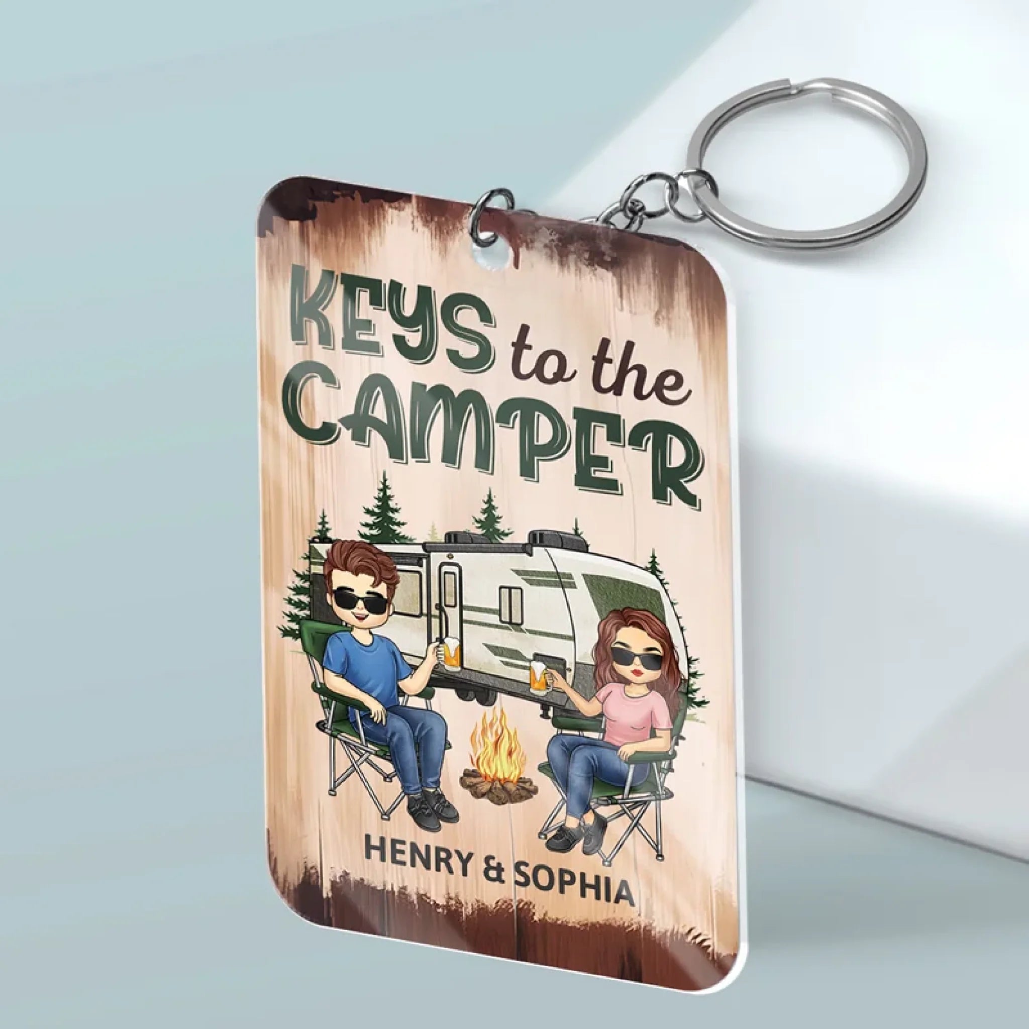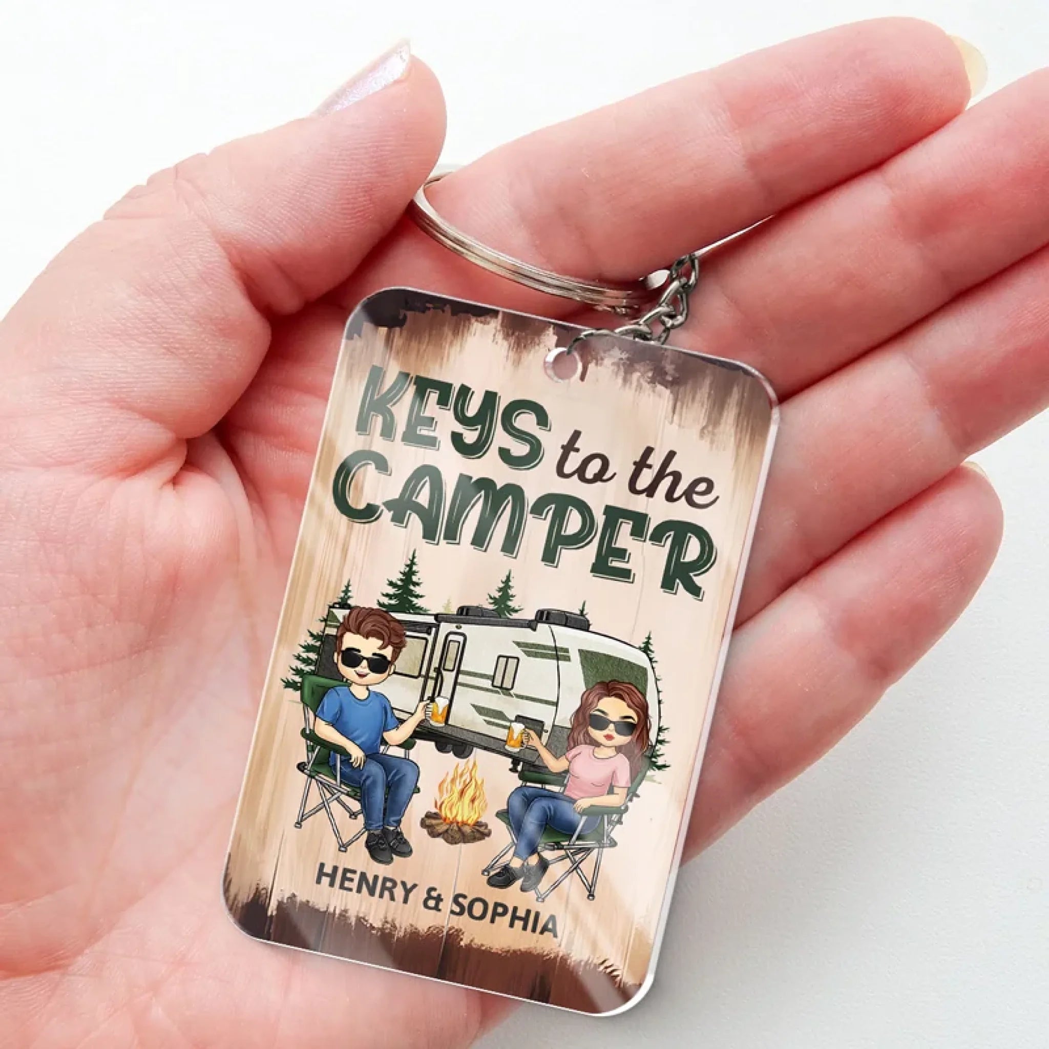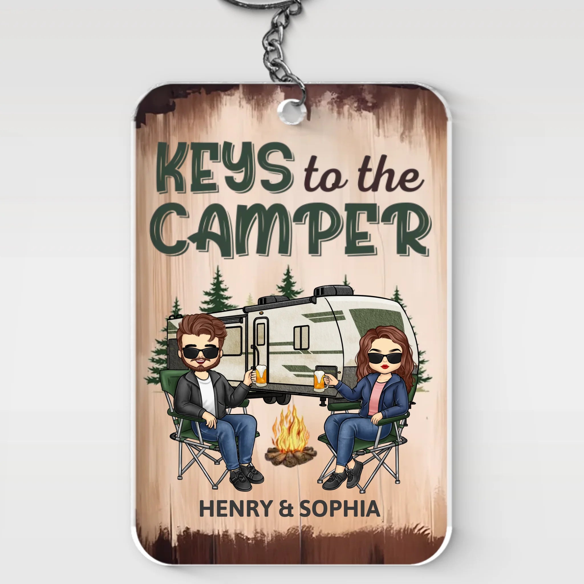 Happy Campers - Camping Personalized Custom Shaped Acrylic Keychain - Gift For Husband Wife, Anniversary, Camping Lovers