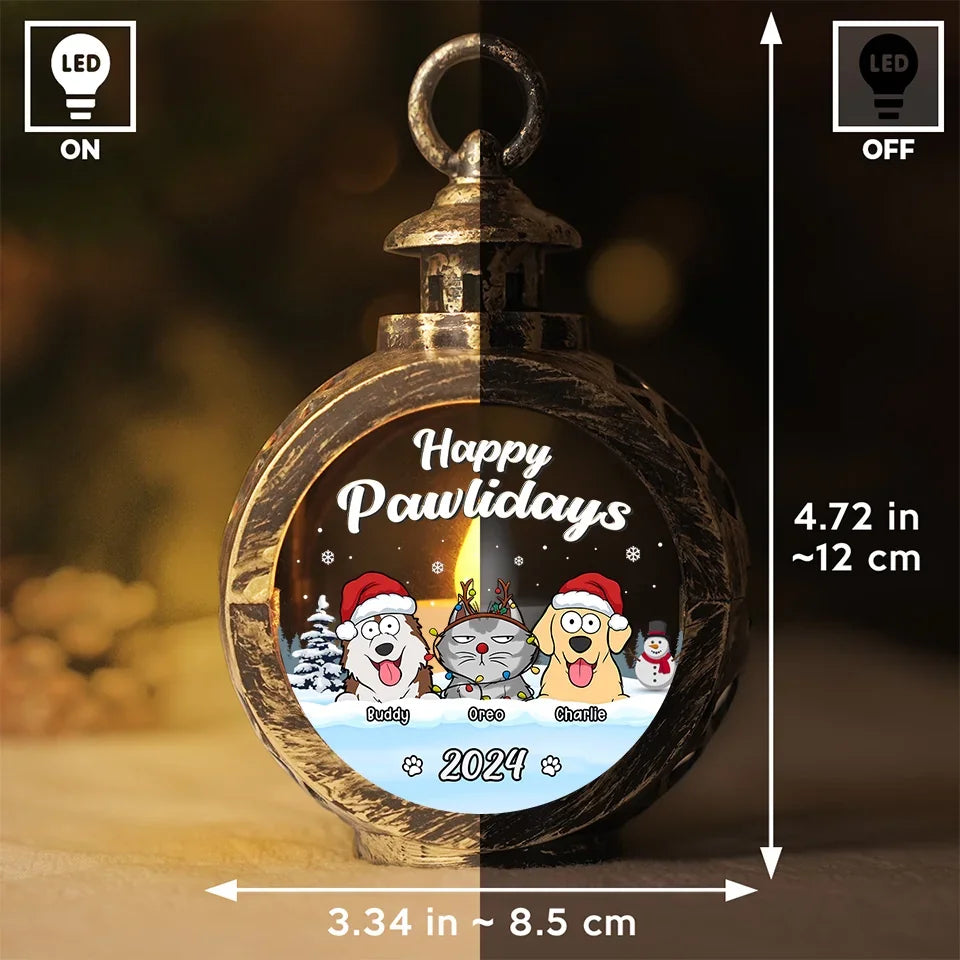 Happy Pawlidays - Dog & Cat Personalized Custom Candlelight Lantern Ornament - Christmas Gift For Pet Owners, Pet Lovers