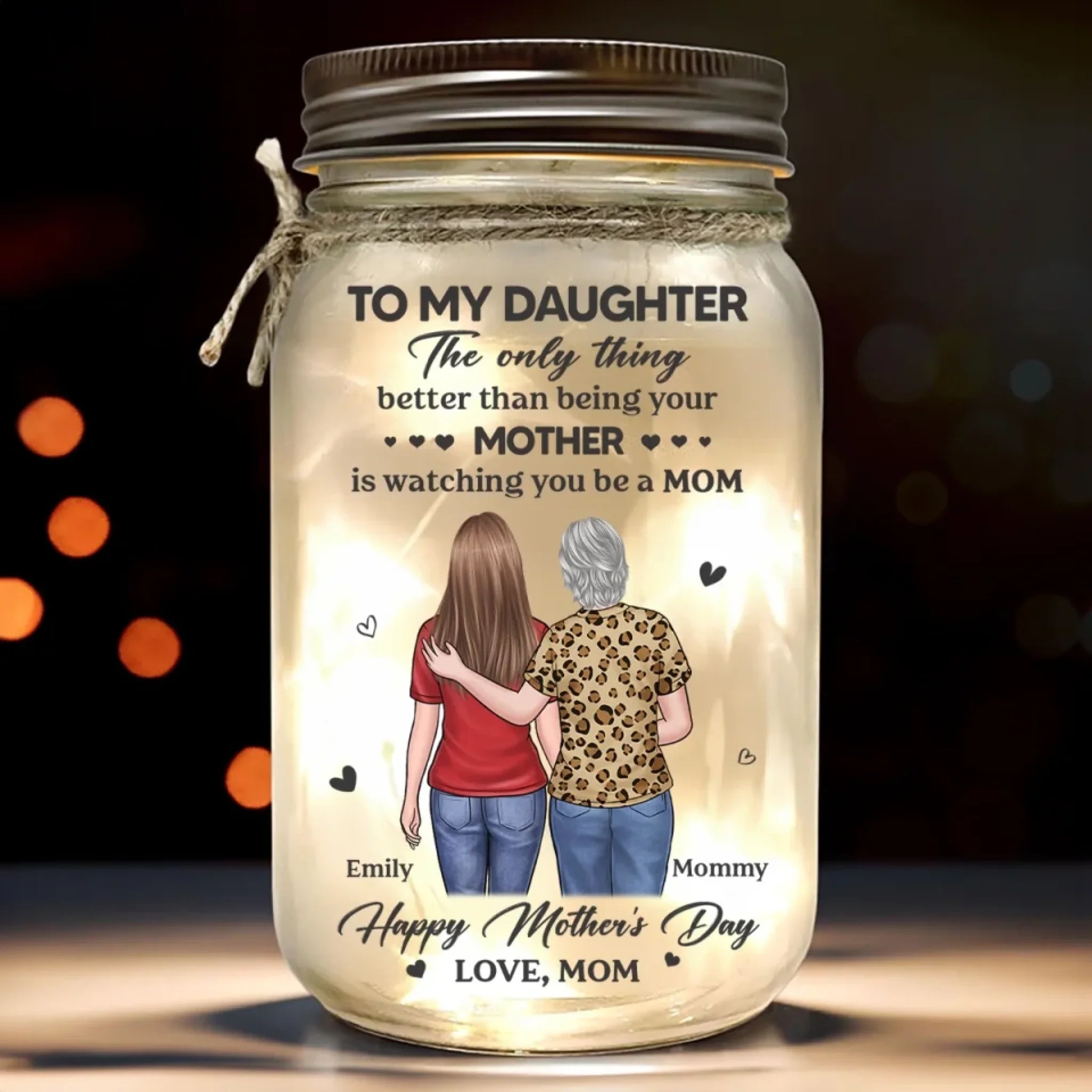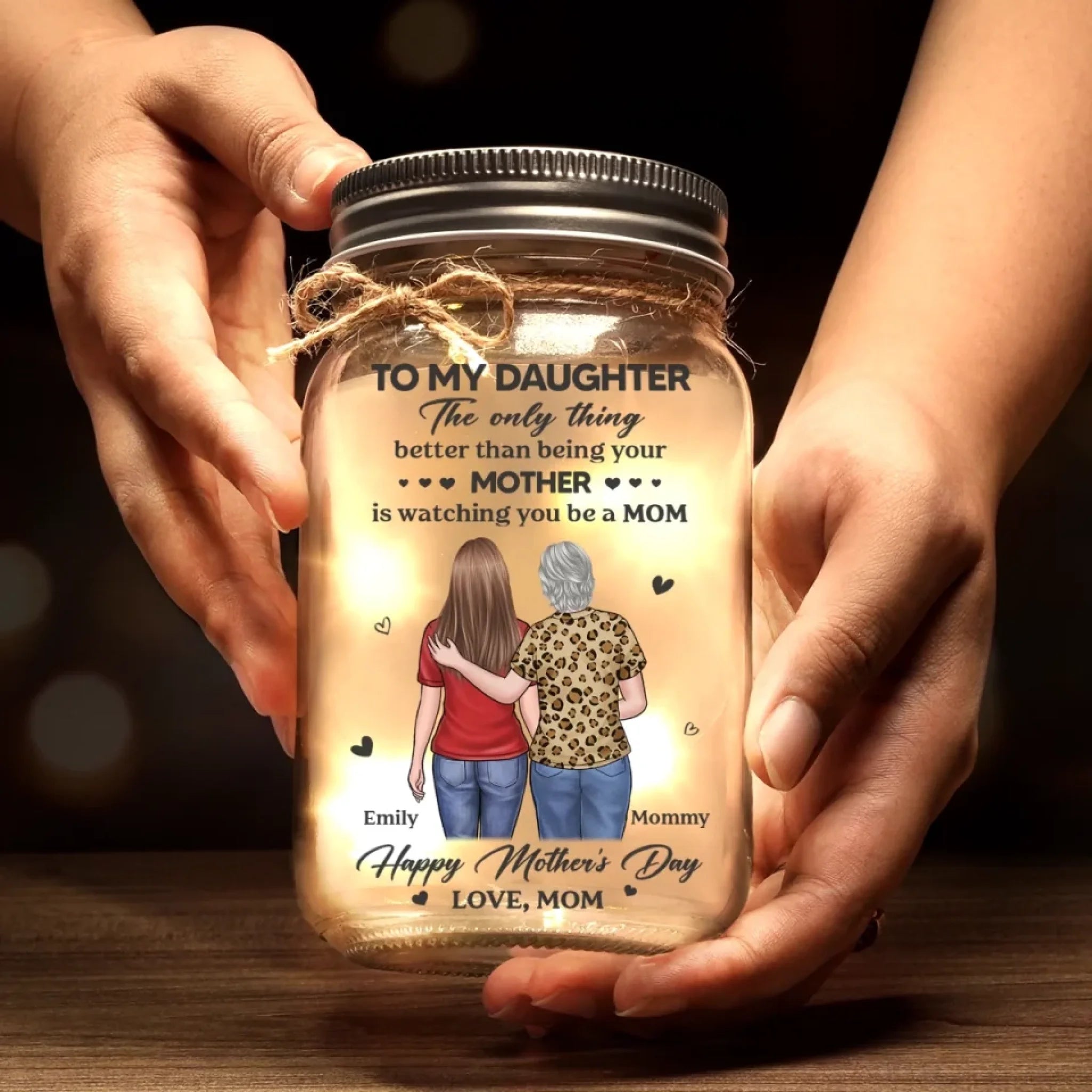 Her Hugs Fix Everything - Family Personalized Custom Mason Jar Light - Mother's Day, Gift For Mom, Daughter