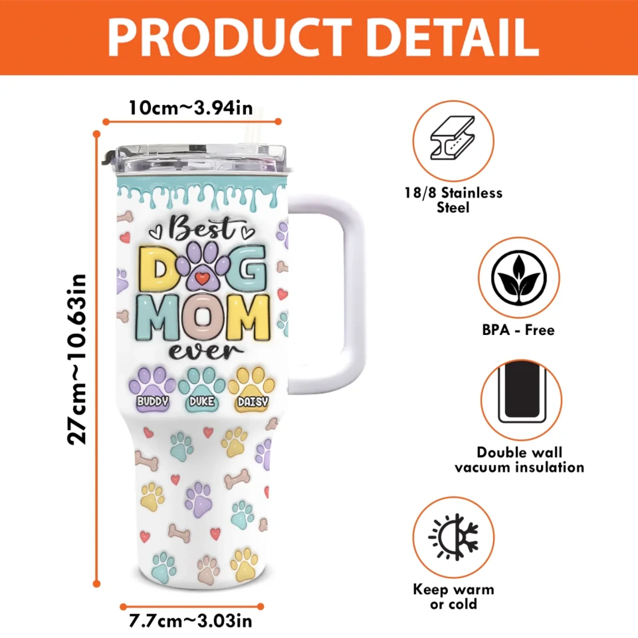 Just A Dog Mom Doing Her Best - Dog Personalized Custom 3D Inflated Effect Printed 40 Oz Stainless Steel Tumbler With Handle - Gift For Pet Owners, Pet Lovers