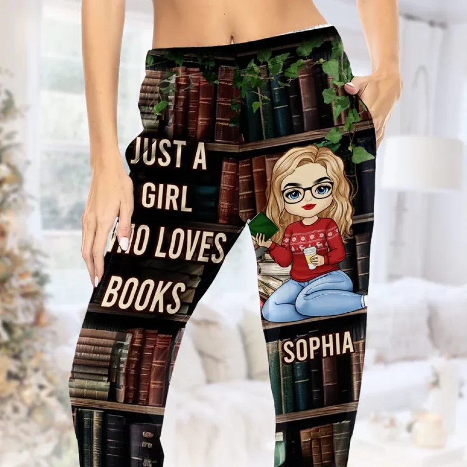 Just A Girl Who Loves Books - Personalized Custom Pajama Pants - Christmas Gift For Book Lovers