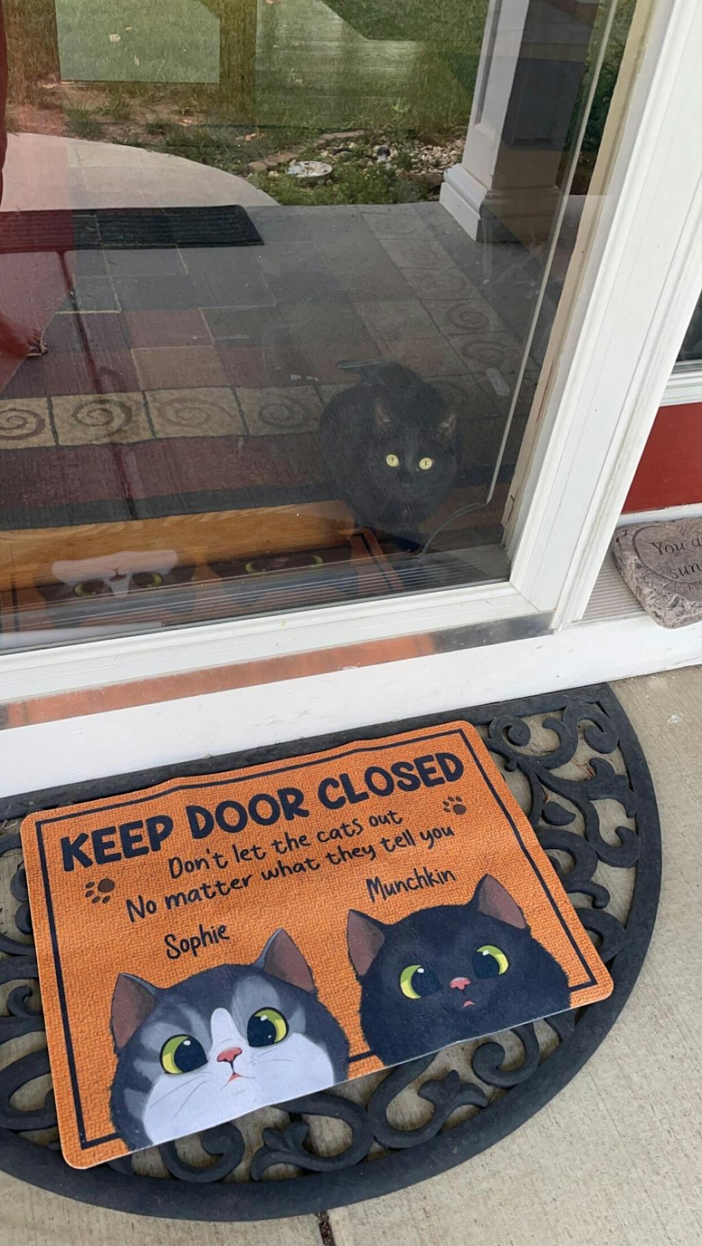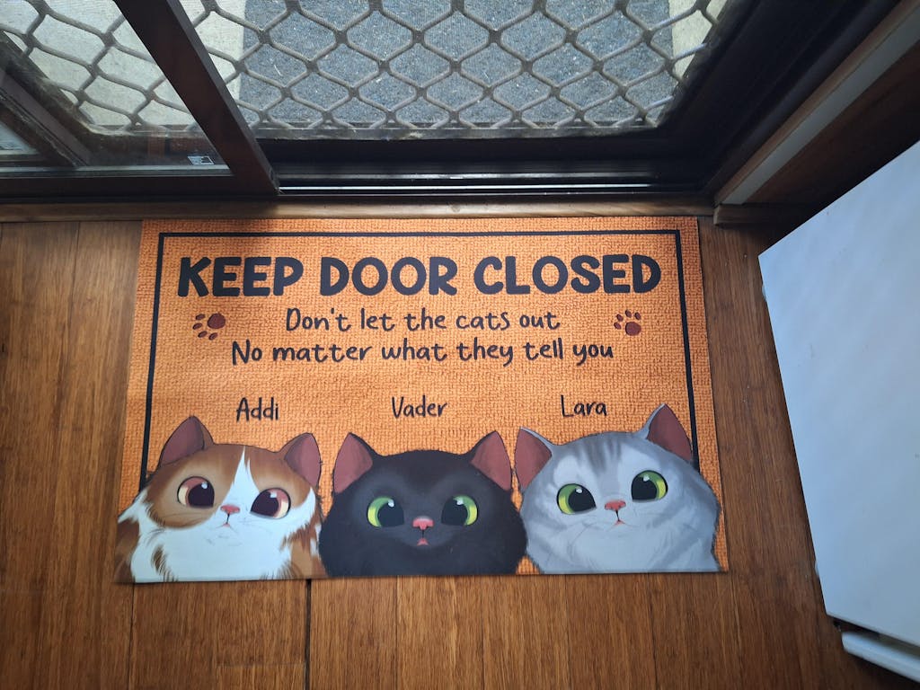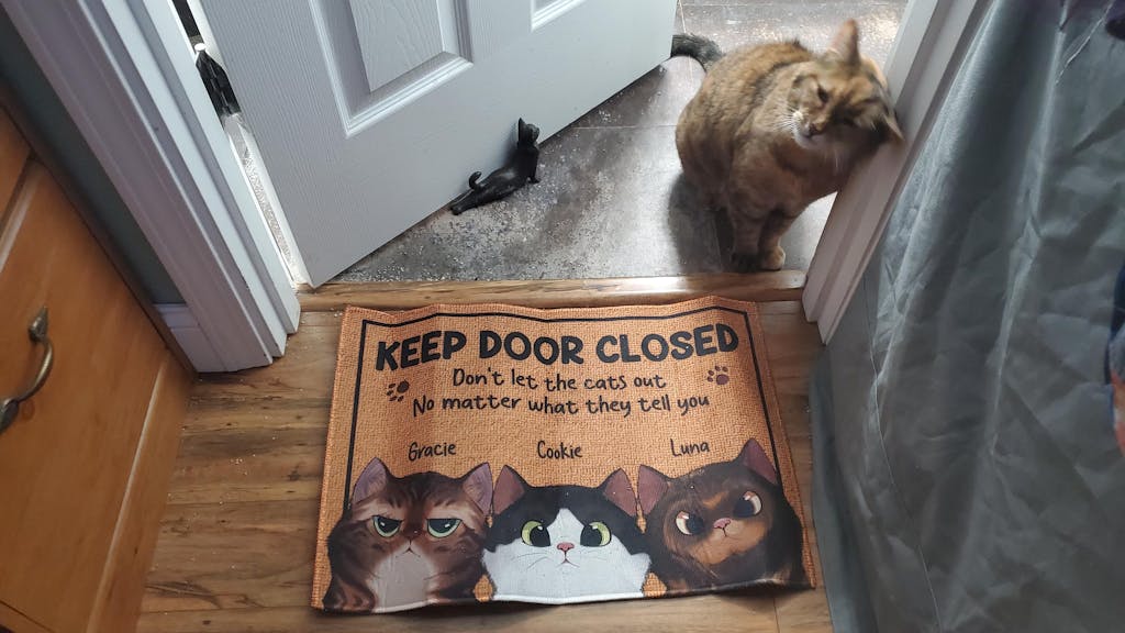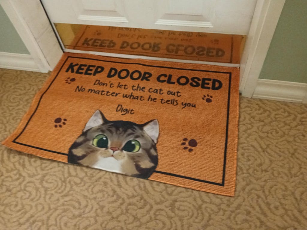 Message: "Keep door closed. Don't let the cats out no matter what they tell you."