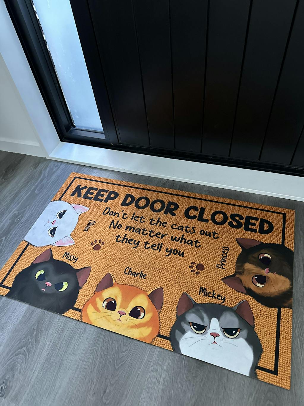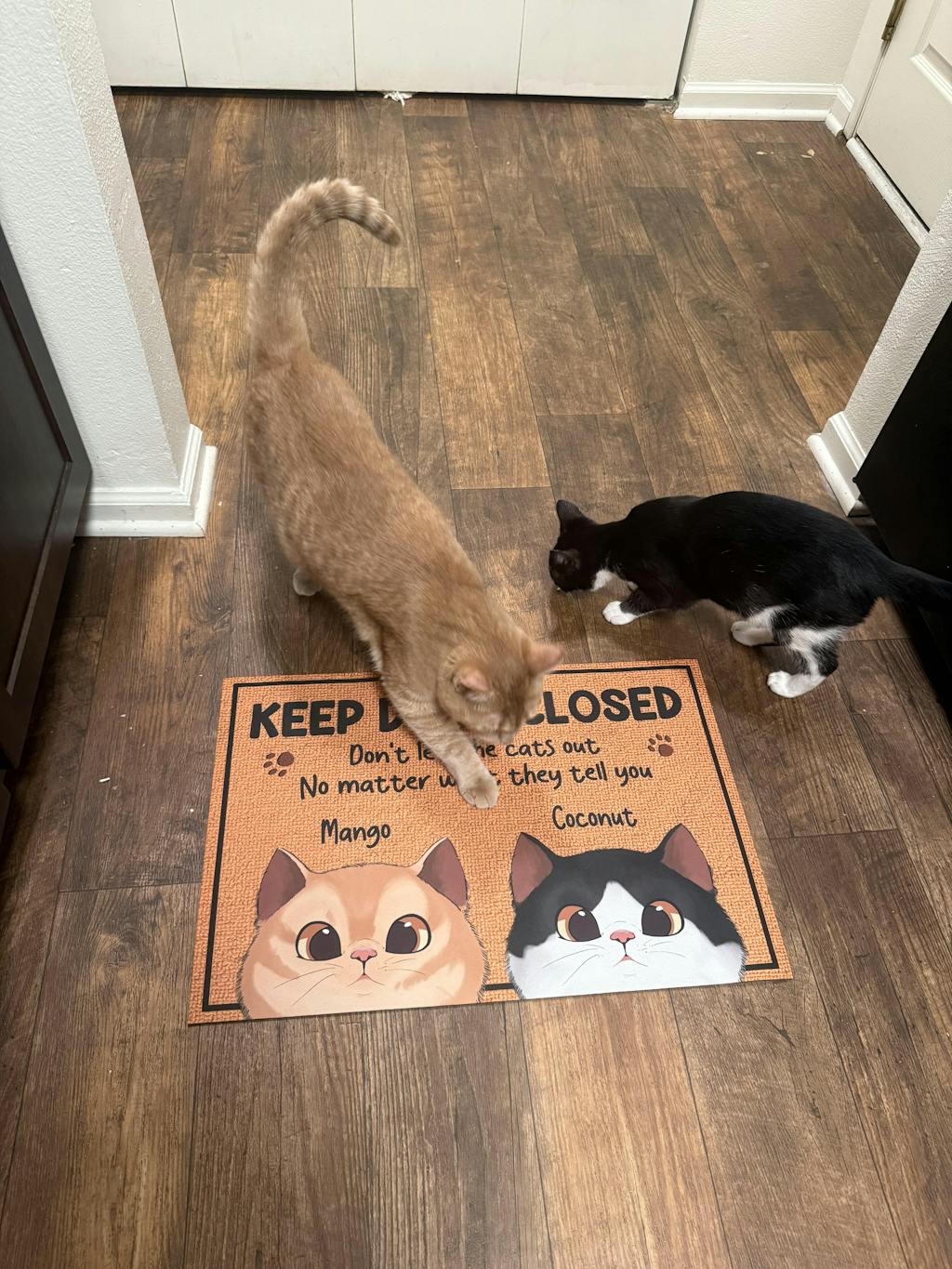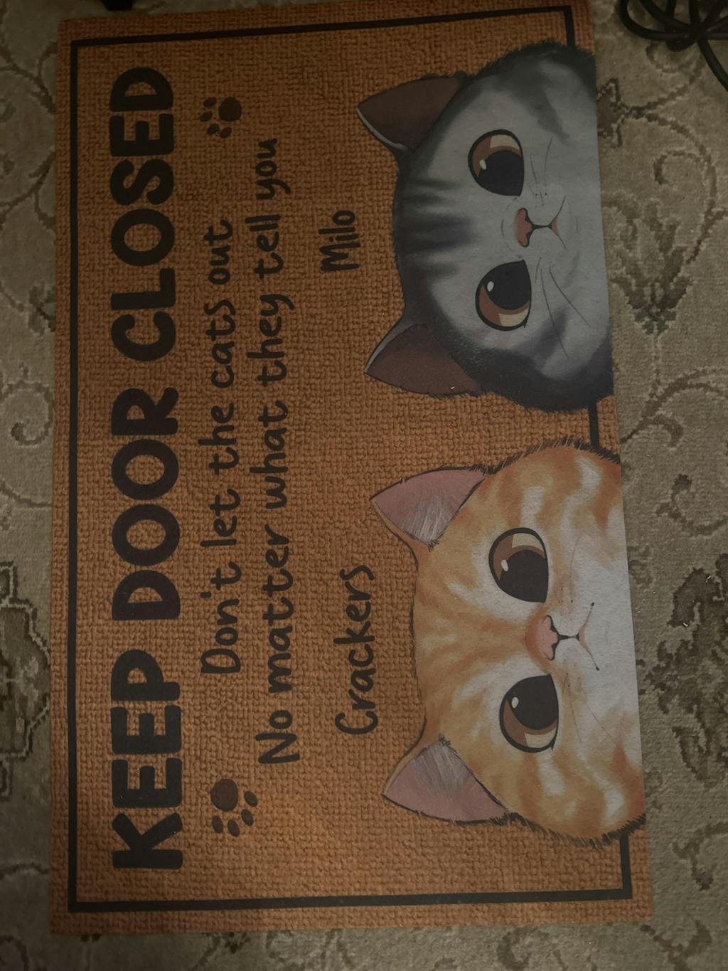 Message: "Keep door closed. Don't let the cats out no matter what they tell you."