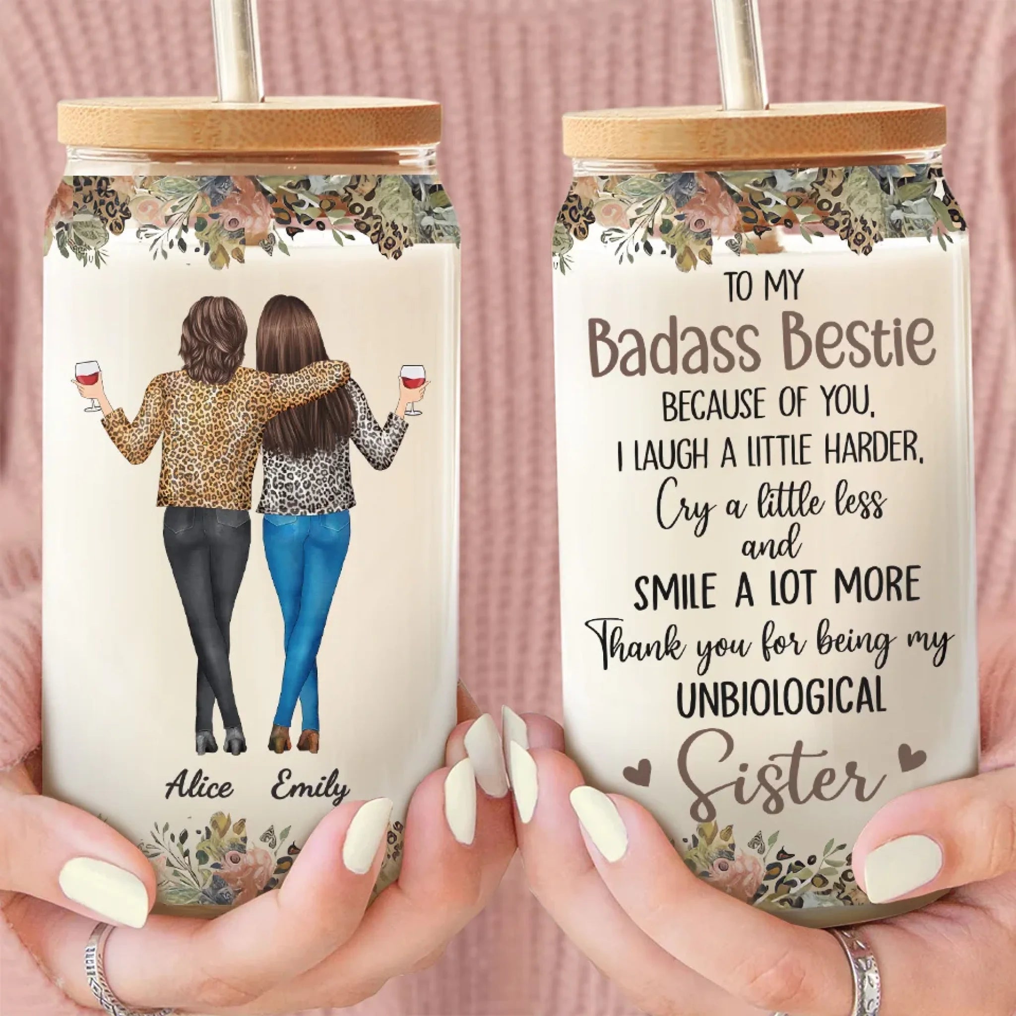 Laughter Shared, Memories Made - Bestie Personalized Custom Glass Cup, Iced Coffee Cup - Gift For Best Friends, BFF, Sister