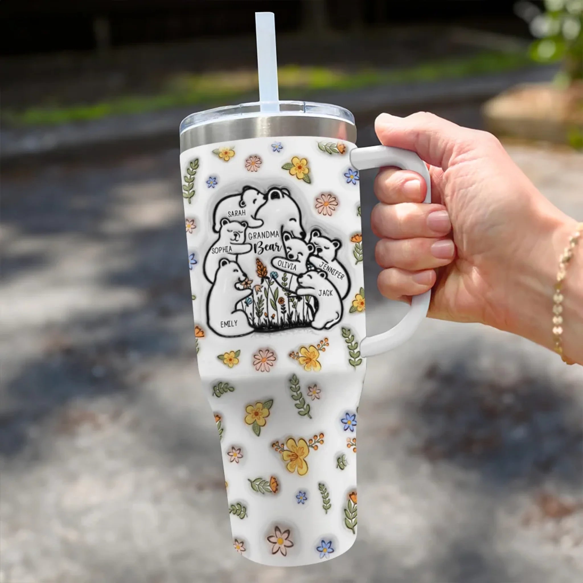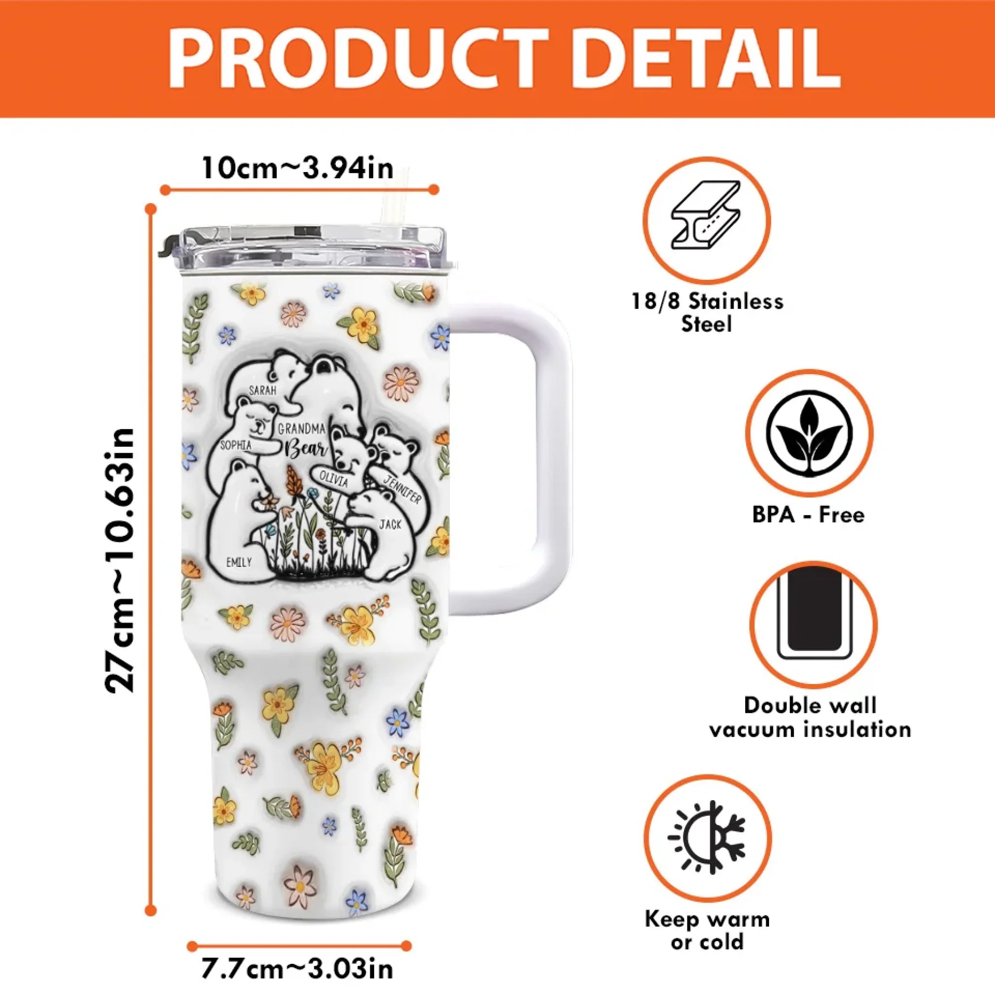 Love Grows Deeper With The Joy Of Grandkids - Family Personalized Custom 3D Inflated Effect Printed 40 Oz Stainless Steel Tumbler With Handle - Gift For Mom, Grandma
