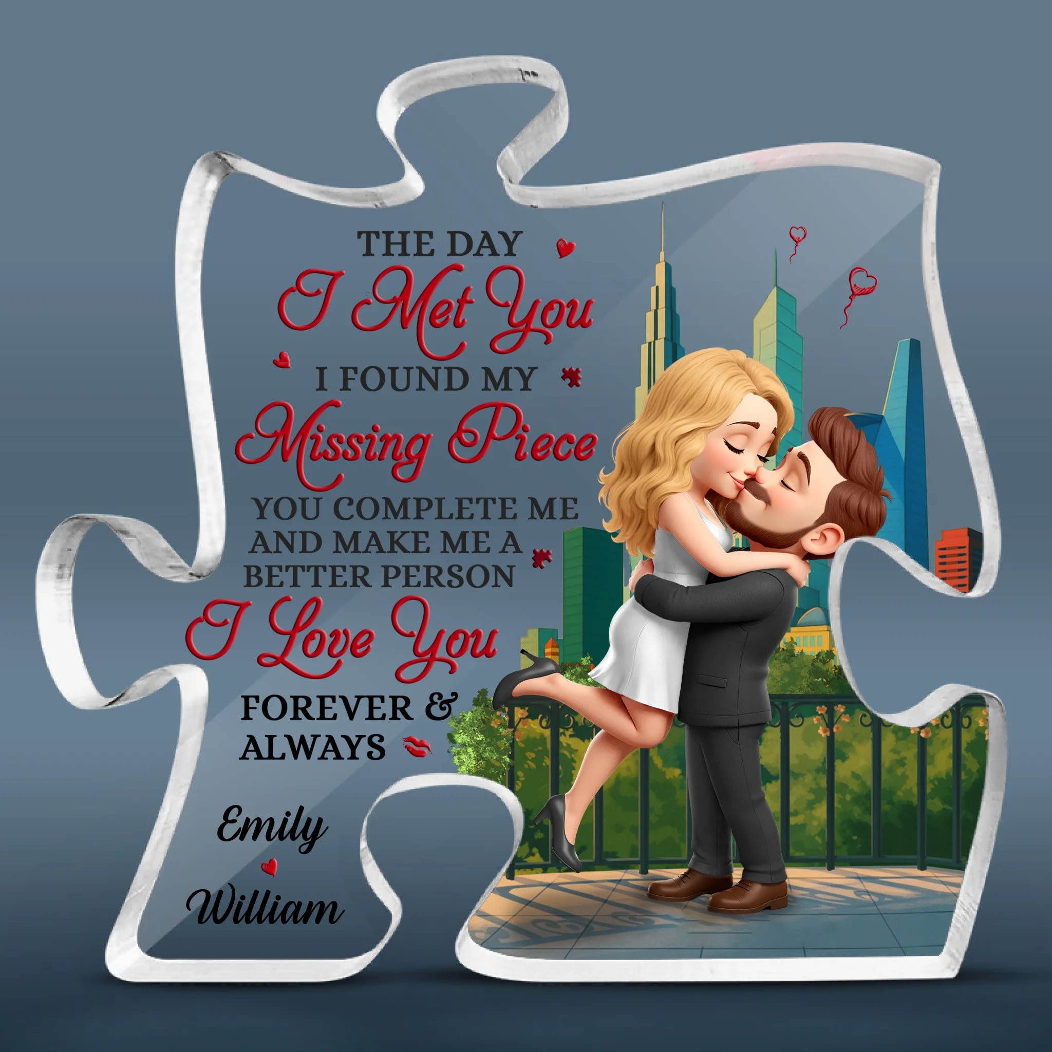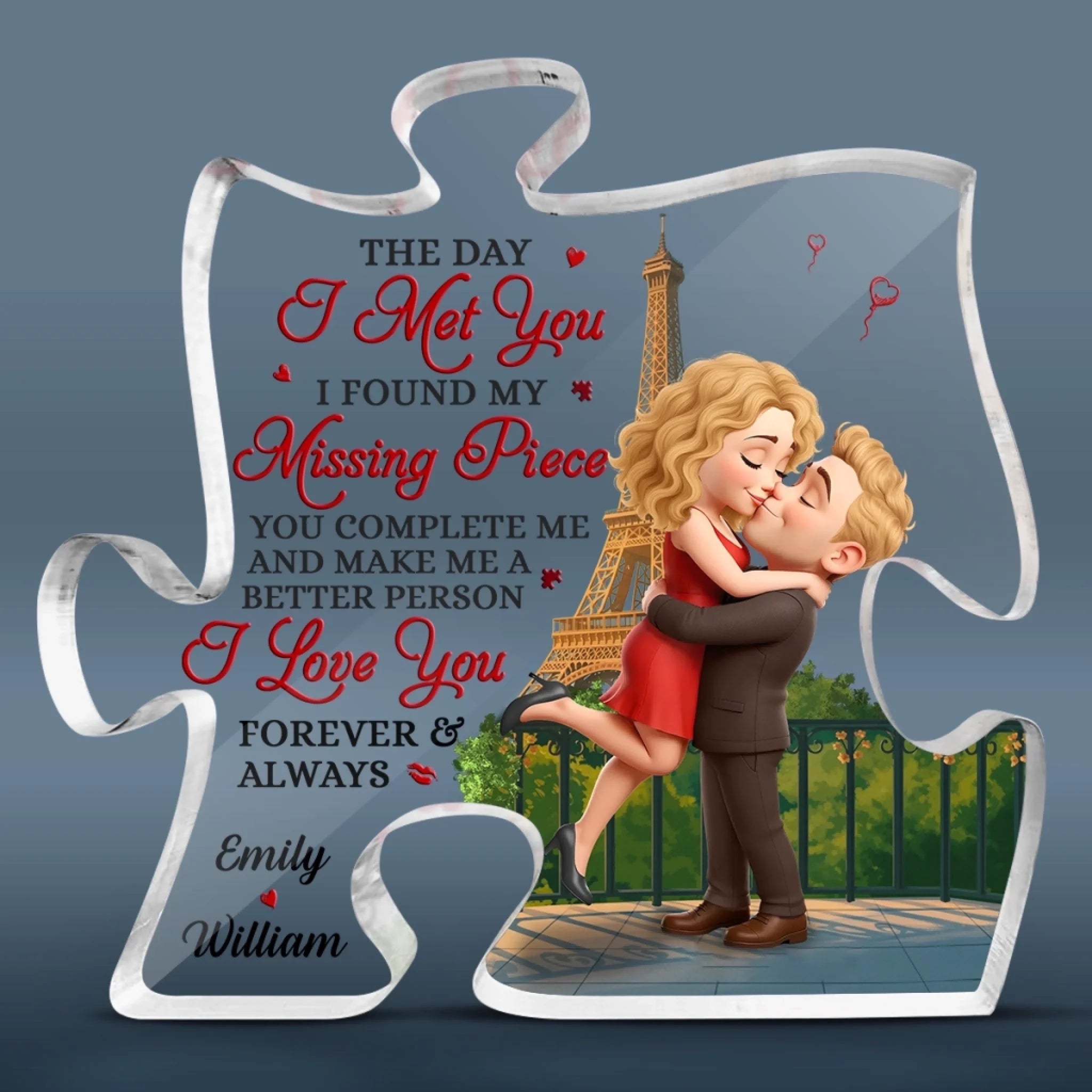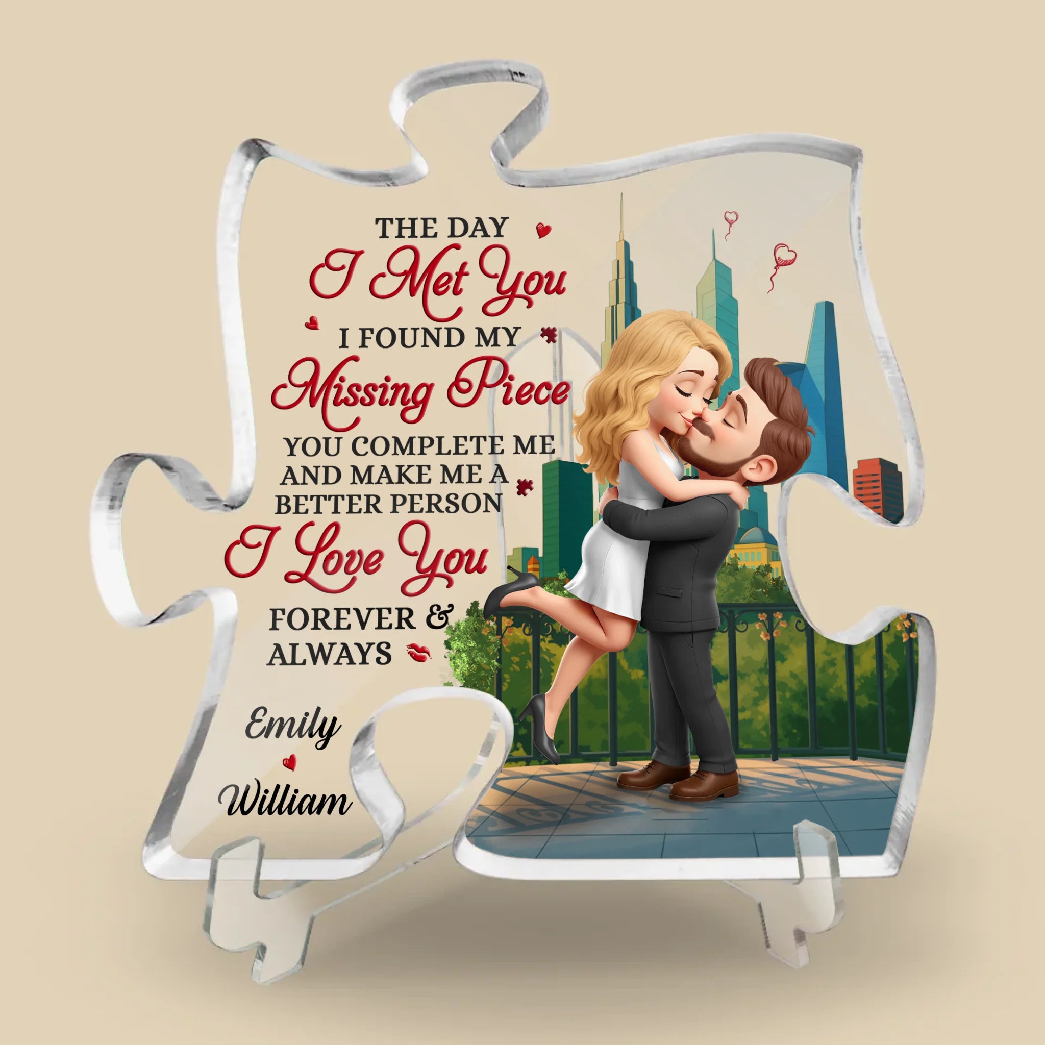 Love Since Day One - Couple Personalized Custom Puzzle Shaped Acrylic Plaque - Gift For Husband Wife, Anniversary