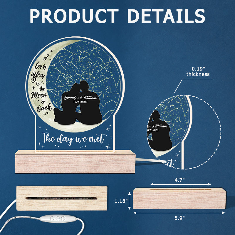 Love You To The Moon And Back - Couple Personalized Custom Shaped 3D LED Light - Gift For Husband Wife, Anniversary