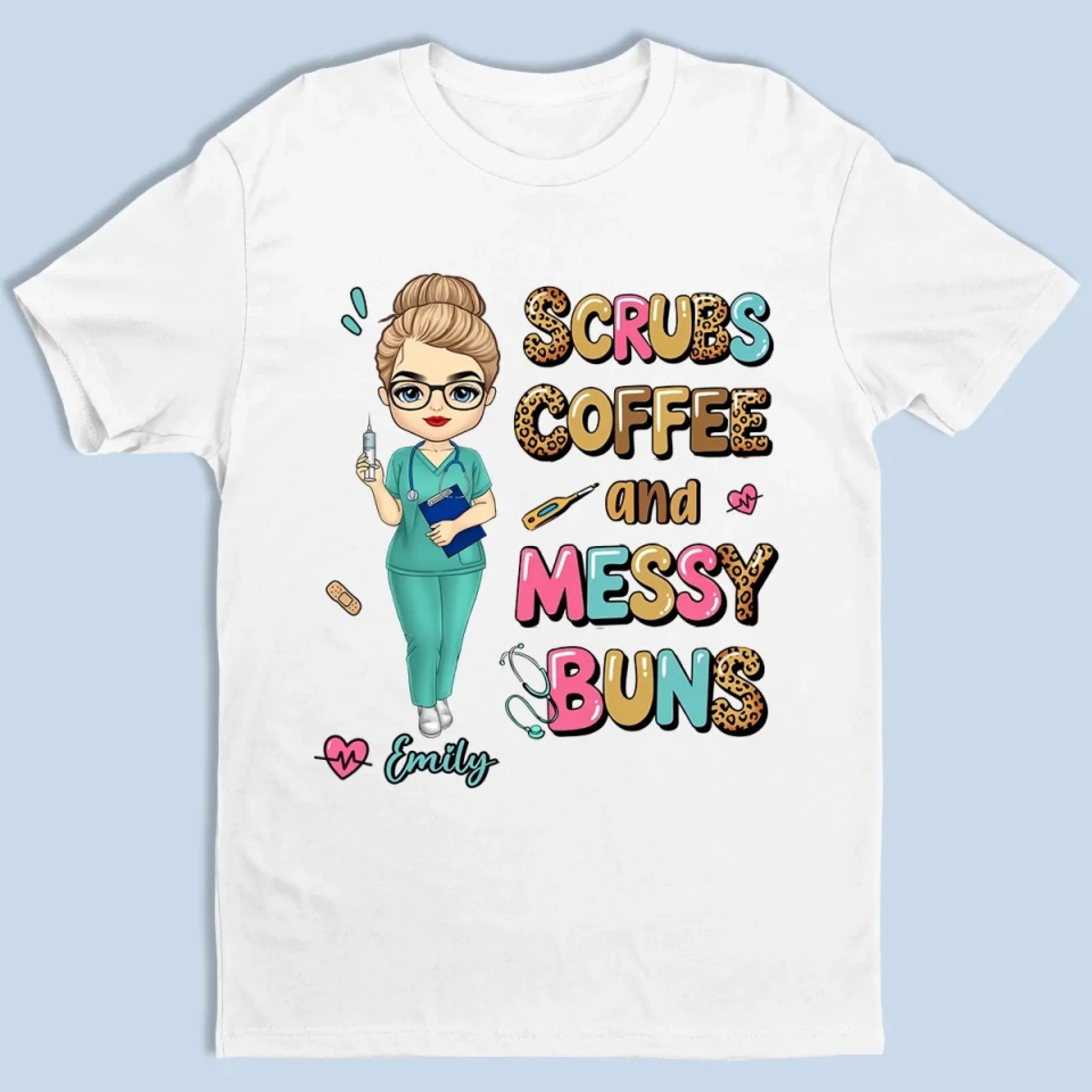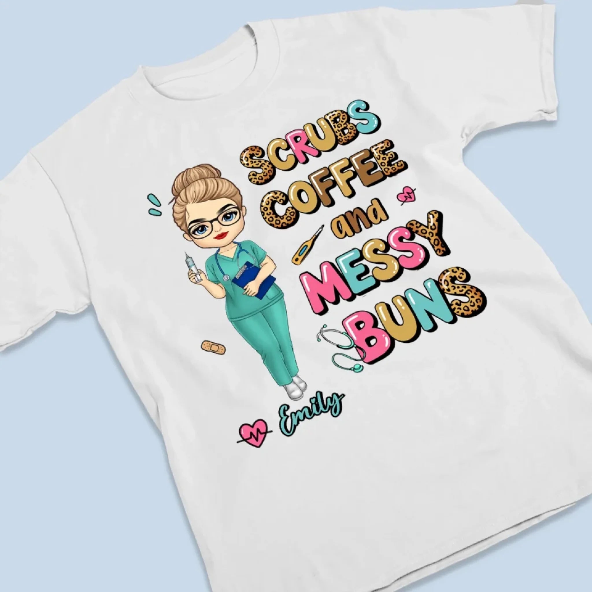 Messy Buns, Scrubs, And Endless Energy - Nurse Personalized Custom Unisex T-shirt, Premium T-shirt, Hoodie - Appreciation, Thank You Gift, Nurse Life, Doctor Life