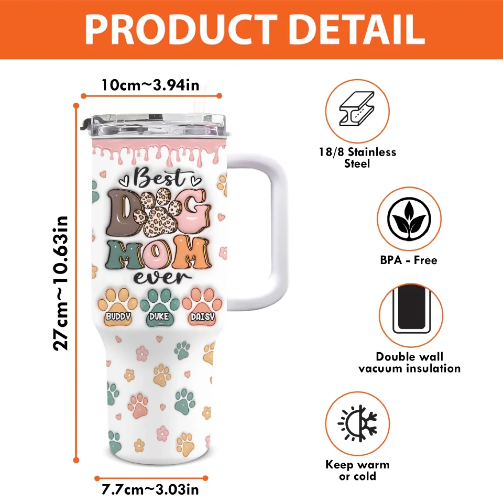 My Kids Have Paws - Dog Personalized Custom 3D Inflated Effect Printed 40 Oz Stainless Steel Tumbler With Handle - Gift For Pet Owners, Pet Lovers