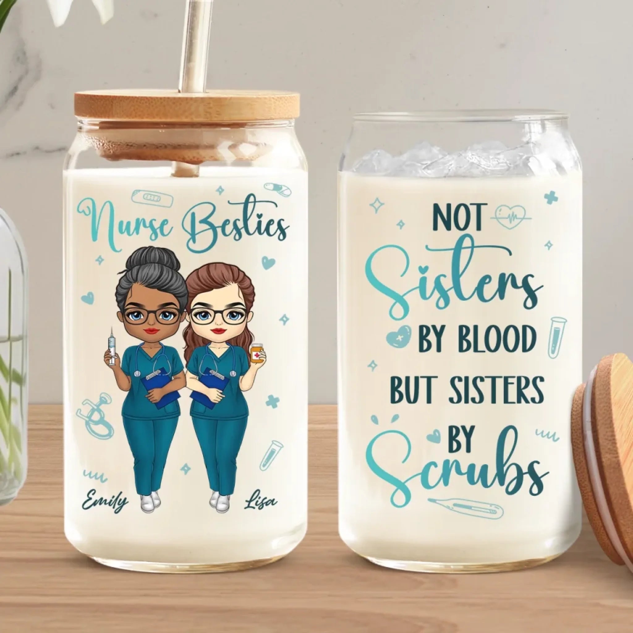 Not Just Coworkers, Scrub Soulmates - Nurse Personalized Custom Glass Cup, Iced Coffee Cup - Appreciation, Thank You Gift, Nurse Life, Doctor Life