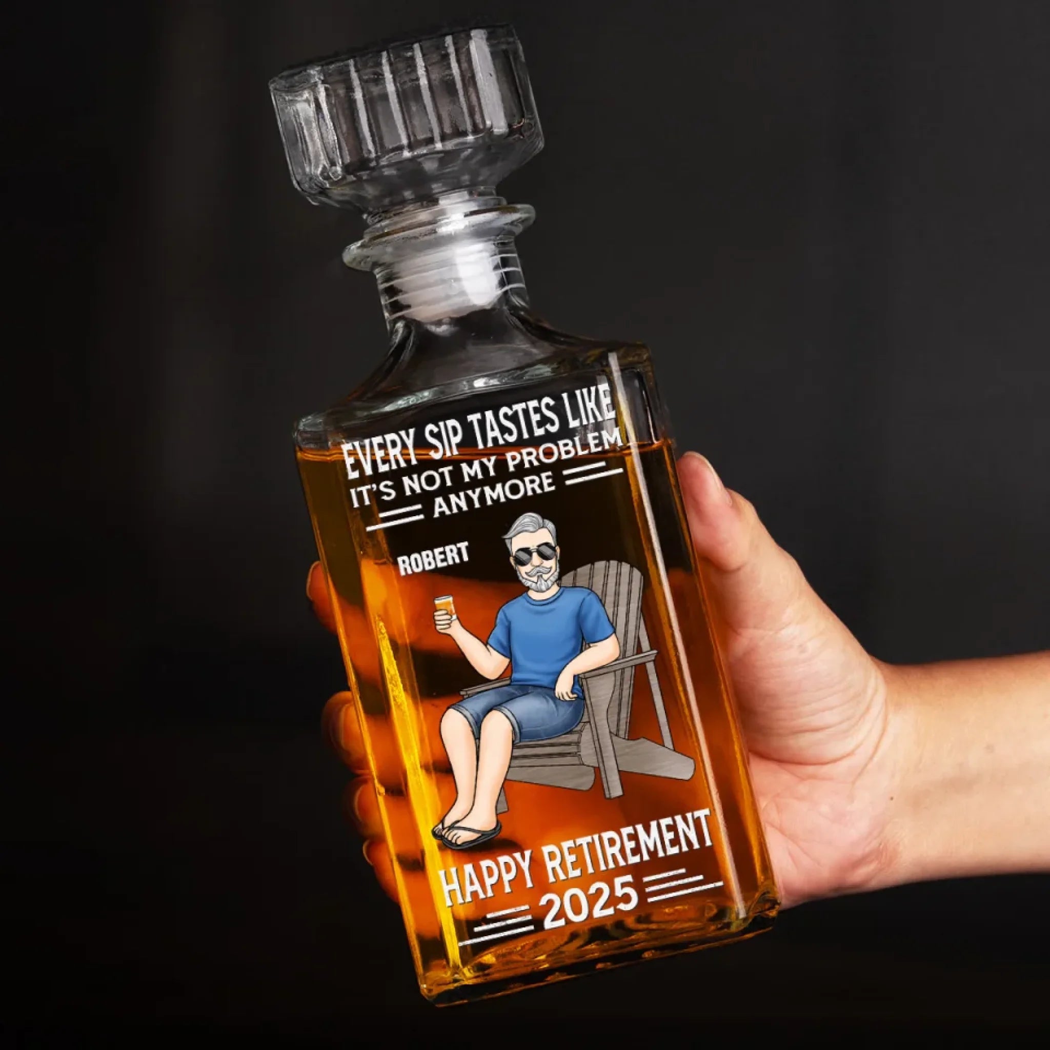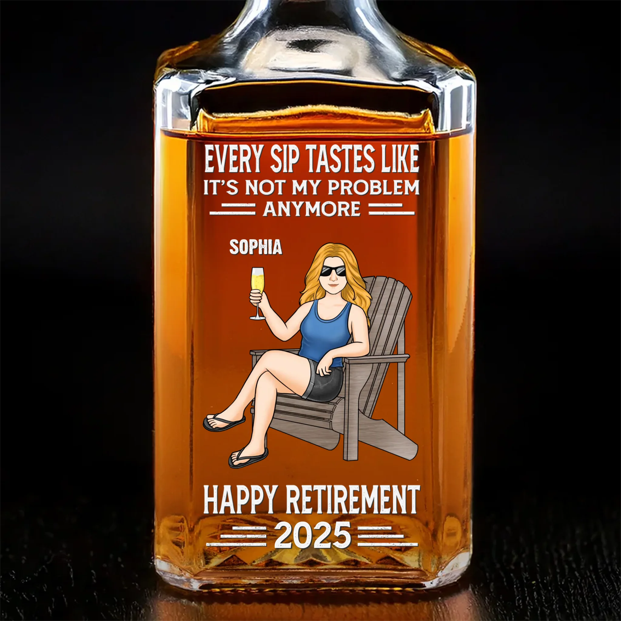 Off The Clock, On The Beach - Personalized Custom Glass Whiskey Bottle - Appreciation, Retirement Gift For Yourself, Best Friends, Siblings, Family Members, Coworkers