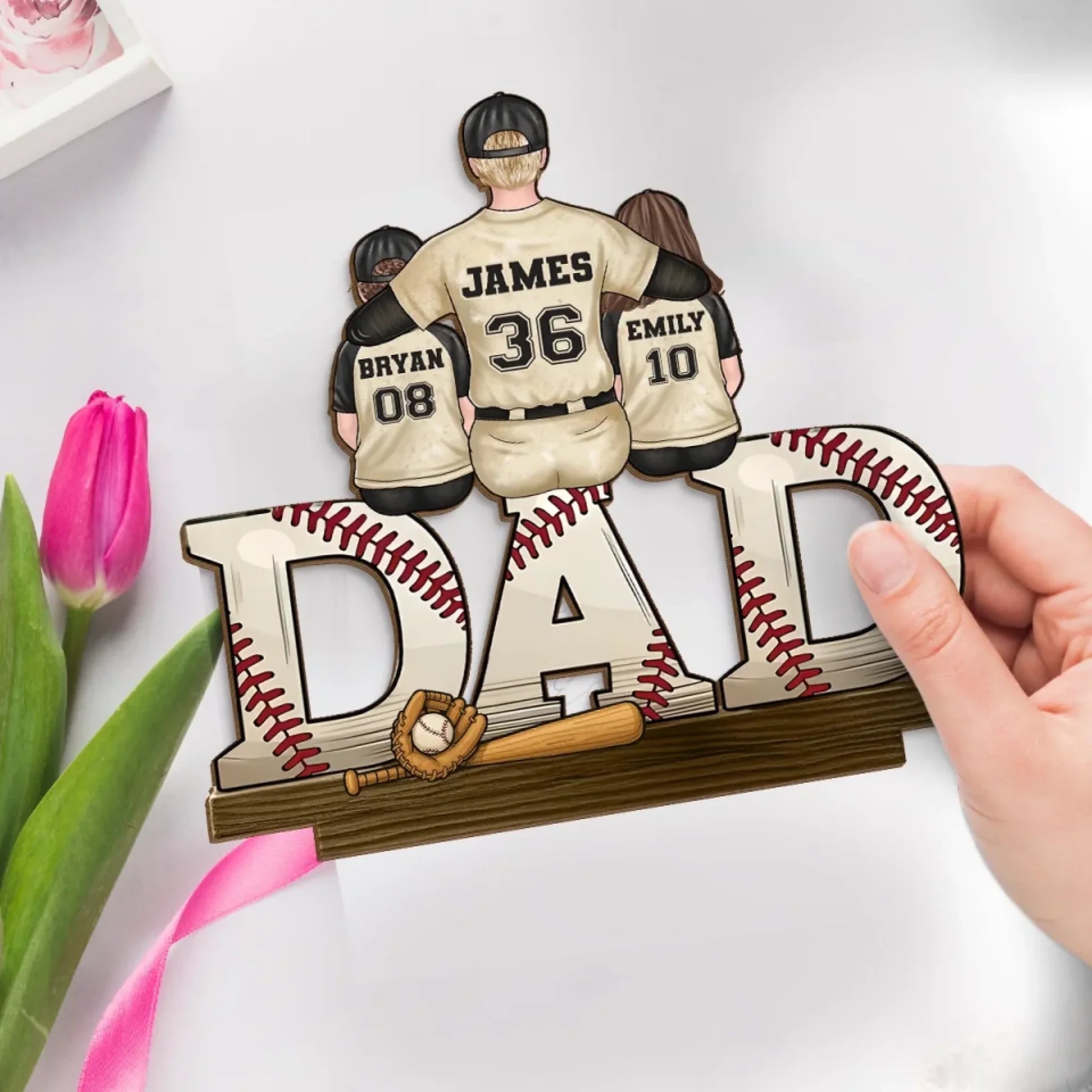 Our Favorite Position, Right Beside Dad - Family Personalized Custom Shaped 2-Layered Wooden Plaque With Flat Stand - Father's Day, House Warming Gift For Dad, Sport Lovers, Sport Players