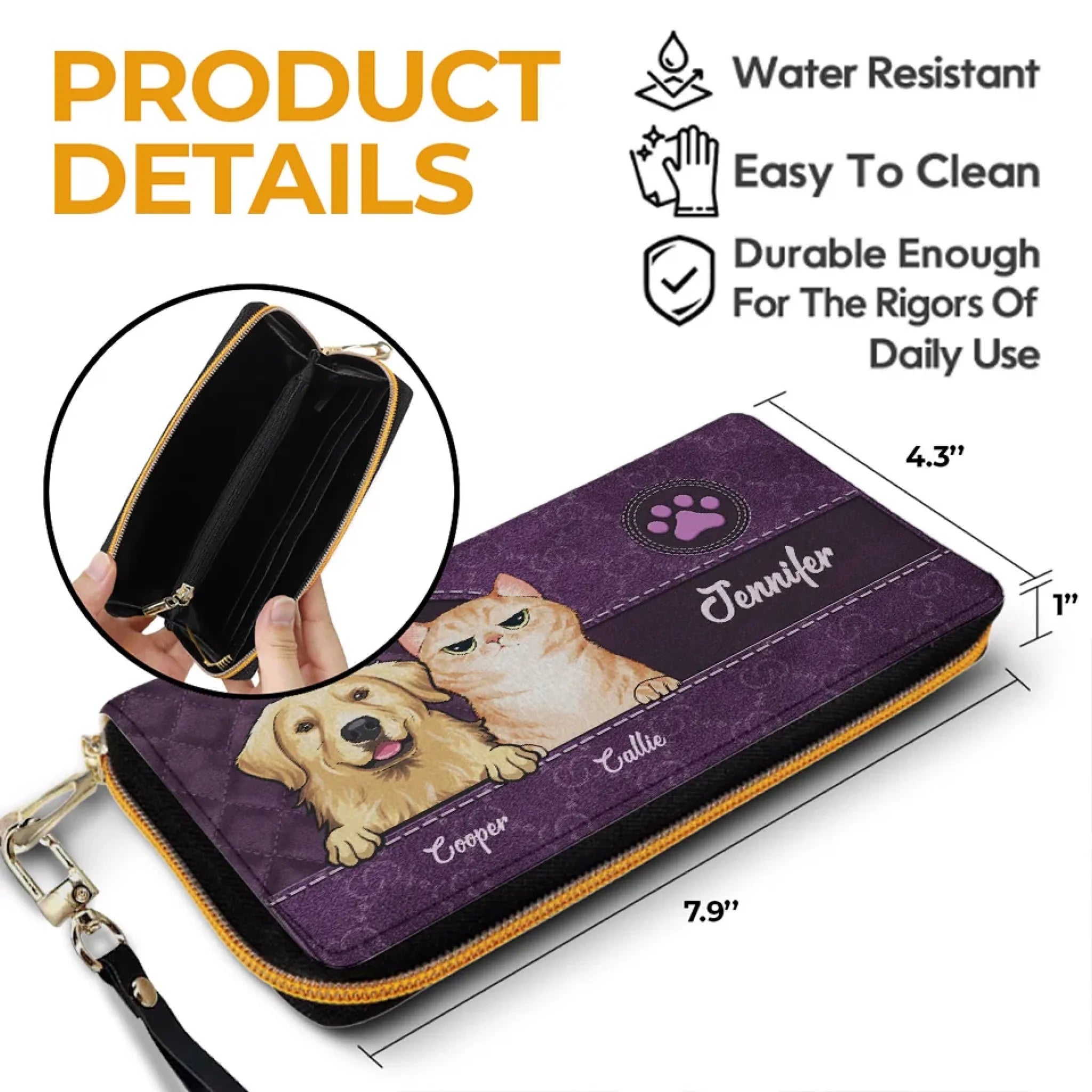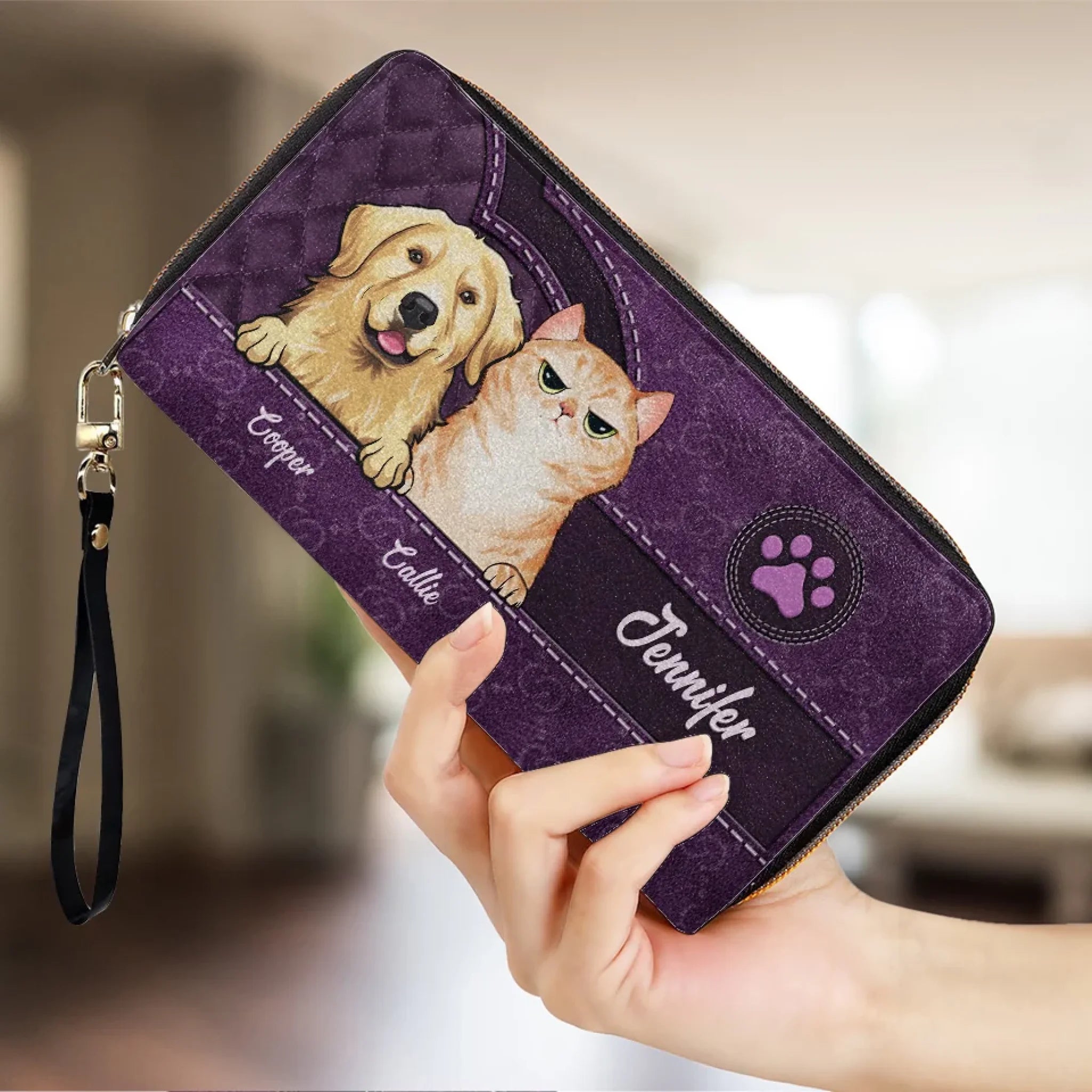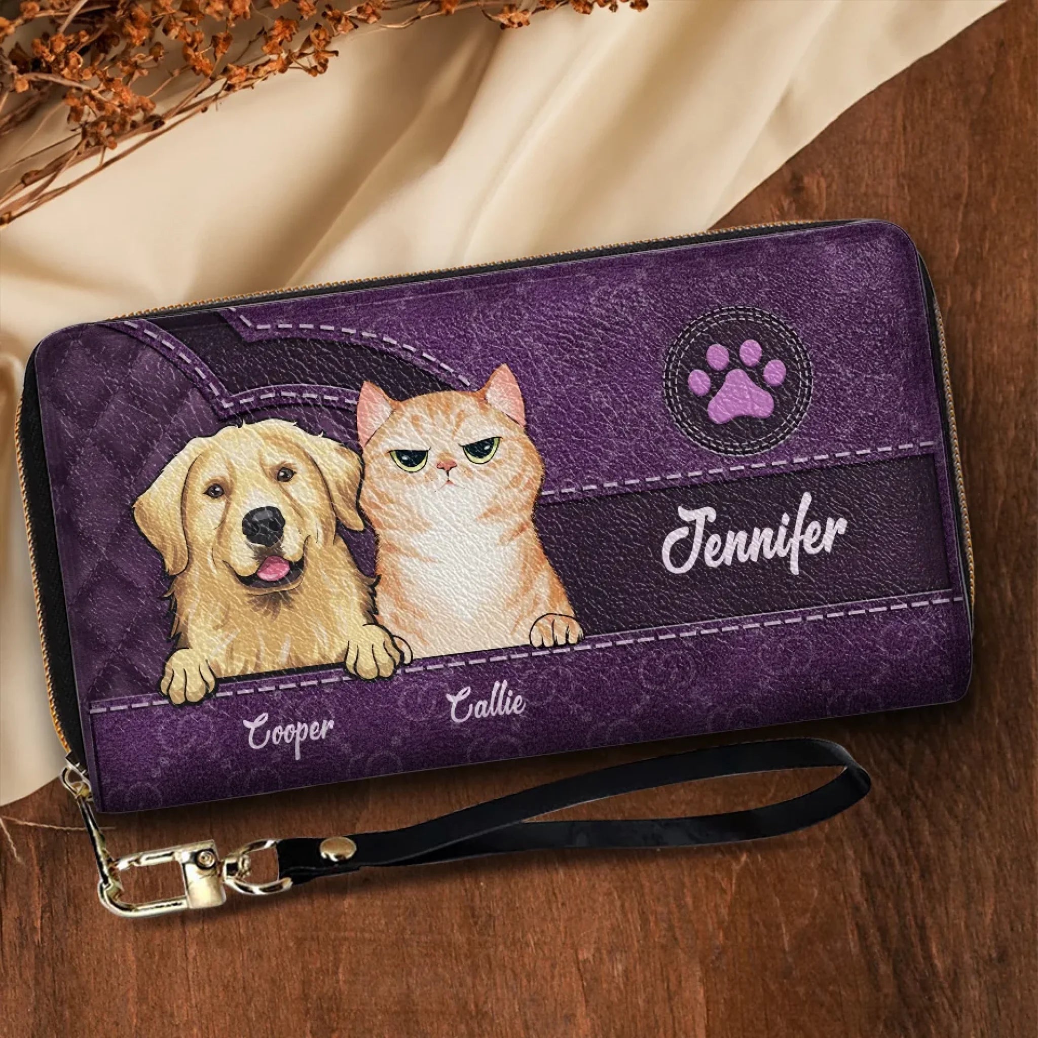 Pets Bring Us Closer - Dog & Cat Personalized Custom Leather Long Wallet - Gift For Pet Owners, Pet Lovers