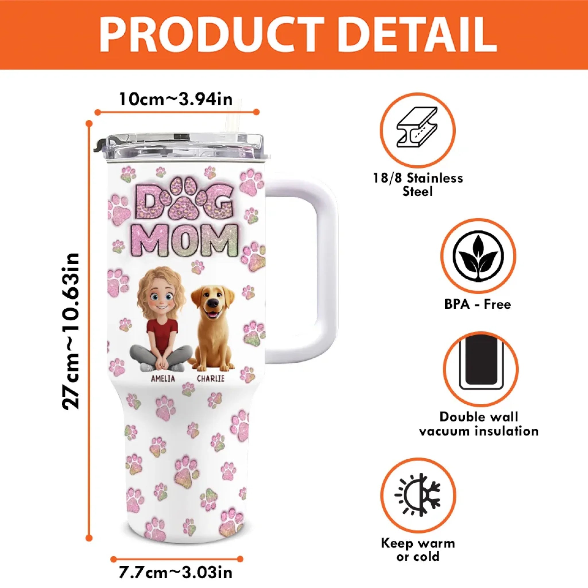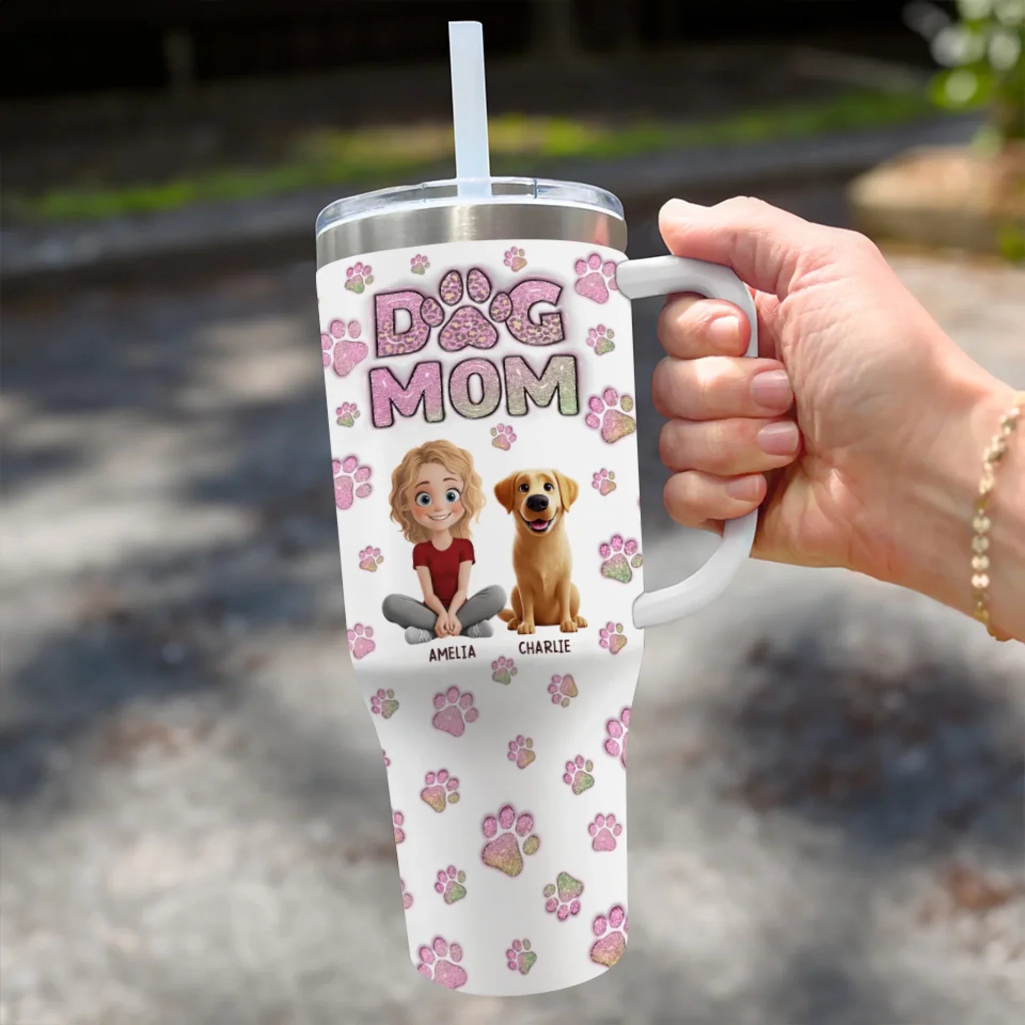 Purrs And Wags, My Daily Joy - Dog & Cat Personalized Custom 3D Inflated Effect Printed 40 Oz Stainless Steel Tumbler With Handle - Gift For Pet Owners, Pet Lovers
